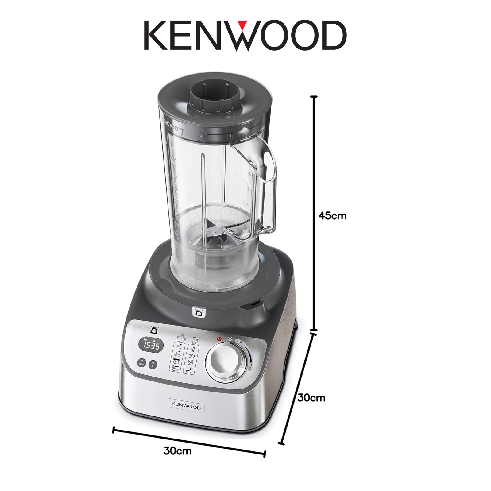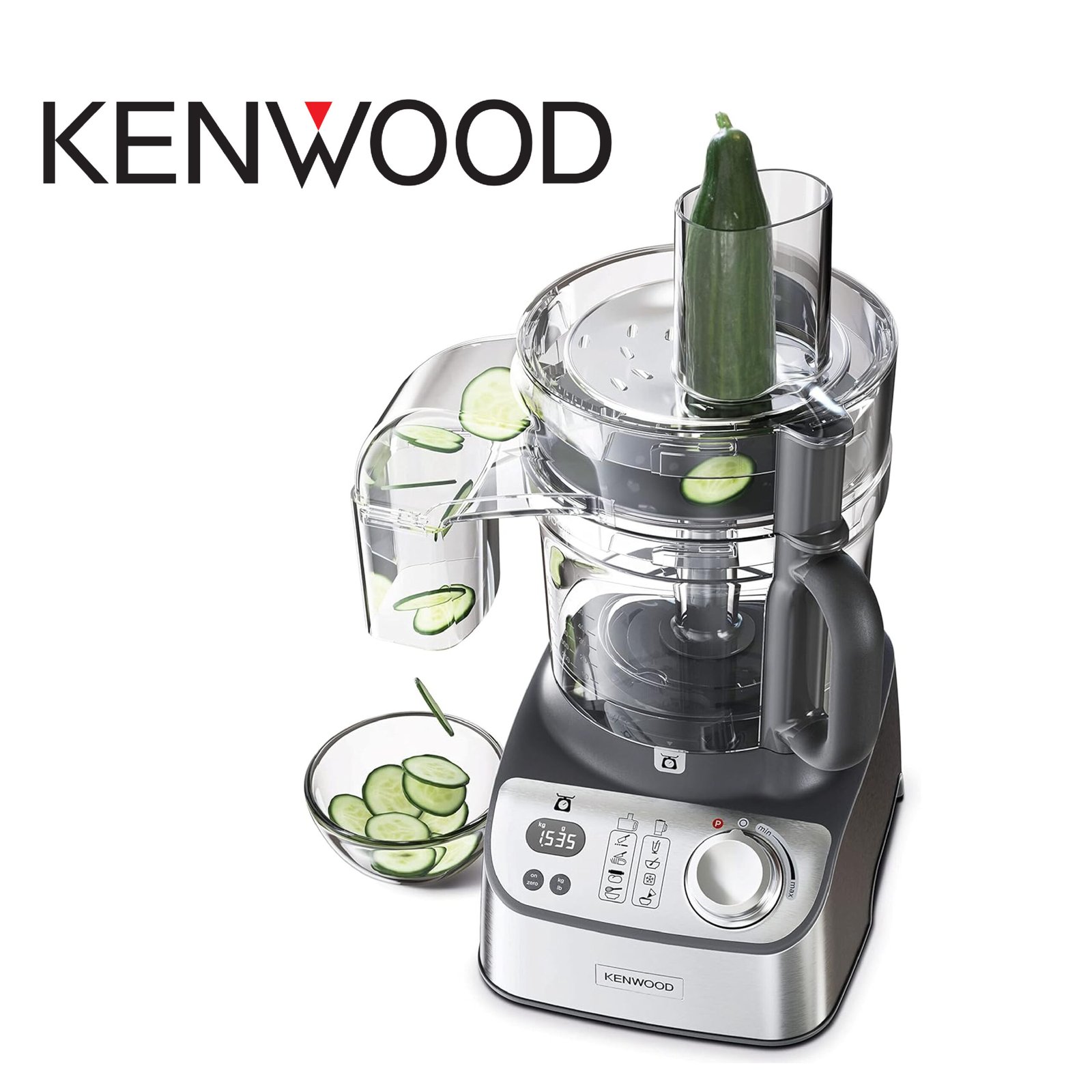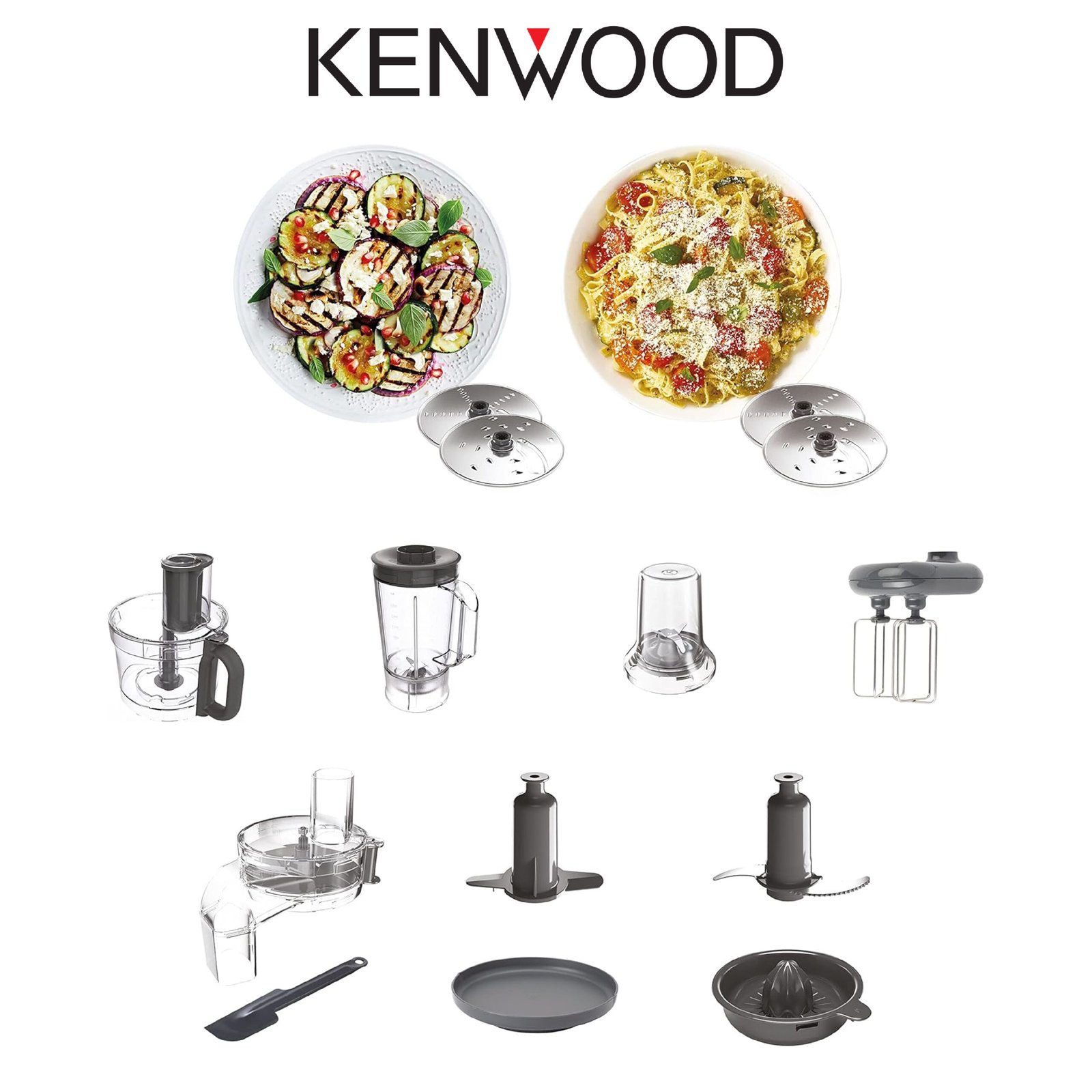 Kenwood Robot culinaire avec blender, moulin, double fouet en métal, pétrin, presse-agrumes, Express Serve/Saladier, balance de cuisine/plateau de pesée FDM71.690SS – Argenté