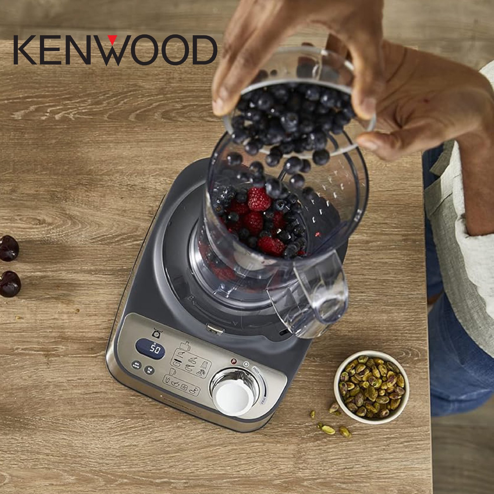 Blender et Robot MultifonctionKenwood MultiPro Go FDP22.130GY, Processeur Alimentaire Compact de Cuisine de 30cm de Haut, pour Couper, Râper, Mixer et Pétrir la Pâte, avec Express-Serve dans la Poêle, Récipient 1,3 l, 650W, Bleu