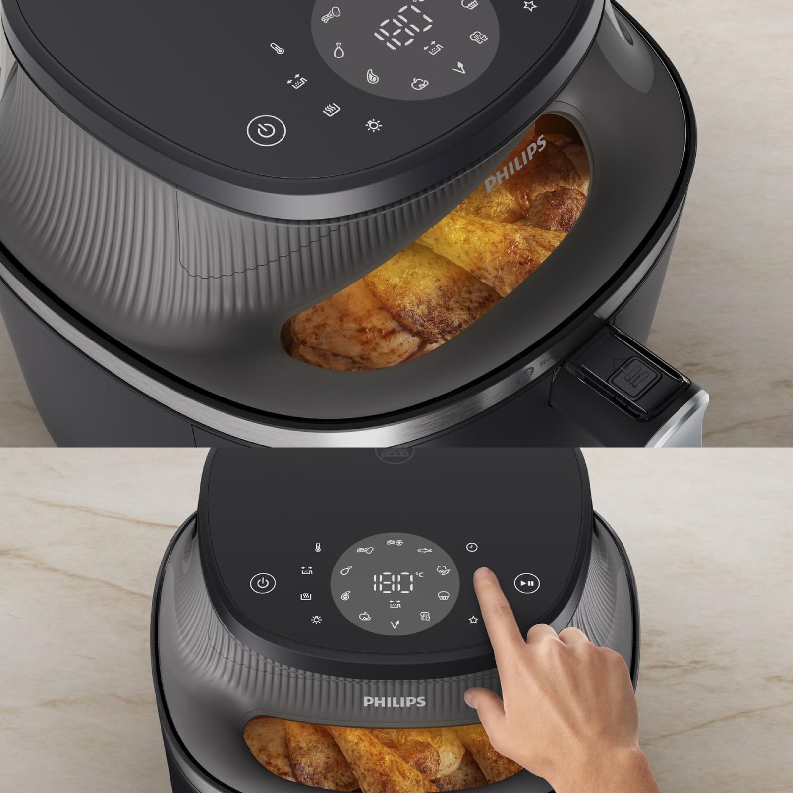 Philips Airfryer XL – 6.2L, 1700W, See-through Cooking Window, 16 Cooking Functions, Touchscreen, RapidAir Plus Technology, Black – NA332/09