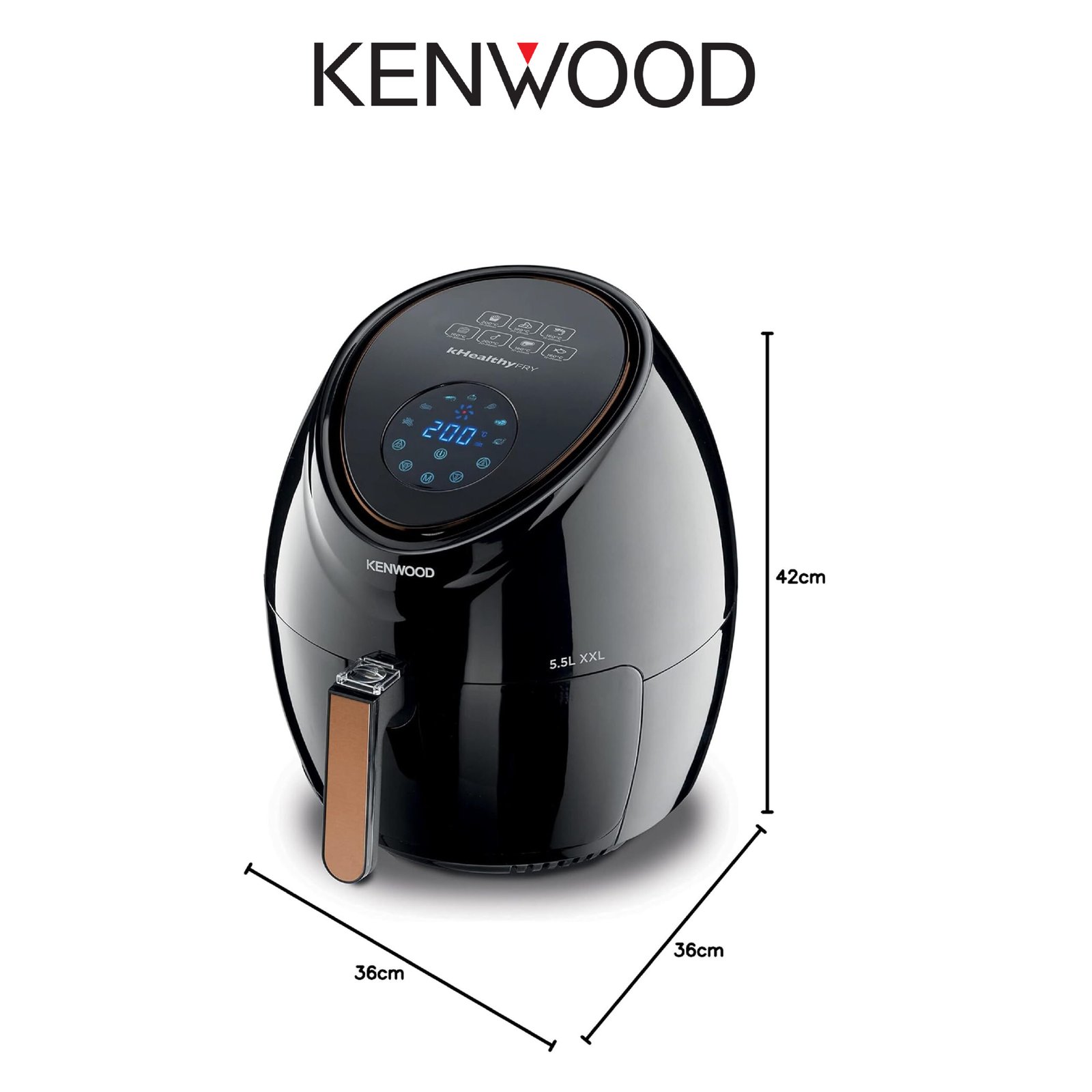 Kenwood Digital Air Fryer XXL 5.5L 2.4Kg 1800W With Rapid Hot Air Circulation For Frying, Grilling, Broiling, Roasting, Baking And Toasting Hfp50.000Bk