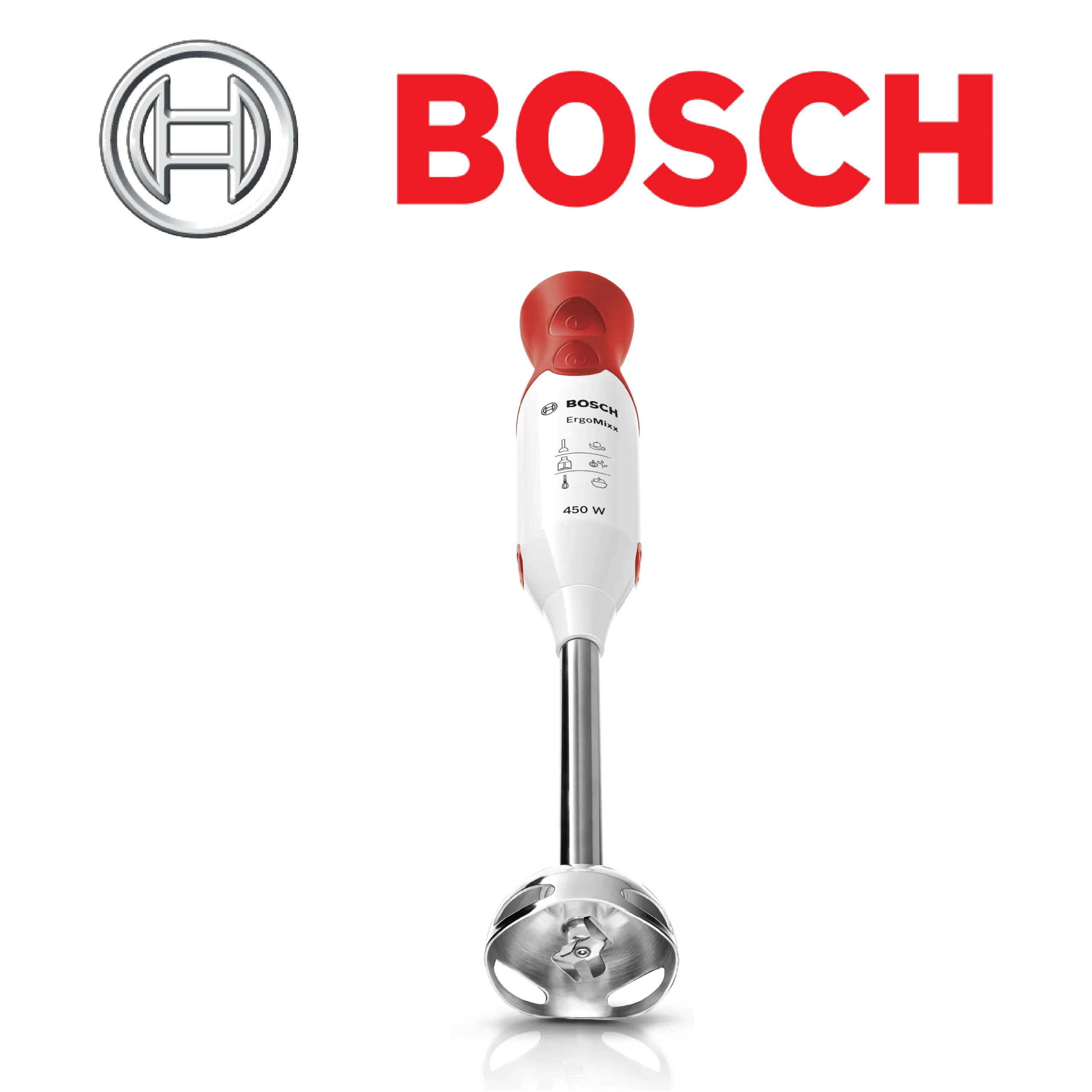 Bosch MSM64110 Mixeur Plongeant – Mixeur à main puissant 450 W – Pied mélangeur amovible en métal – Système anti-éclaboussures – Avec Accessoires – Rouge/Blanc