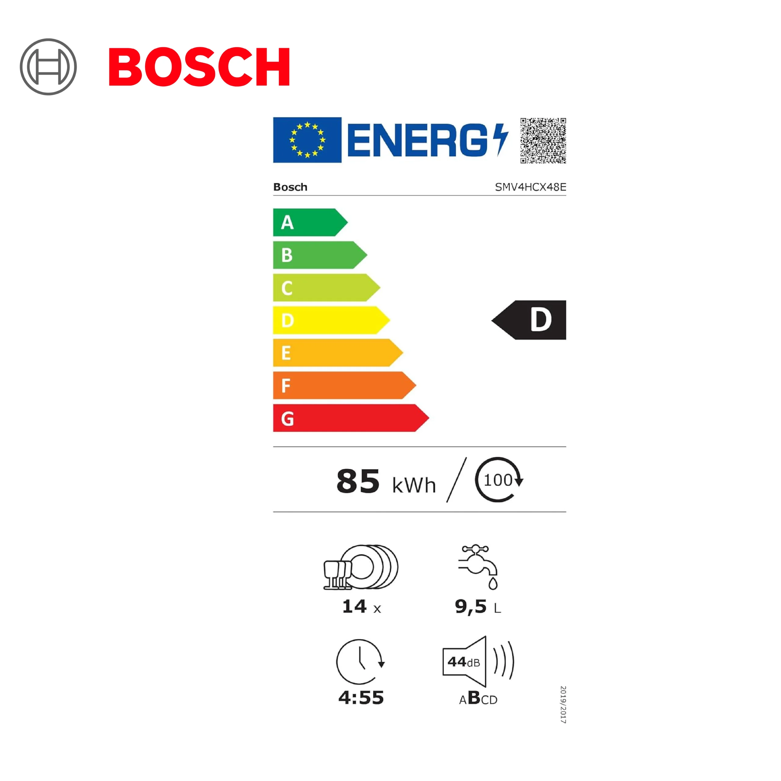 Lave vaisselle Bosch SMV4HVX00E – Série 4 – tout intégrable – 60cm – 14 couverts – 46 dB – Home Connect [Classe énergétique D]