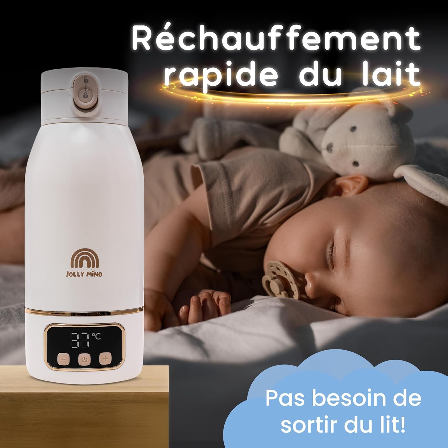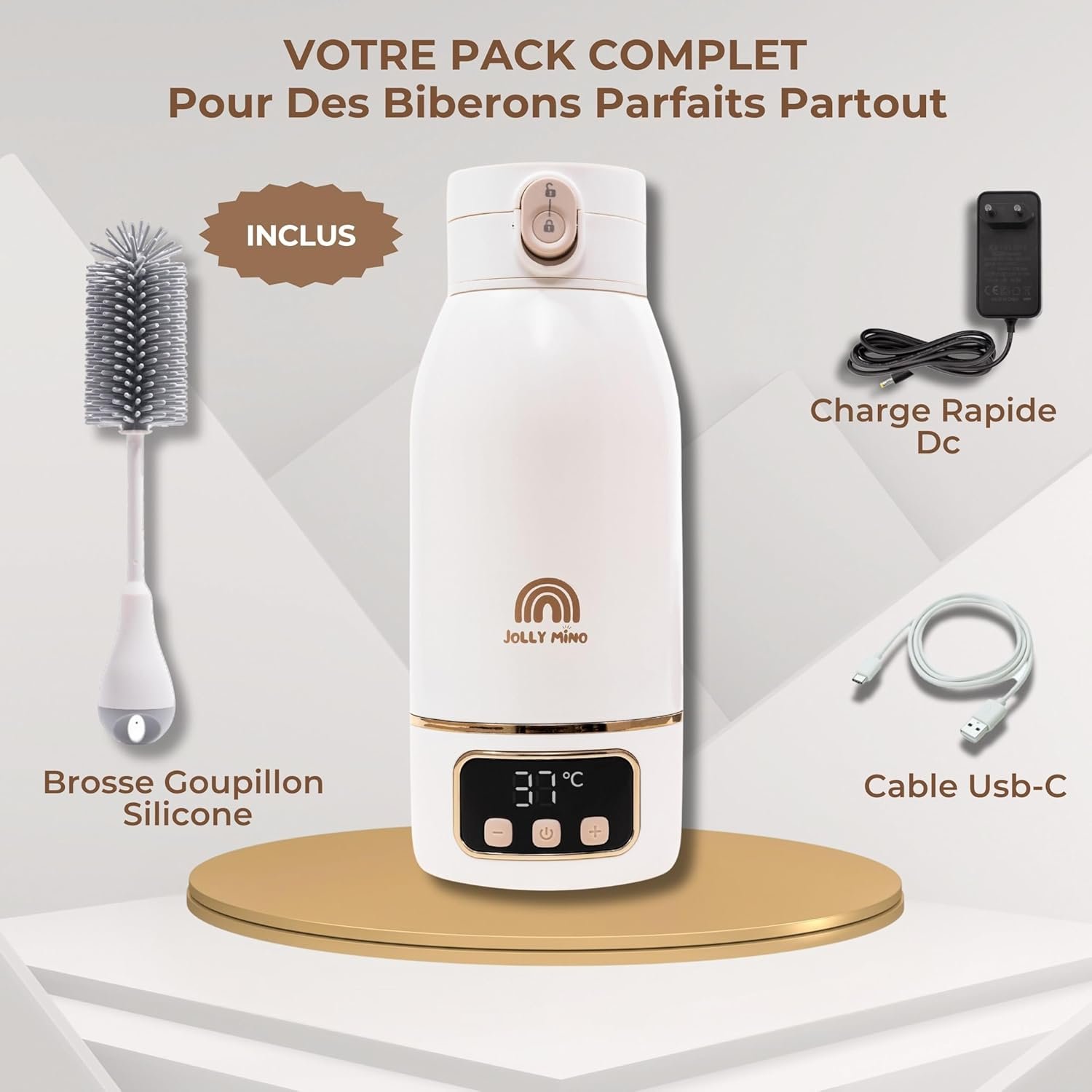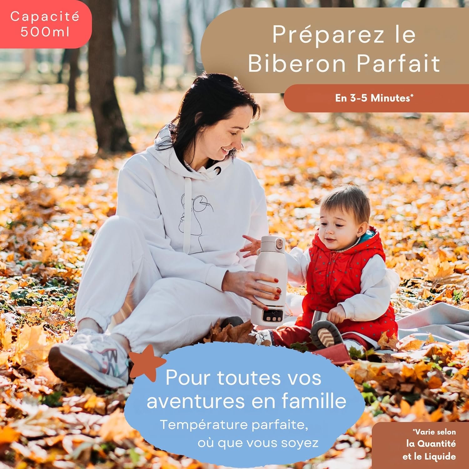 Chauffe Biberon Nomade Sans Fil 500 ml – Chauffe Eau et Lait Portable – Inox Sans BPA – Recharge Rapide – Brosse Incluse – Idéal Nuit et Déplacements – Nettoyage Express 65°C