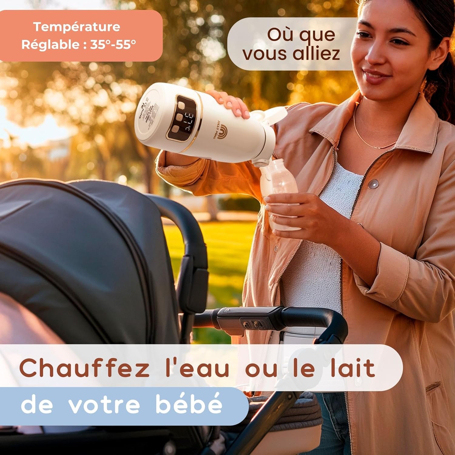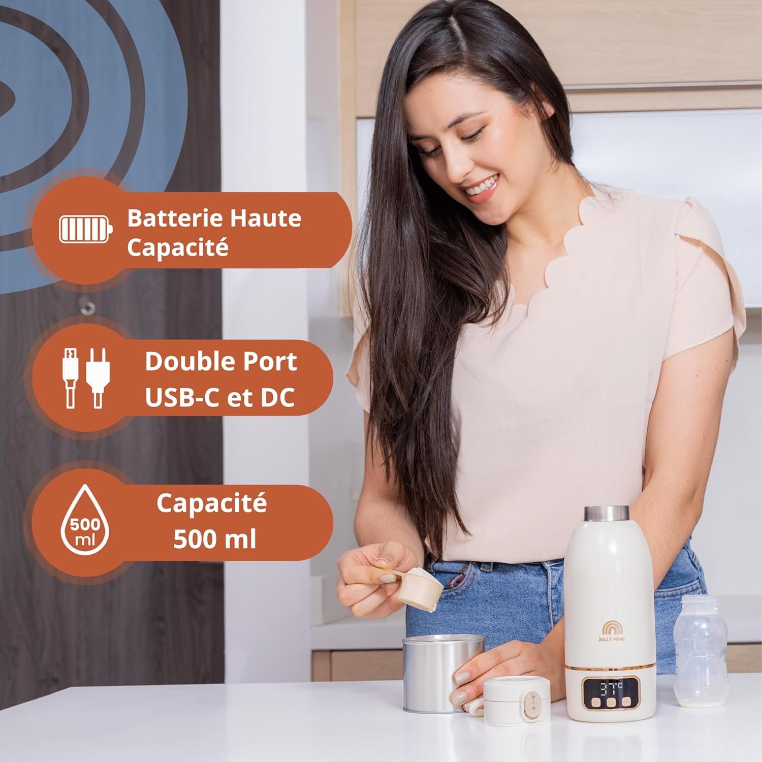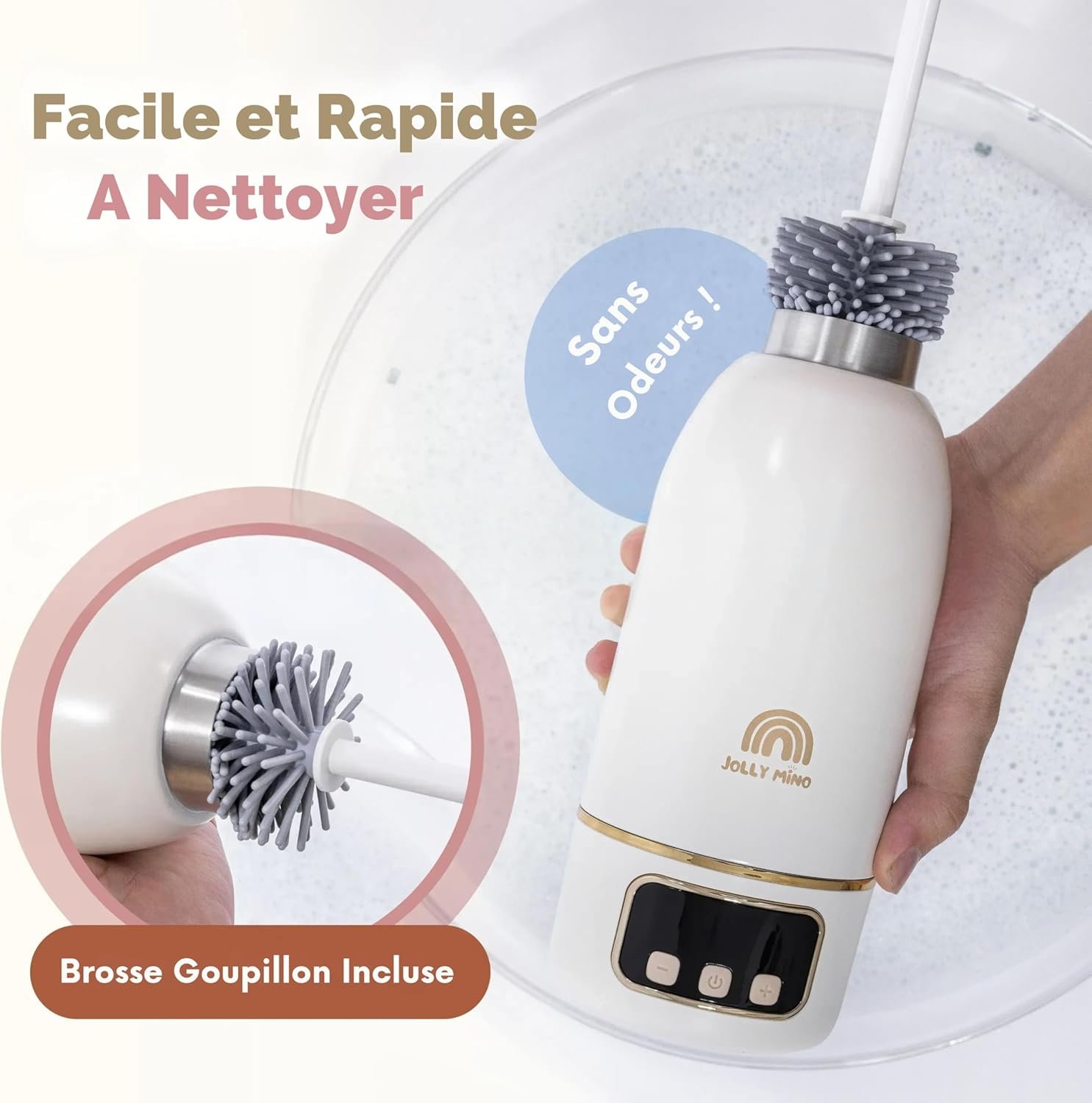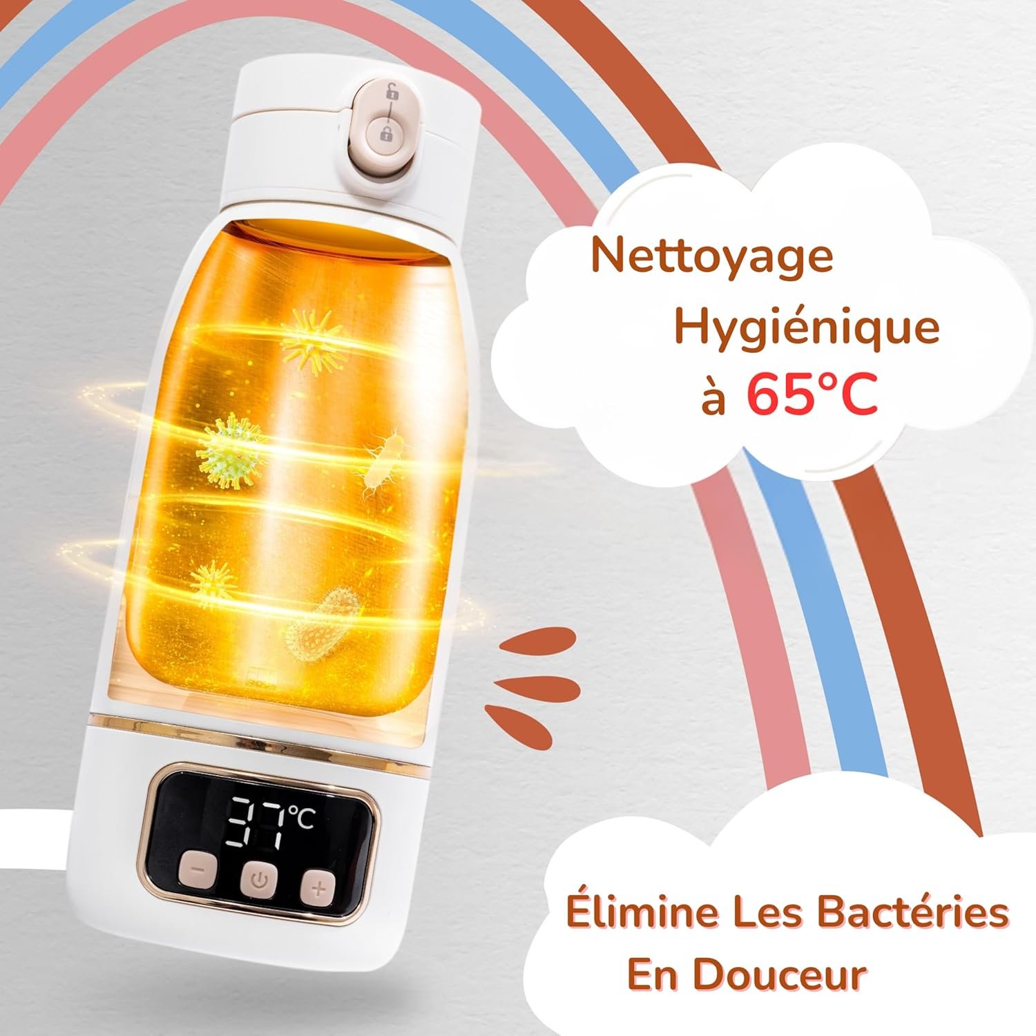 Chauffe Biberon Nomade Sans Fil 500 ml – Chauffe Eau et Lait Portable – Inox Sans BPA – Recharge Rapide – Brosse Incluse – Idéal Nuit et Déplacements – Nettoyage Express 65°C
