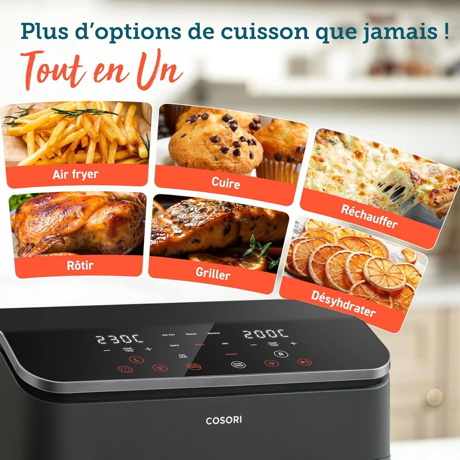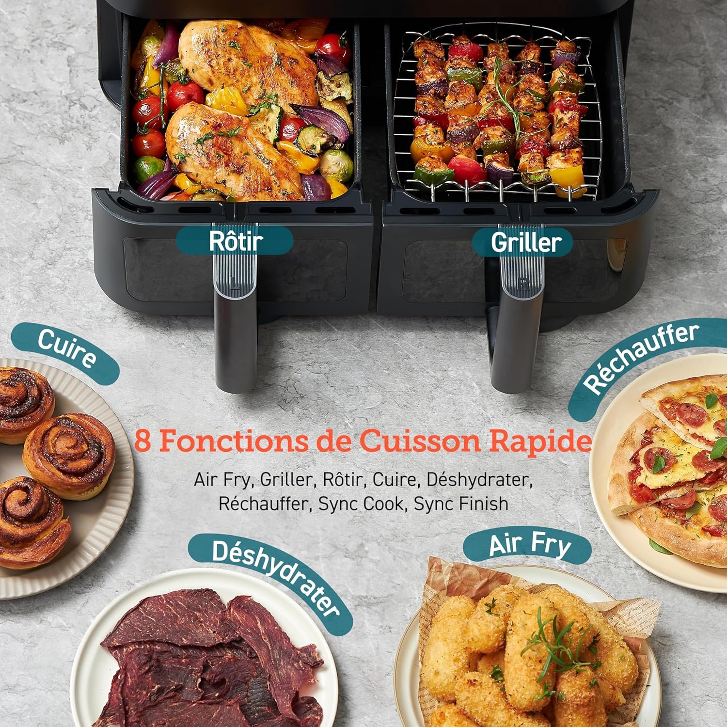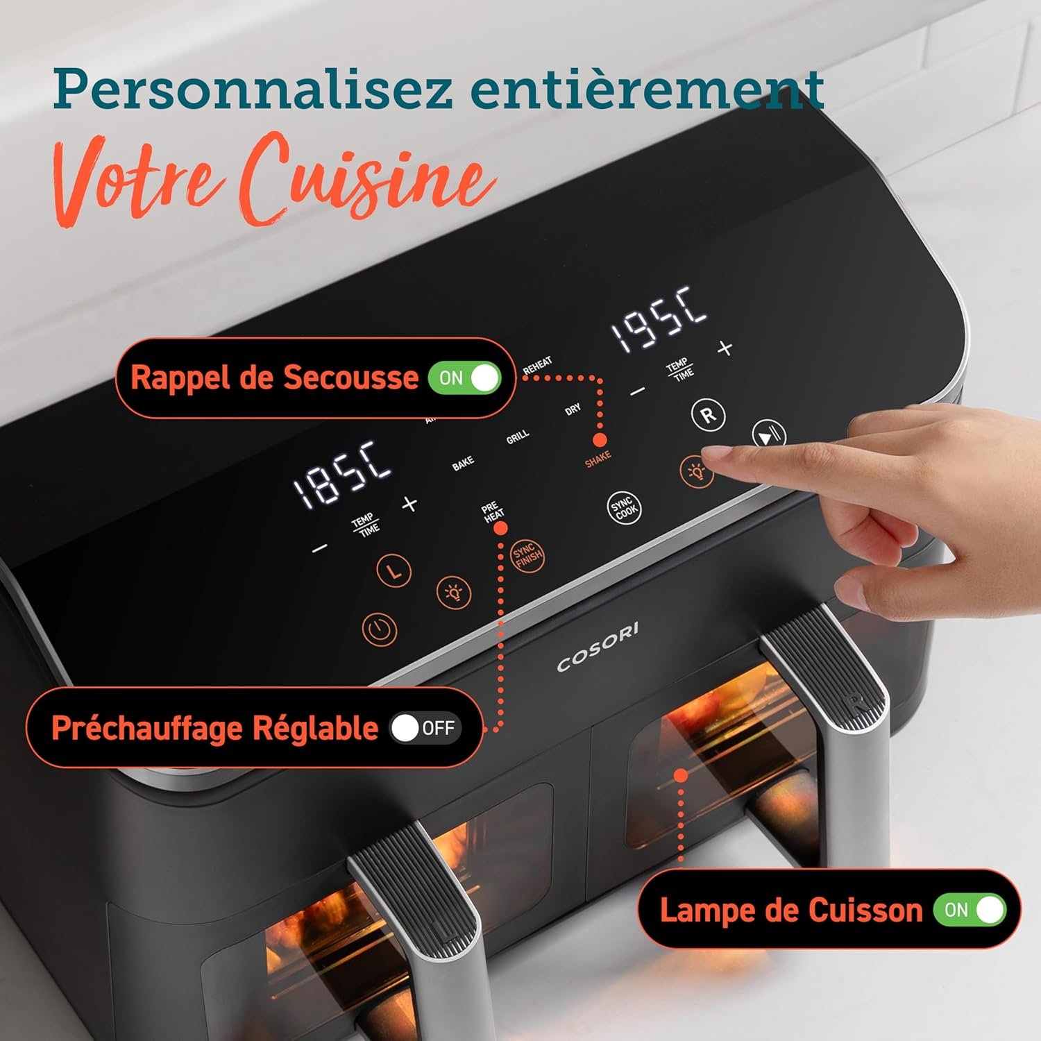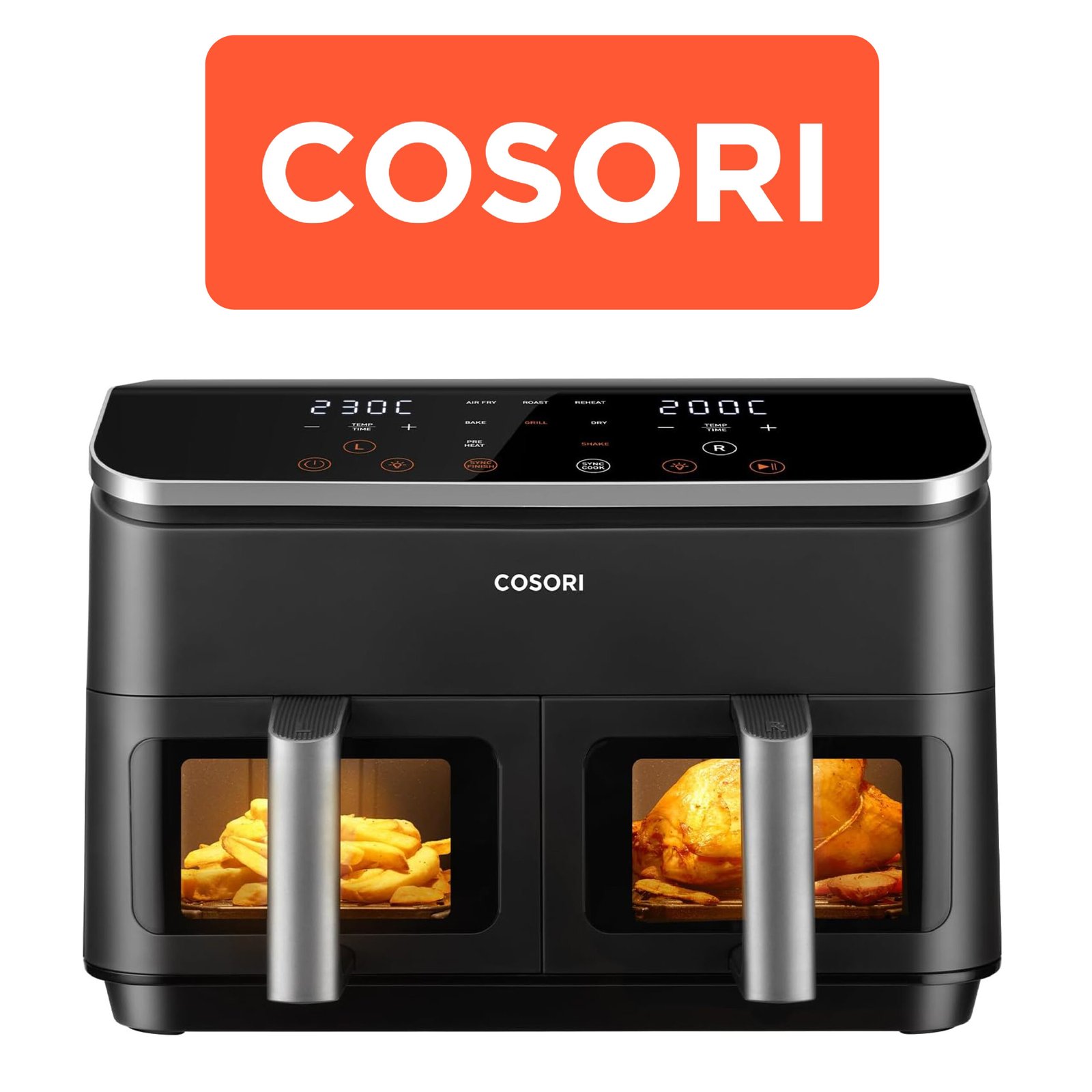 COSORI Air Fryer 2 Compartiments 8.5L, 8-en-1 Airfryer Friteuse Sans Huile, 71% D’efficacité énergétique, 85% de Carburant En Moins, 55% Plus Rapide, 8 Portions, Va au Lave-vaisselle, Noir