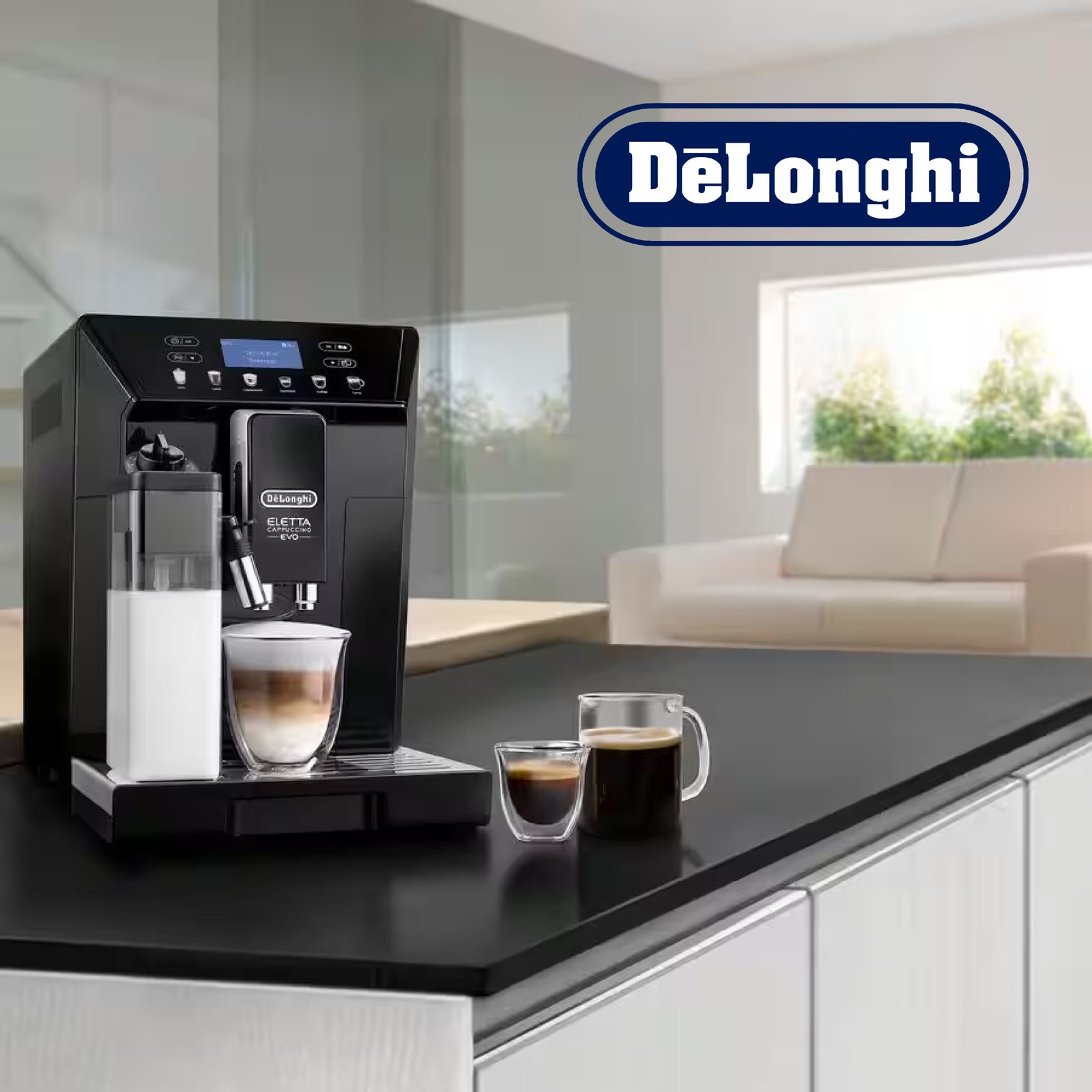 DeLonghi Eletta Evo Machine a Café Grain ECAM46.860.B, Machine Expresso et Cappuccino, Ecran LCD Tactile, Noir [Classe énergétique A]