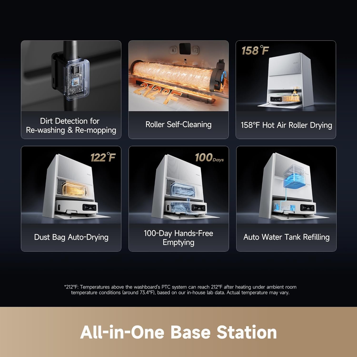 Dreame Aqua10 Ultra Roller Complete Robot Vacuum Cleaner, Automatic Roller Cleaning, 8 cm Obstacle Avoidance, Automatic Emptying, 30,000 Pa Suction, Intelligent Voice Control