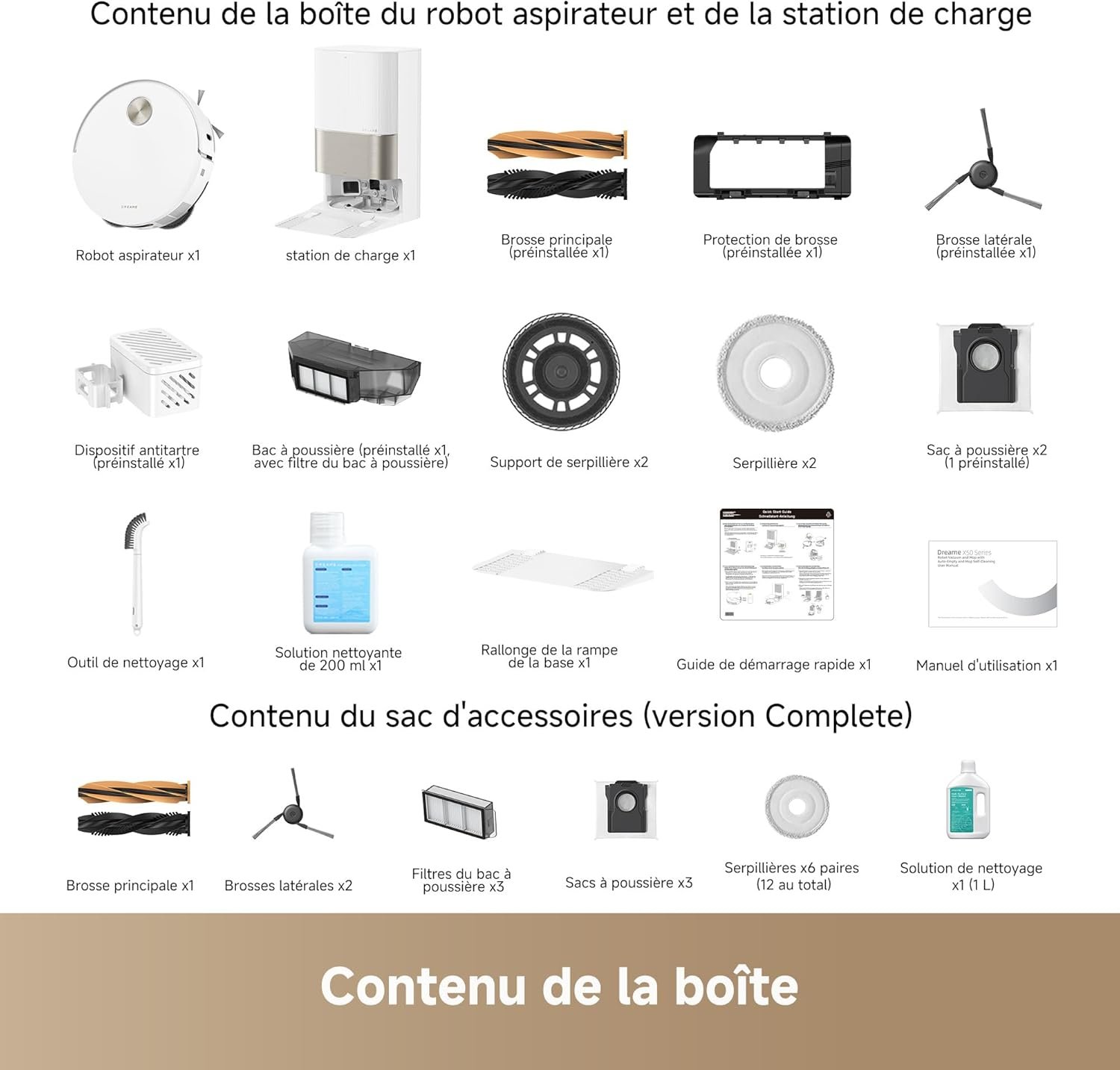 AspirateurDREAME X40 Ultra Complete Robot Aspirateur avec Serpillière amovible et relevable, Brosse latérale surélevée,12 000 Pa,Serpillière et la Plaque de lavage avec de l’eau chaude à 70 C,Brosses relevables