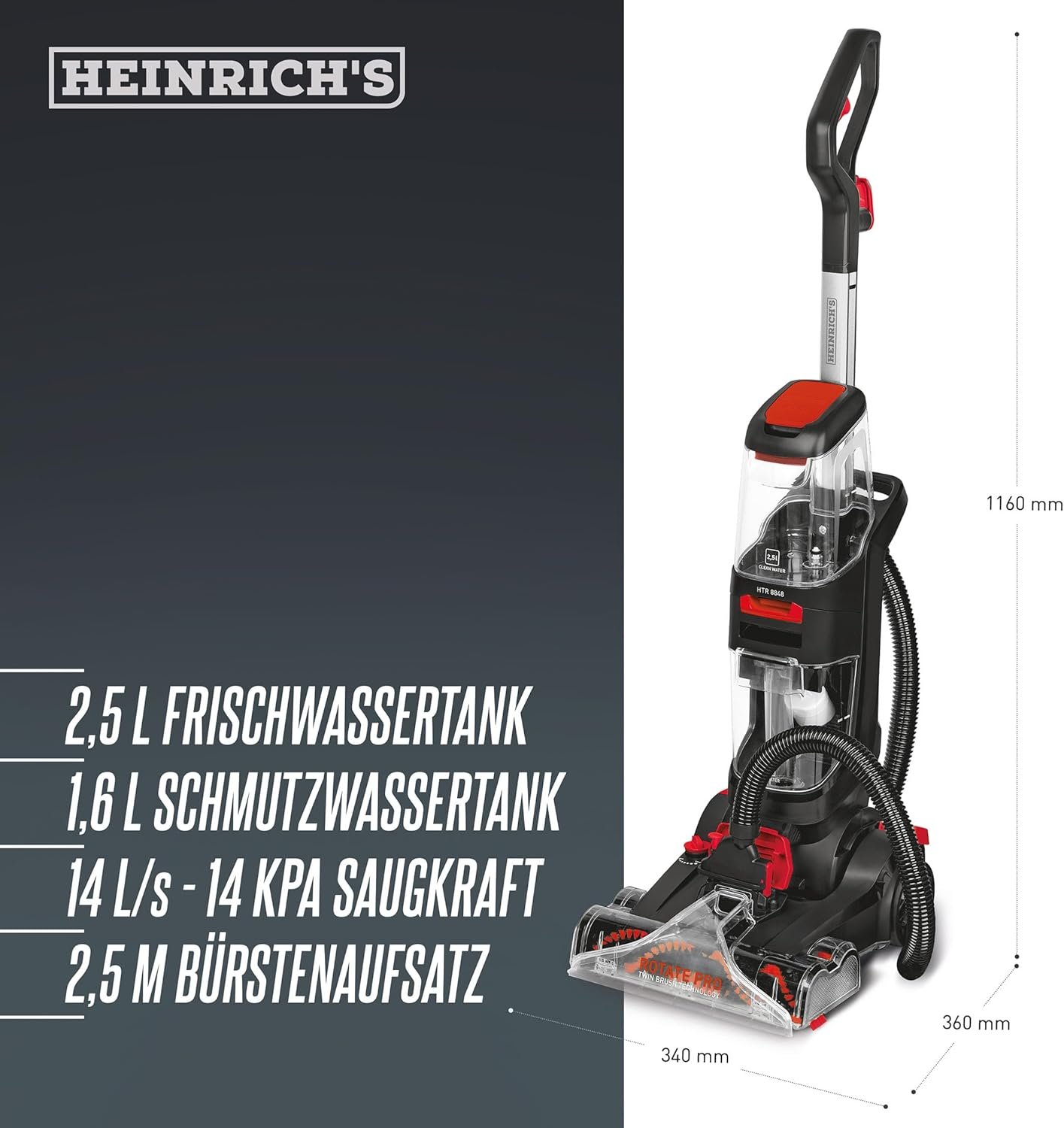 HEINRICHS Nettoyeur de Tapis, 2in-1 nettoyant pour tapis et tissus d’ameublement 800W HTR 8848