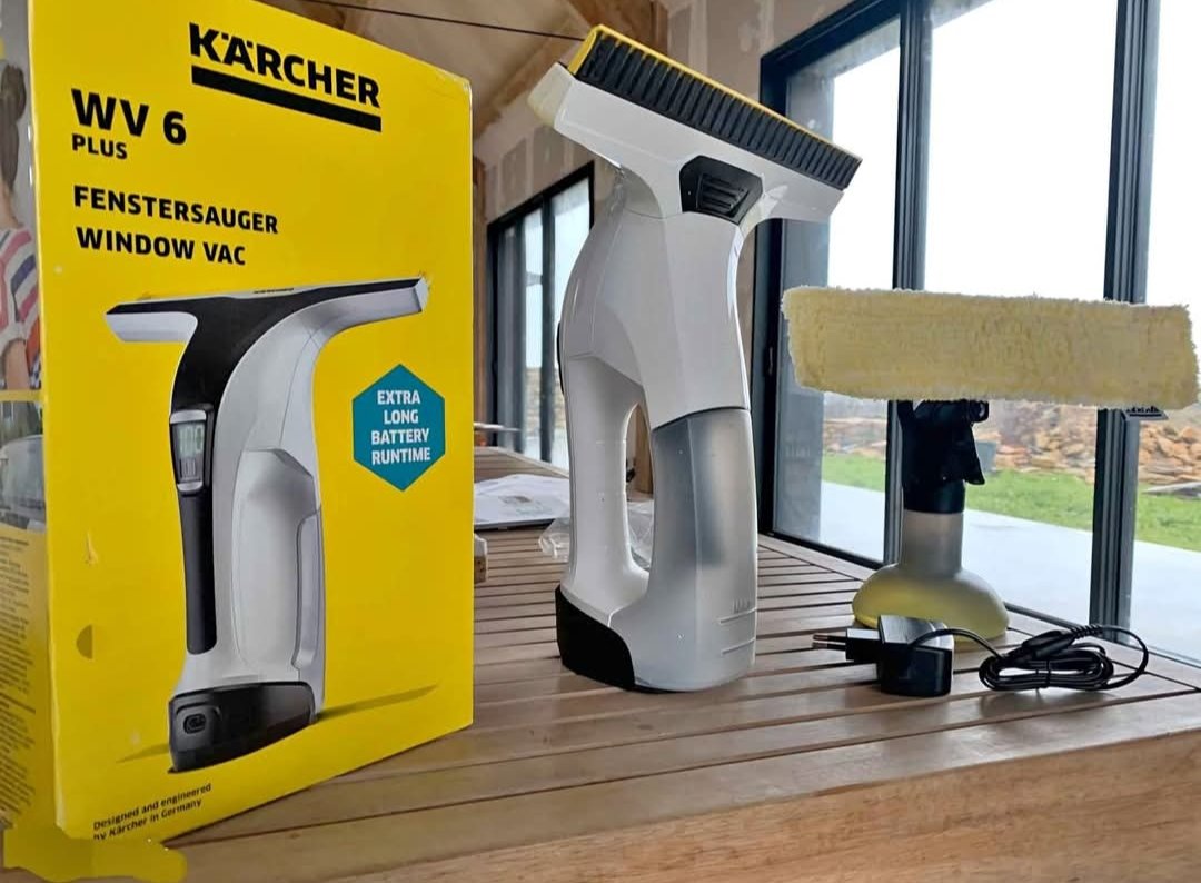Karcher Nettoyeur de Vitres WV 6 Plus, Autonomie de Batterie Prolongée de 100 min, Affichage LED, Raclette Interchangeable : 280 mm, Pulvérisateur avec Microfibres, 20 ml Nettoyant Vitres Concentré