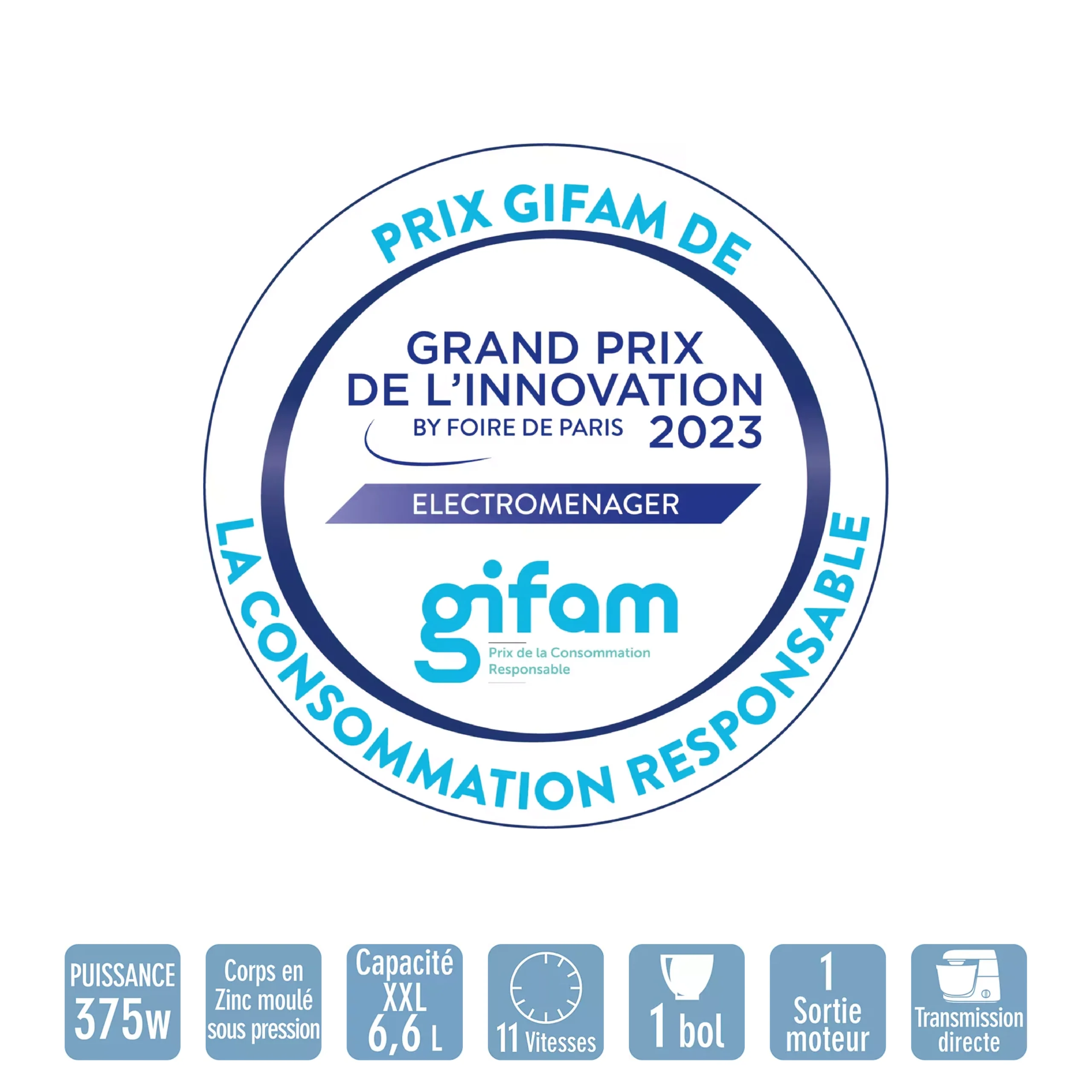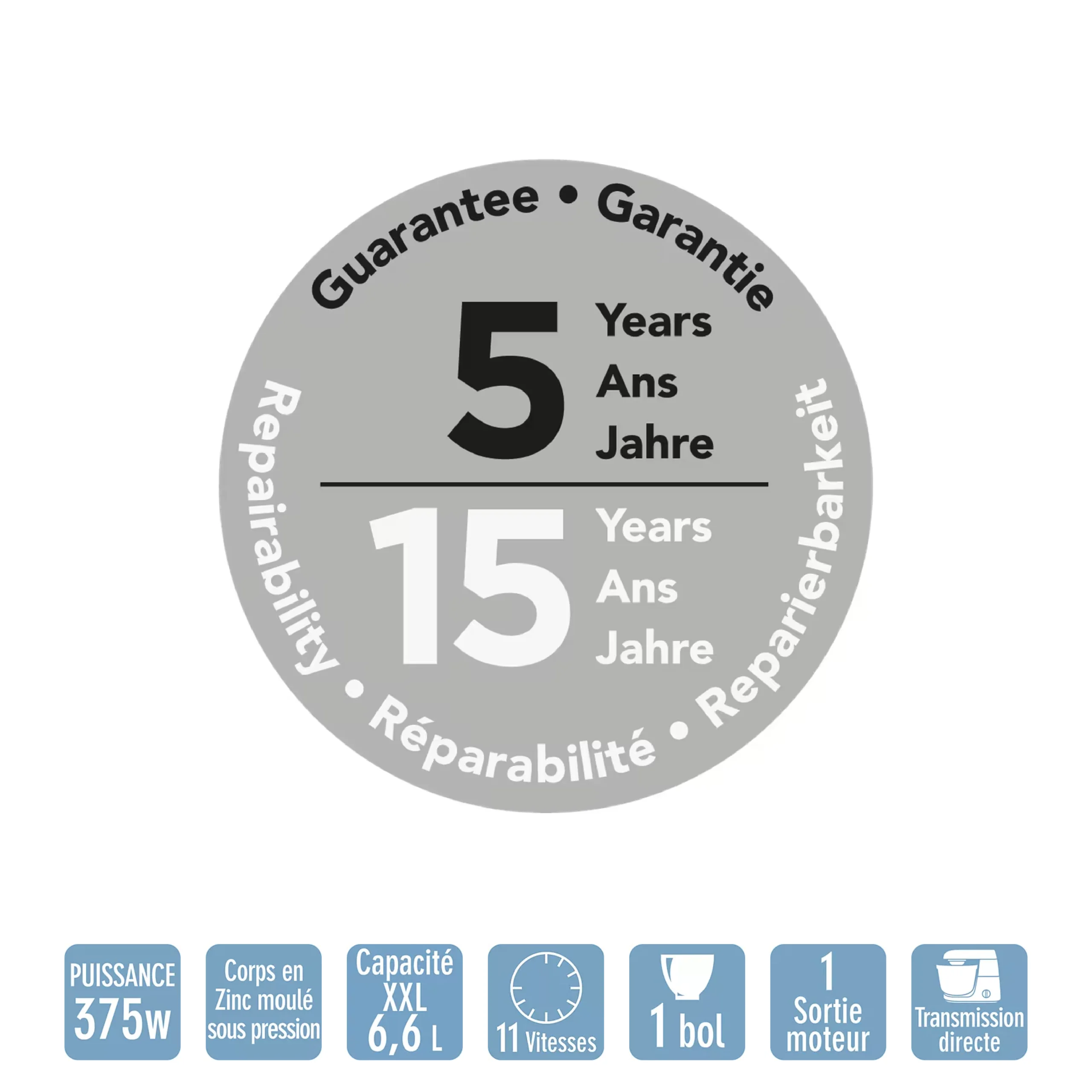 Batteur, Blender et Robot Multifonction, Bouilloire, Bras mixeur, Cocotte & Cuiseur vapeur, Hachoirs a Viande et Moulinettes, Machine à pâte, PétrinMoulinex Robot pâtissier connecté, Bol inox 5.5 L, Technologie brevetée, Ecran digital, 21 recettes programmées QA950810