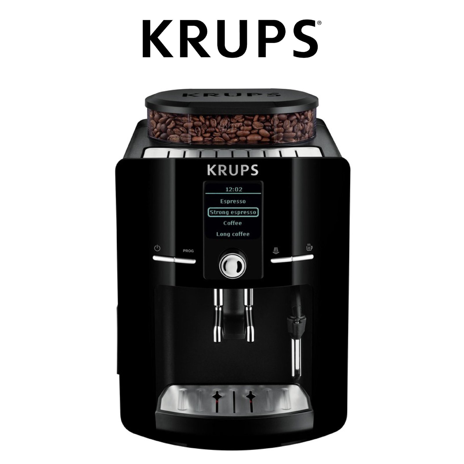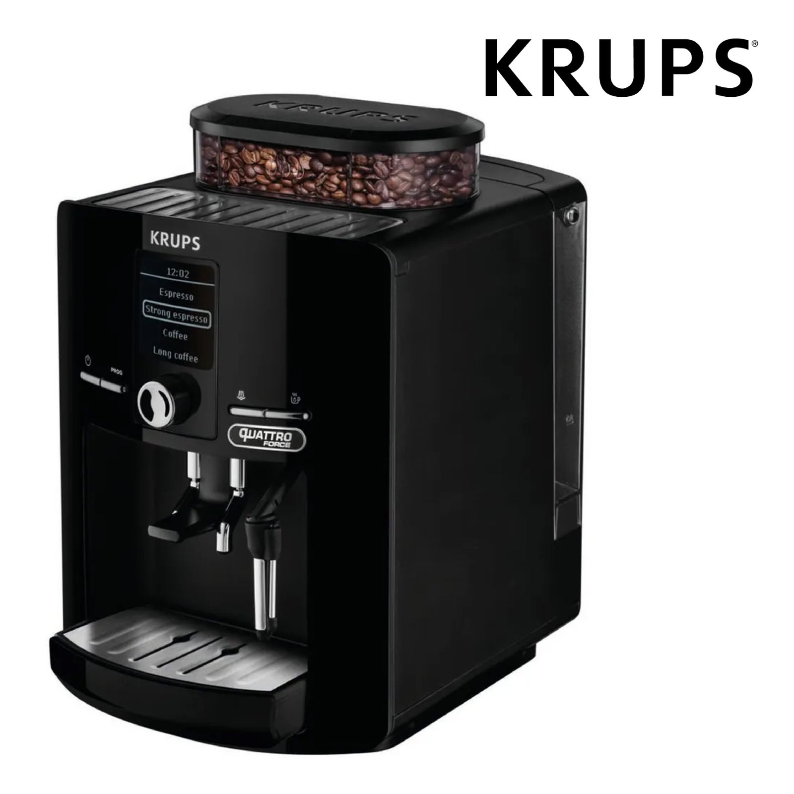 Krups Machine à café grain, 2 expressos simultanés, Ecran LCD, Cafetière espresso compacte, Nettoyage automatique, Buse vapeur pour Cappuccino Ref: EA82 x1