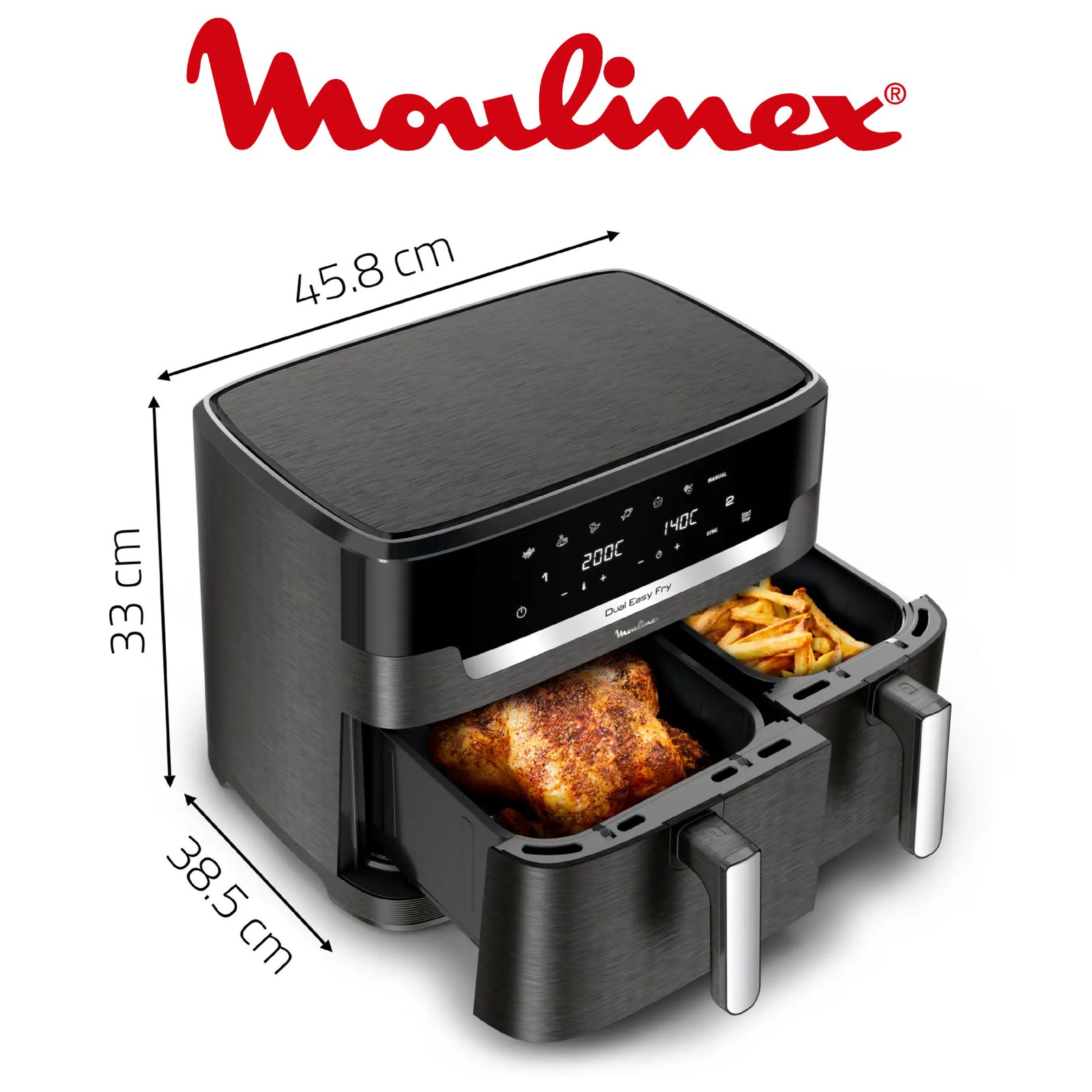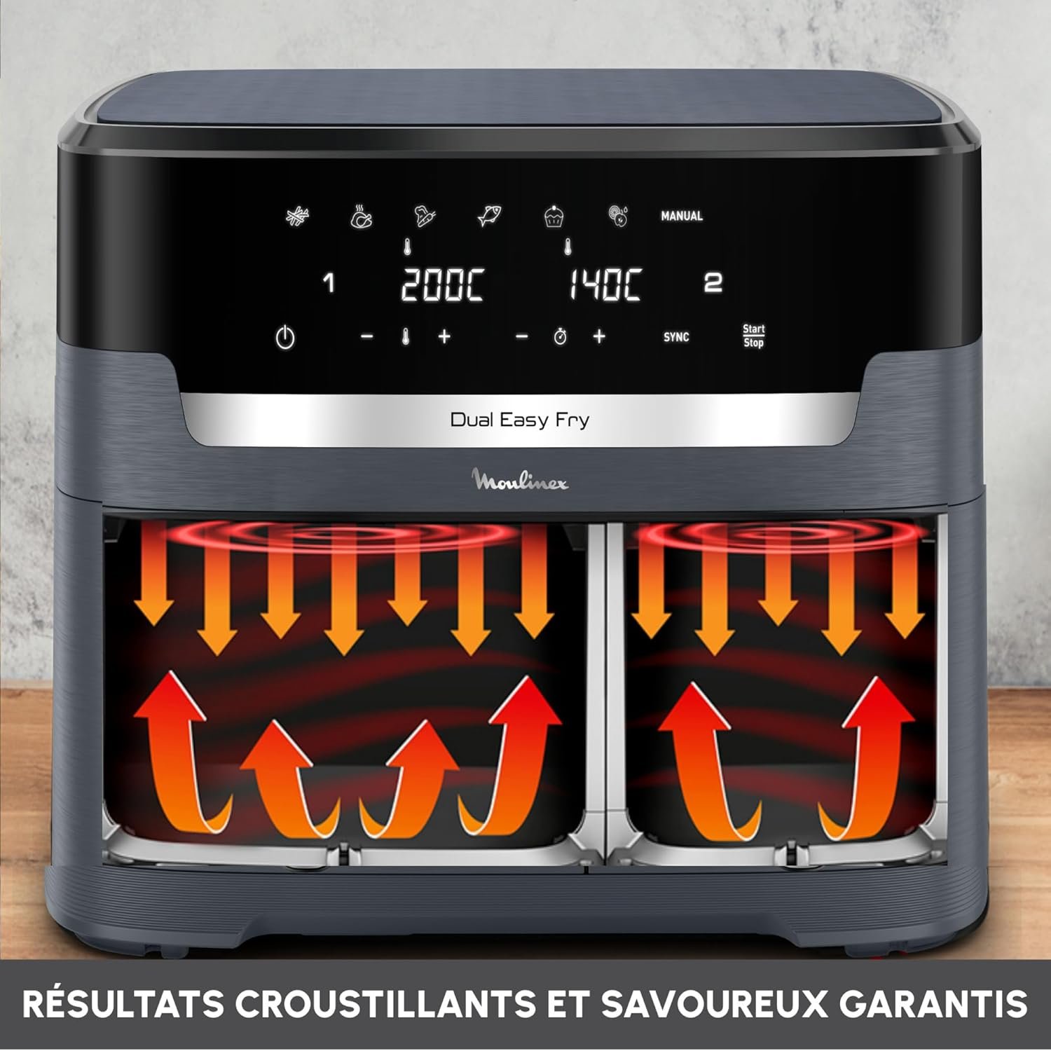Moulinex Dual Easy Fry XXL, air fryer 2 tiroirs, jusqu’à 10personnes, 7programmes prédéfinis, EZ942BF0, Gris Foncé