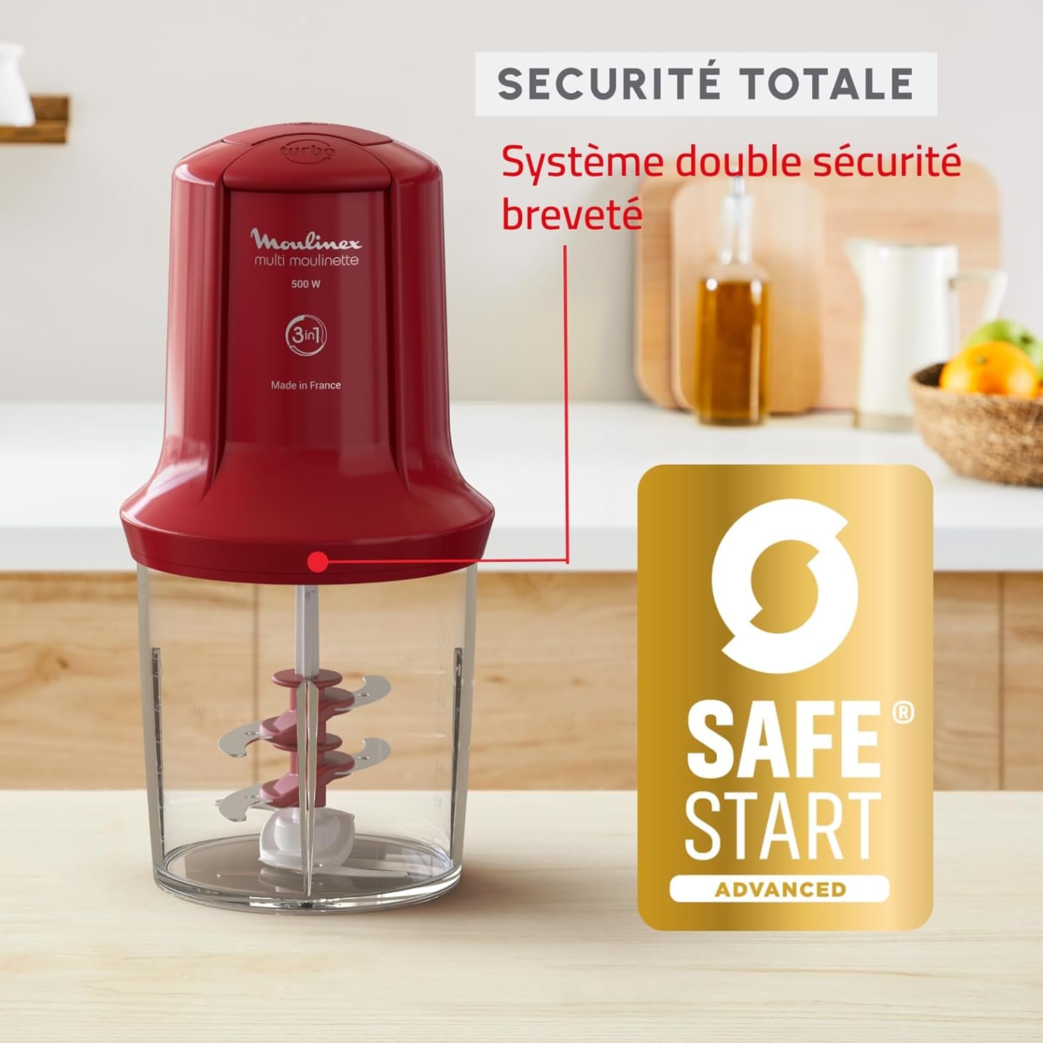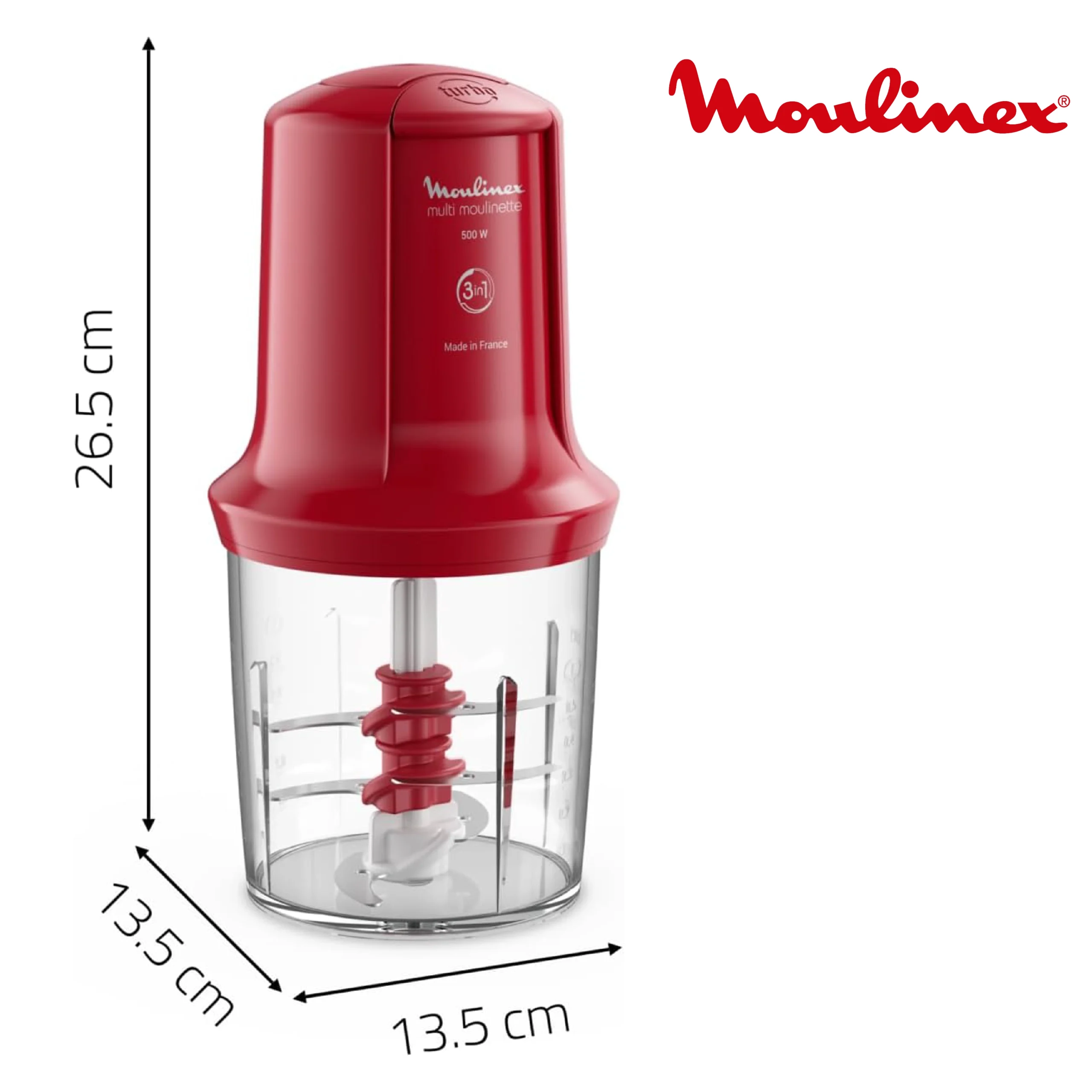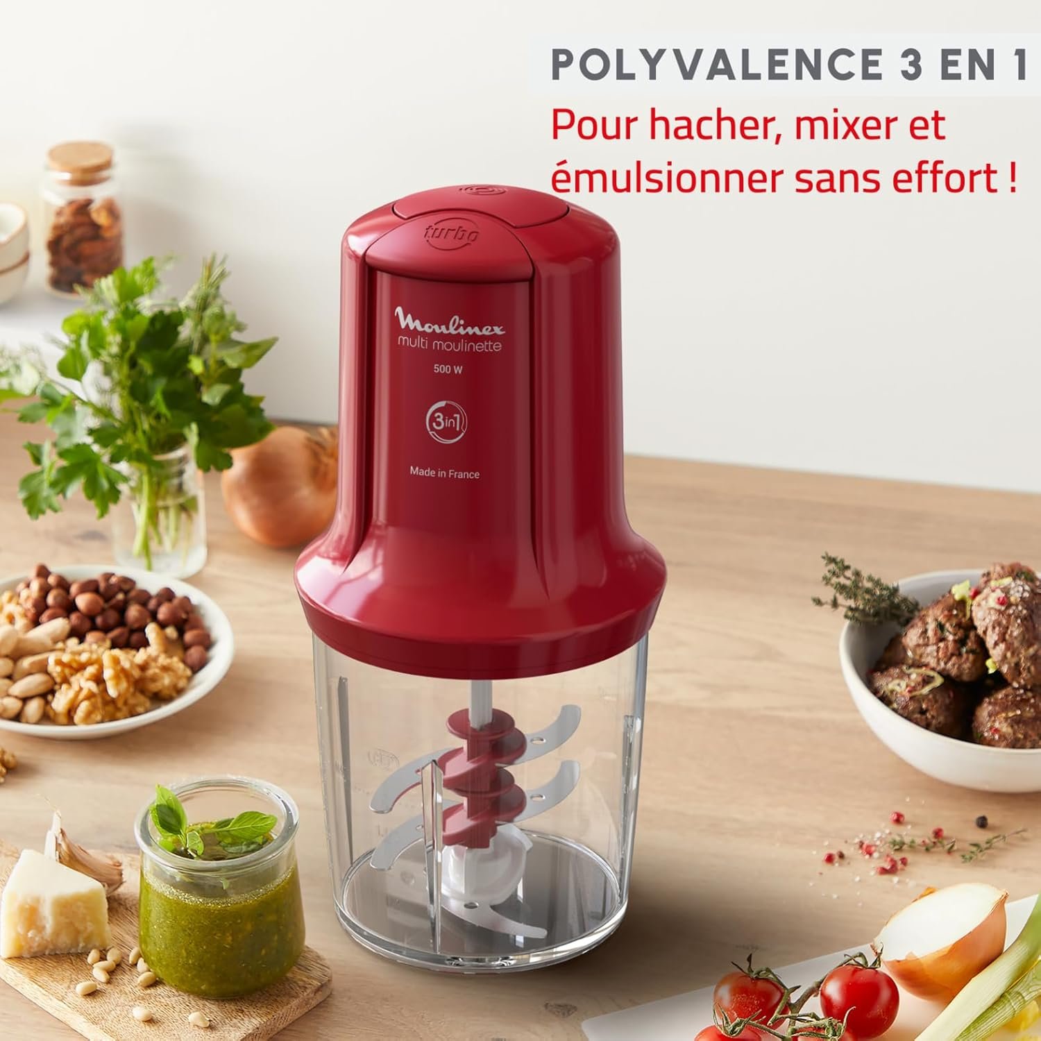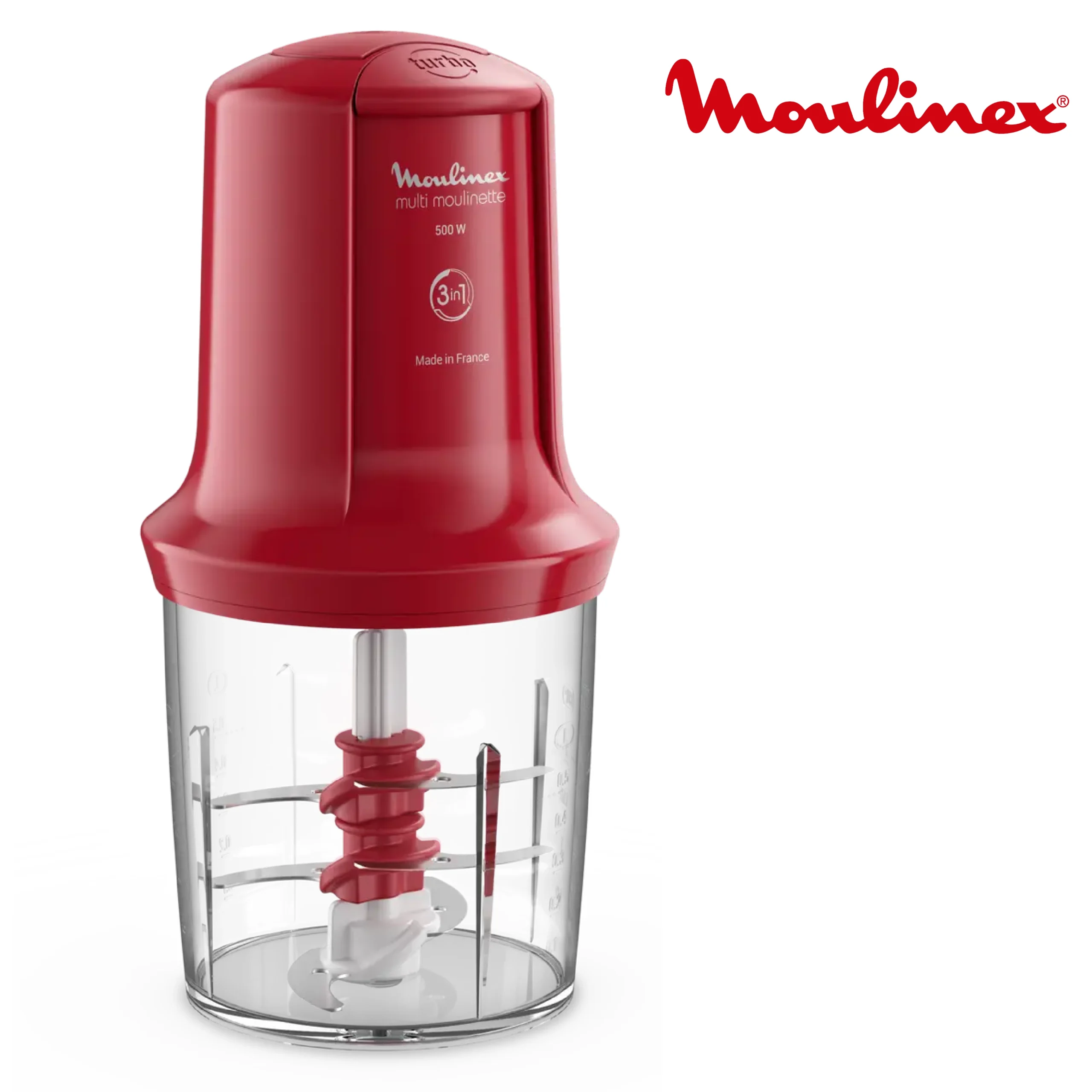 Moulinex, Mini Hachoir, Multimoulinette, 500 ml, 6 lames en acier inoxydables, AT714G32, Rouge Rubis