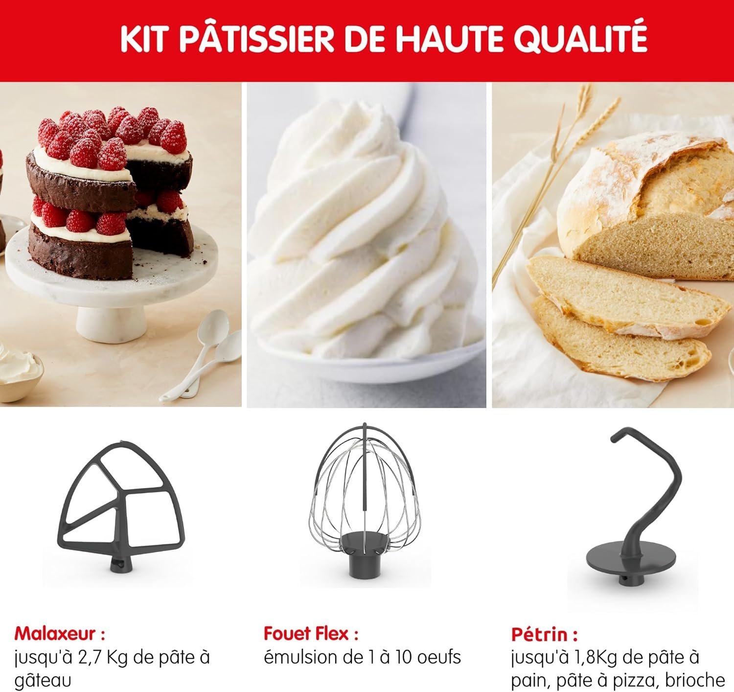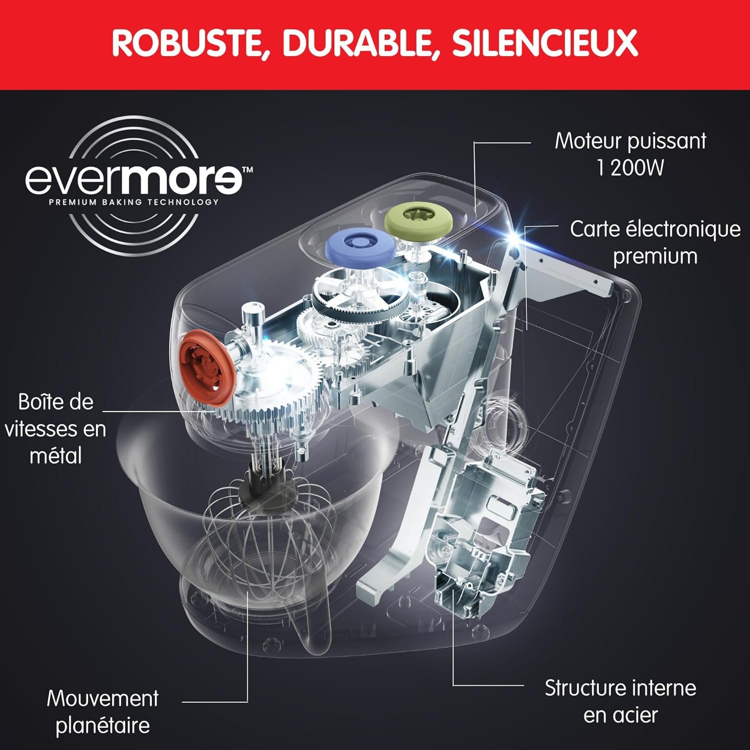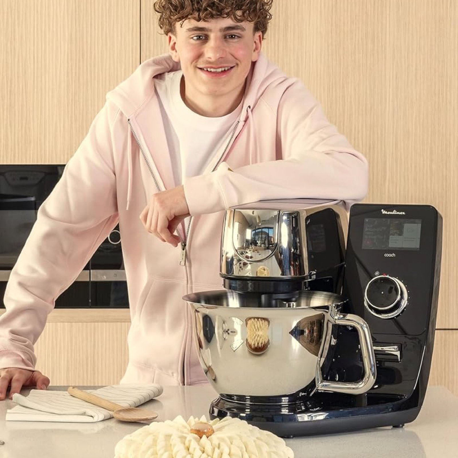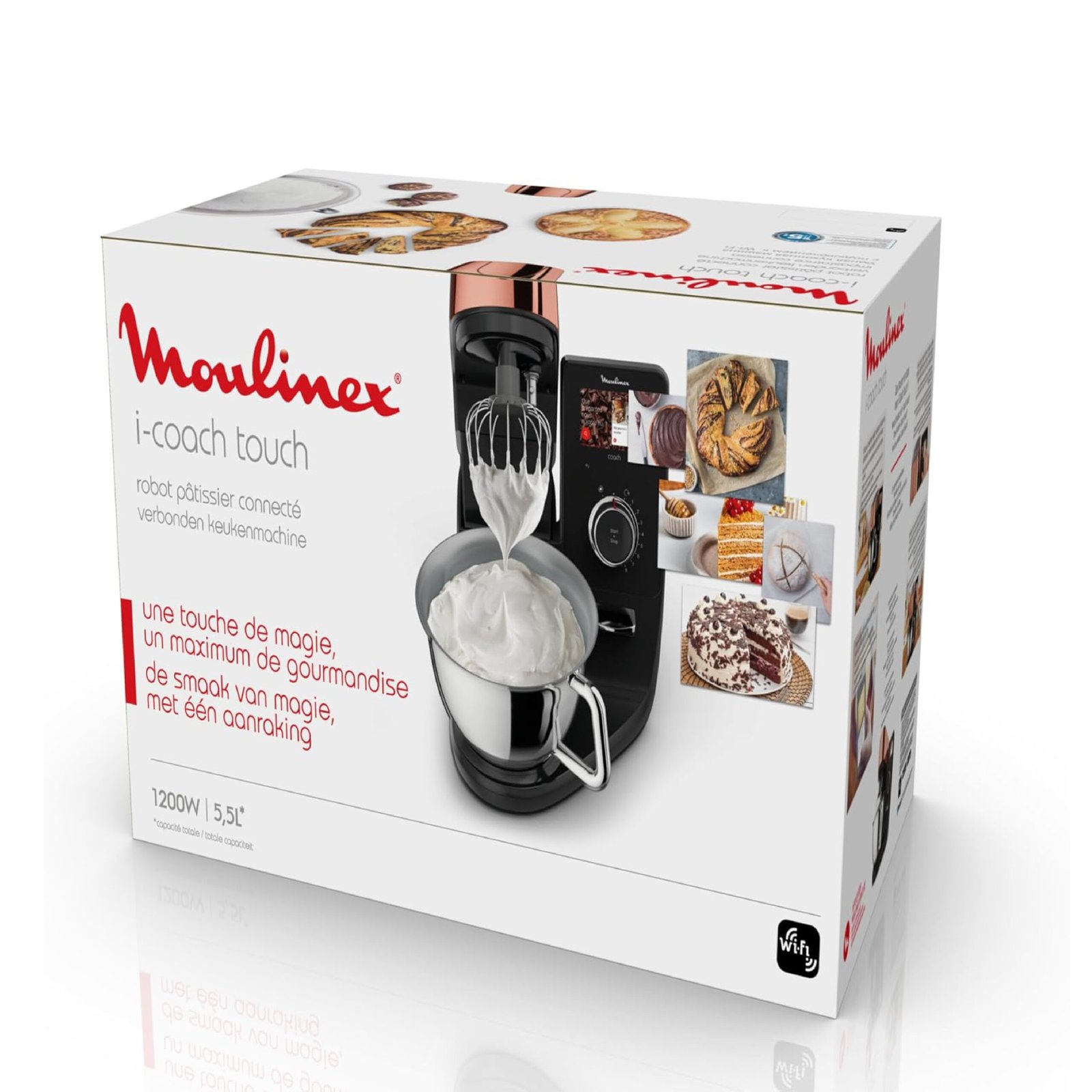 Moulinex Robot pâtissier connecté, Bol inox 5.5 L, Technologie brevetée, Ecran digital, 21 recettes programmées QA950810