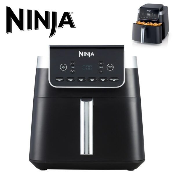 Ninja Air Fryer MAX PRO, 6.2L, sans huile, grand tiroir, rôtir, cuire, frire, familial, numérique, produits congelés, antiadhésif, panier et plaque de cuisson compatibles lave-vaisselle, gris, AF180EU