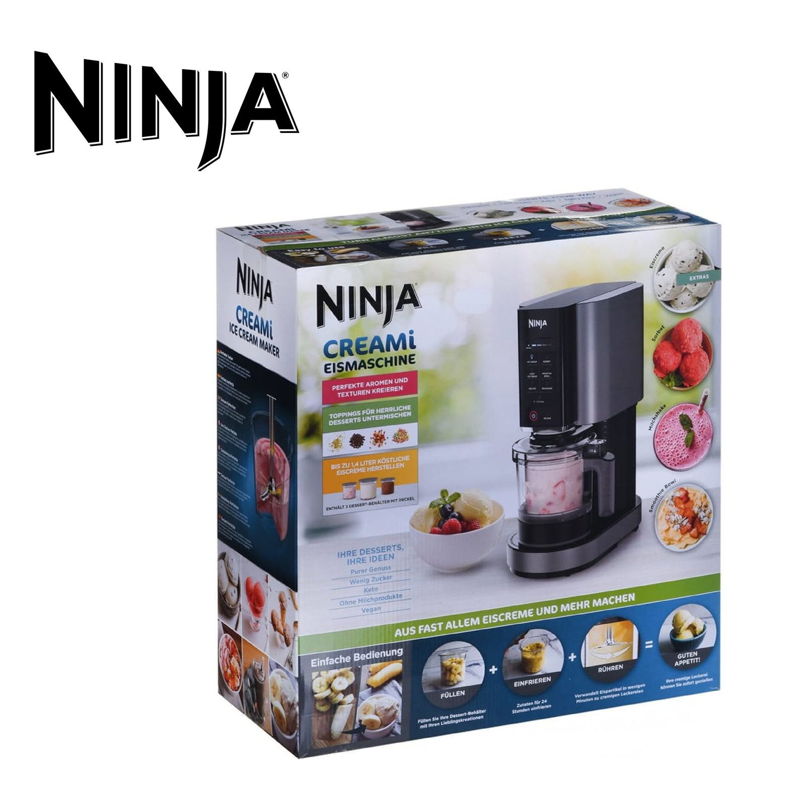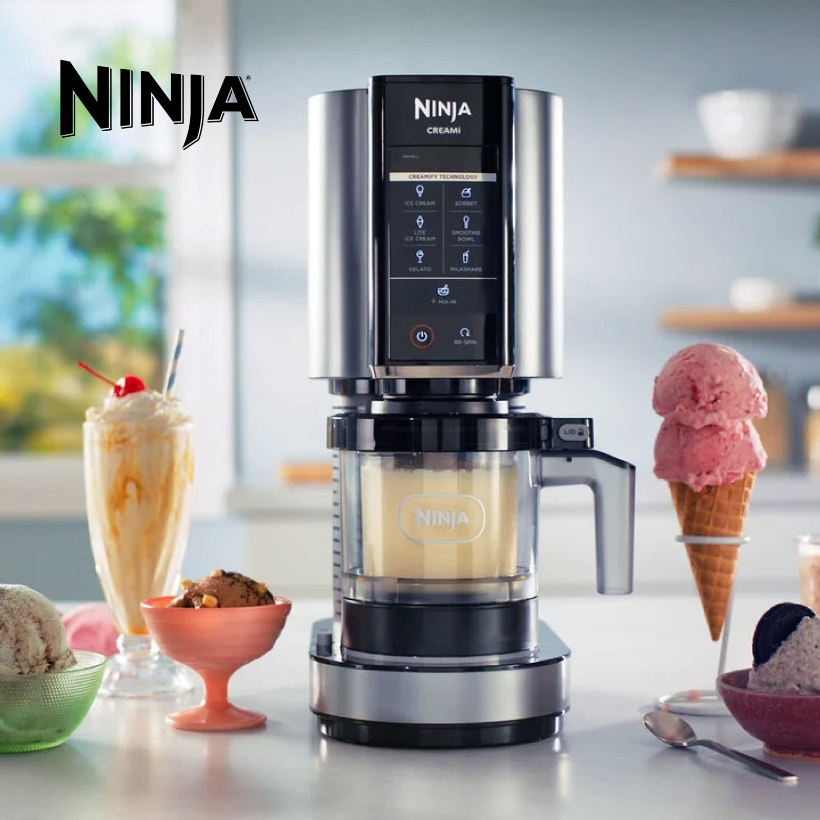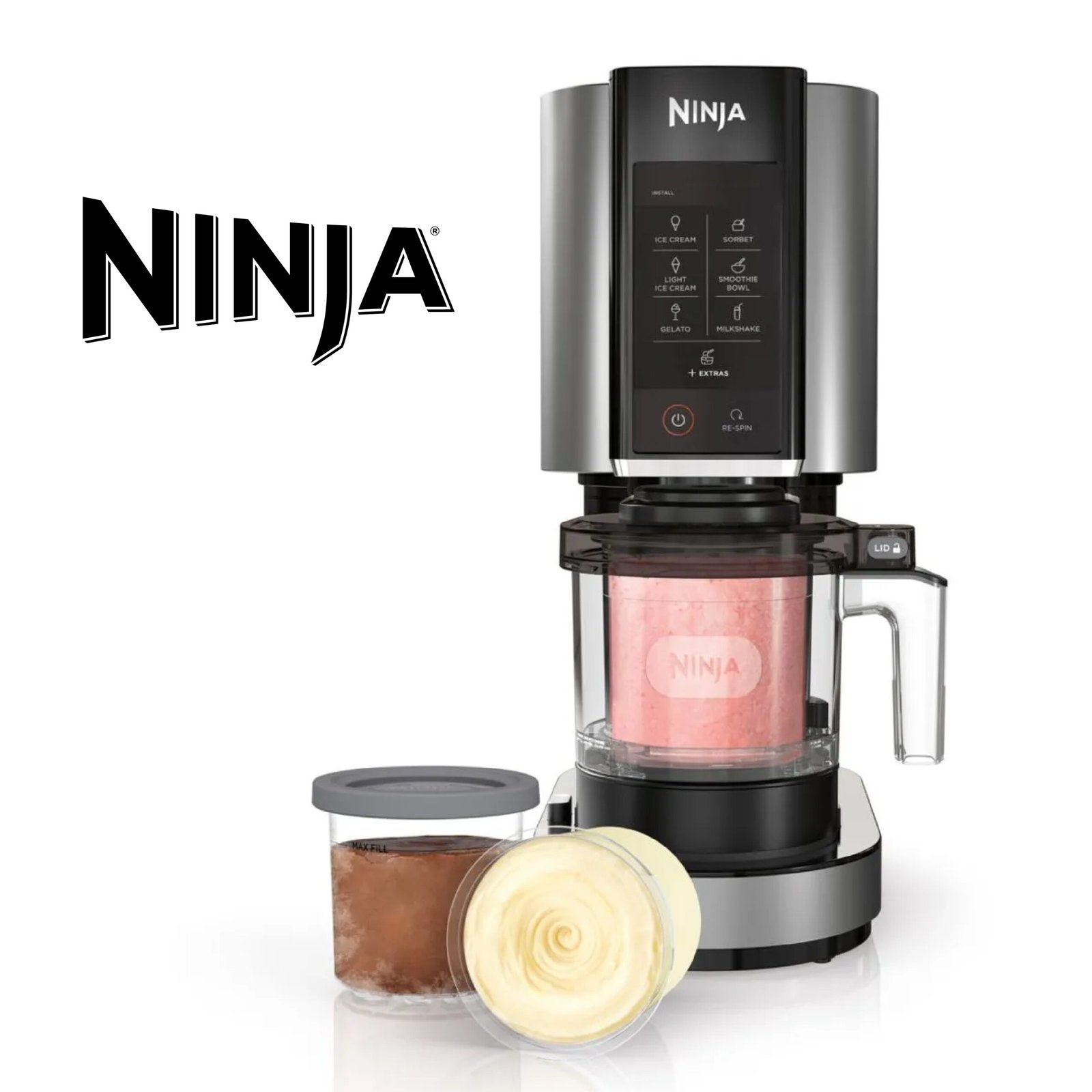 Ninja CREAMi machine à crème glacée et à desserts glacés, 7 programmes, pour faire de la crème glacée, gelato, sorbet, des bols à smoothie ou des milk-shakes, 1,4L, NC300EU