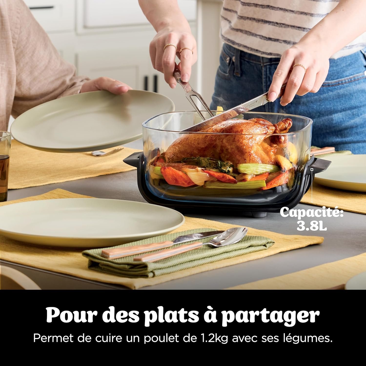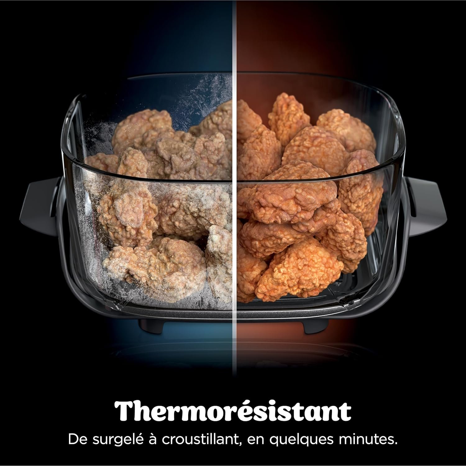 NINJA CRISPi SANS PFOA Air Fryer Design Compact, 2 Capacités Interchangeables en Verre avec Couvercles, Capacité 3,8L ou 1,4L, 4-en-1, Pièces Amovibles lavables au lave-vaisselle, Gris FN101EUGY