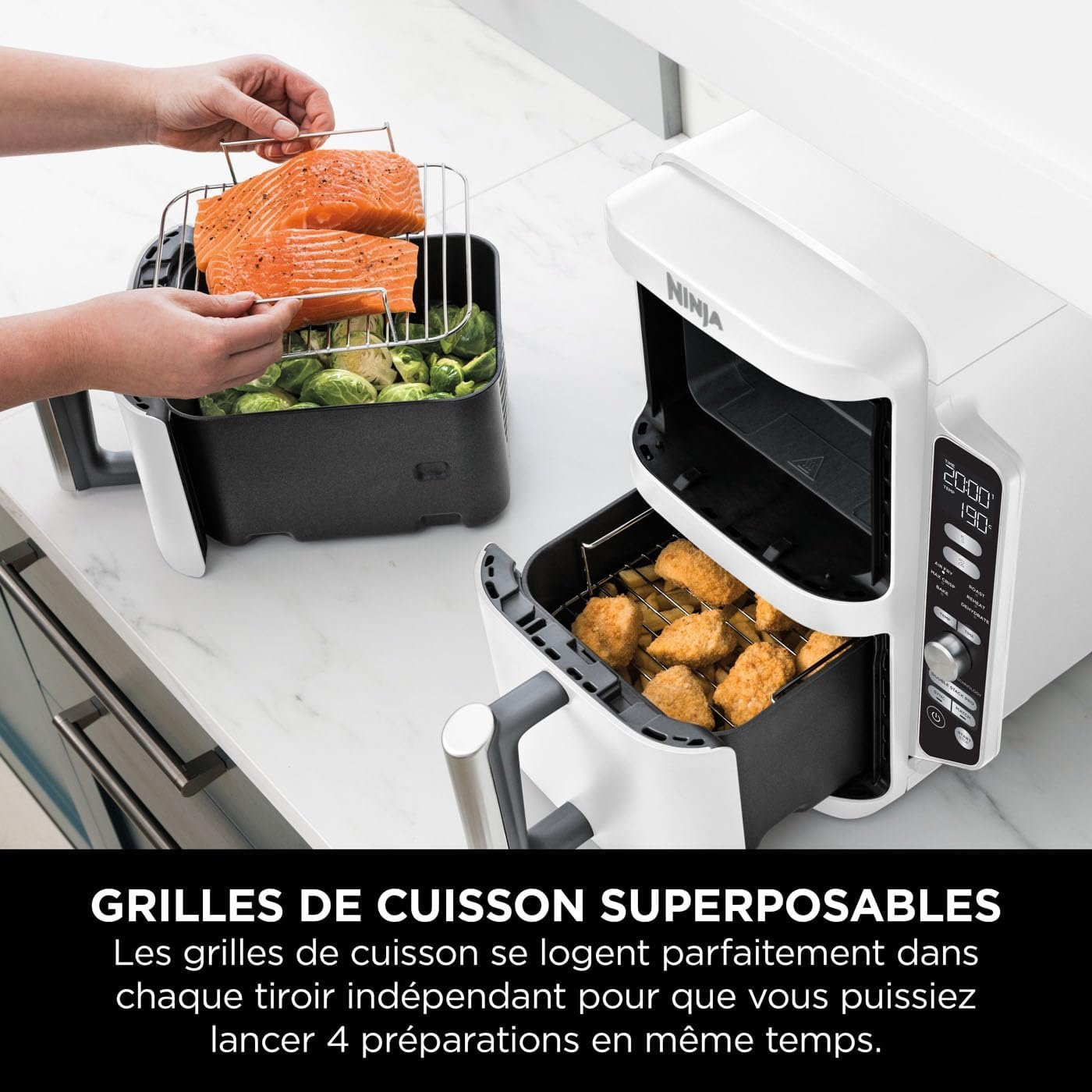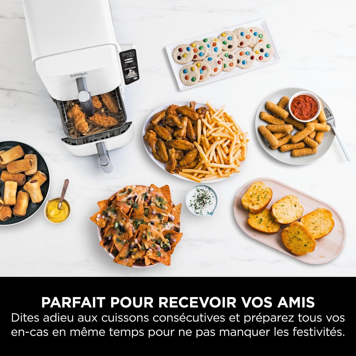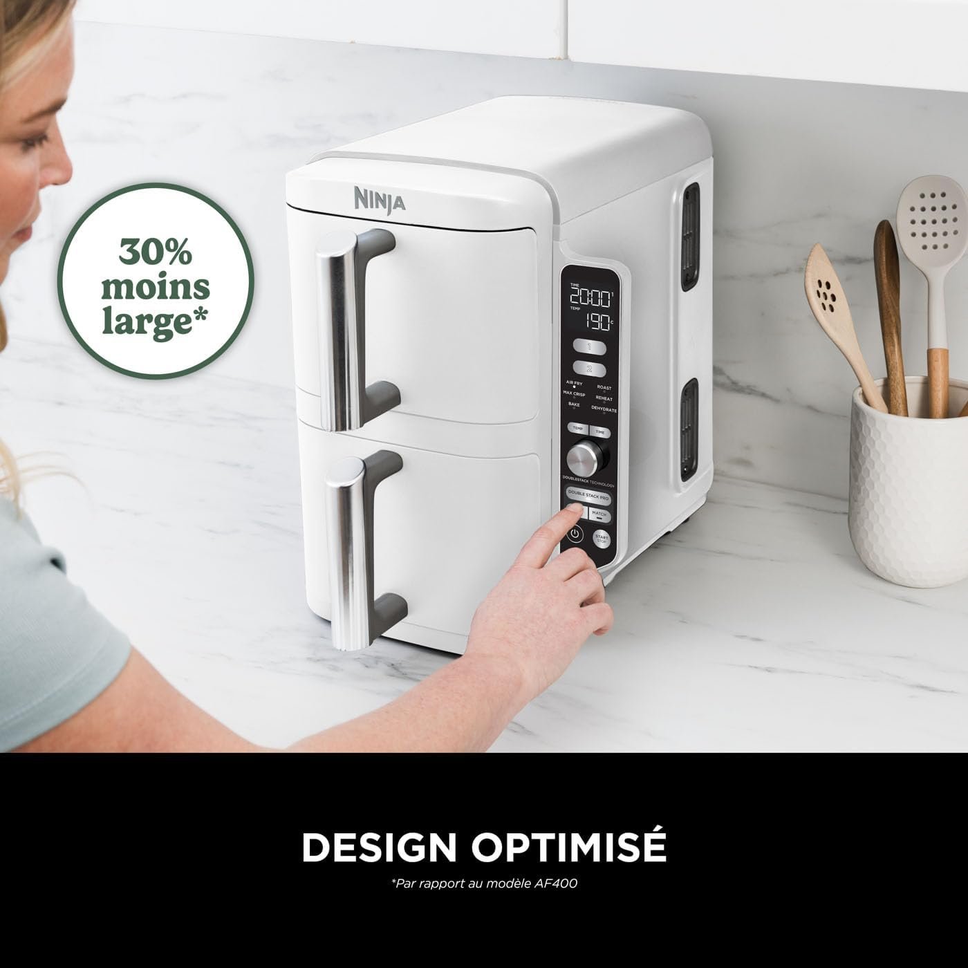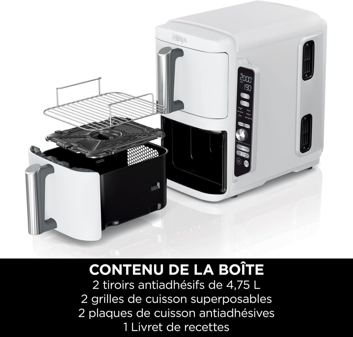 NINJA Double Stack XL Air Fryer, Friteuse sans huile Verticale Double Tiroir 4 Niveaux de Cuisson, 2 Tiroirs, 2 Grilles, Capacité de 9,5 L, 6 Fonctions, 8 Portions, Pinces, Blanc SL400EUWH