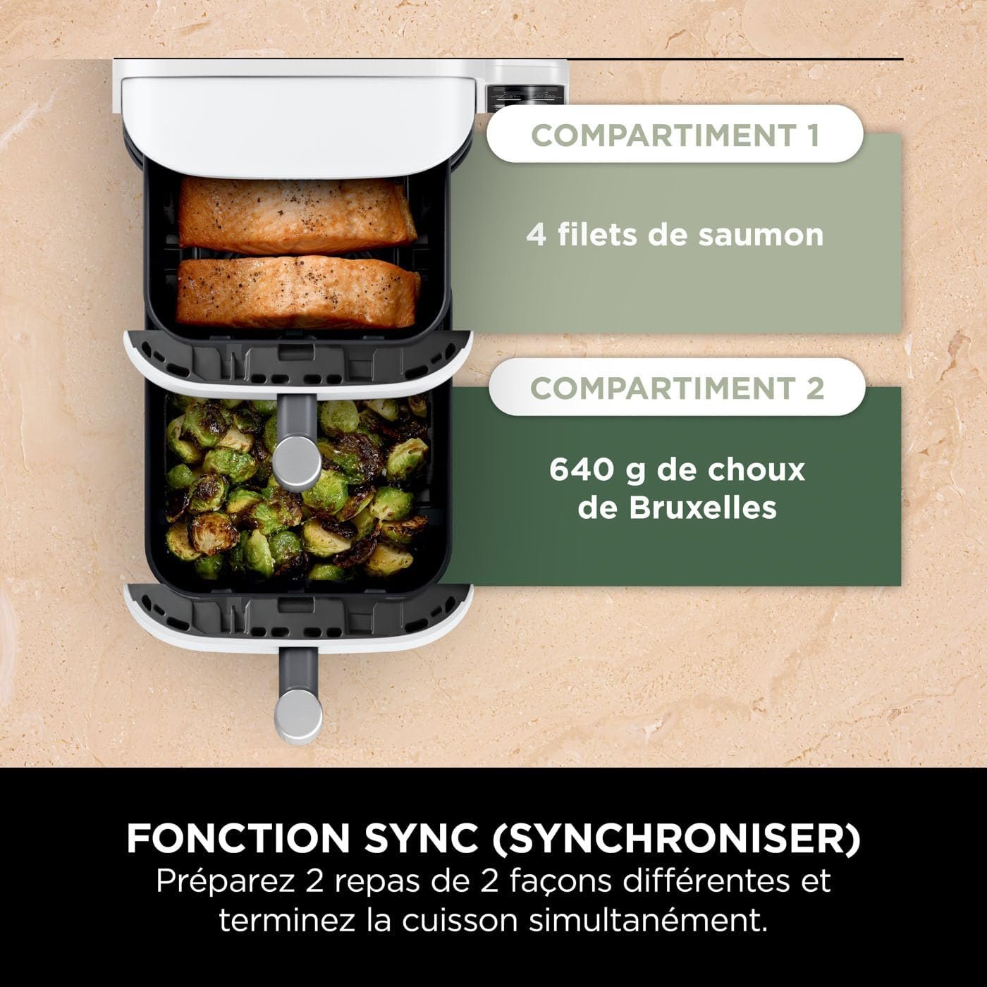 NINJA Foodi MAX Dual Zone Air Fryer, 2 Tiroirs, 9,5L, 6-en-1, Sans Huile, Air Fry, Croustillant Max, Rôtir, Cuire, Déshydrater, 8 Portions, Paniers Antiadhésifs Vont Au Lave-Vaisselle, Noir AF400EU