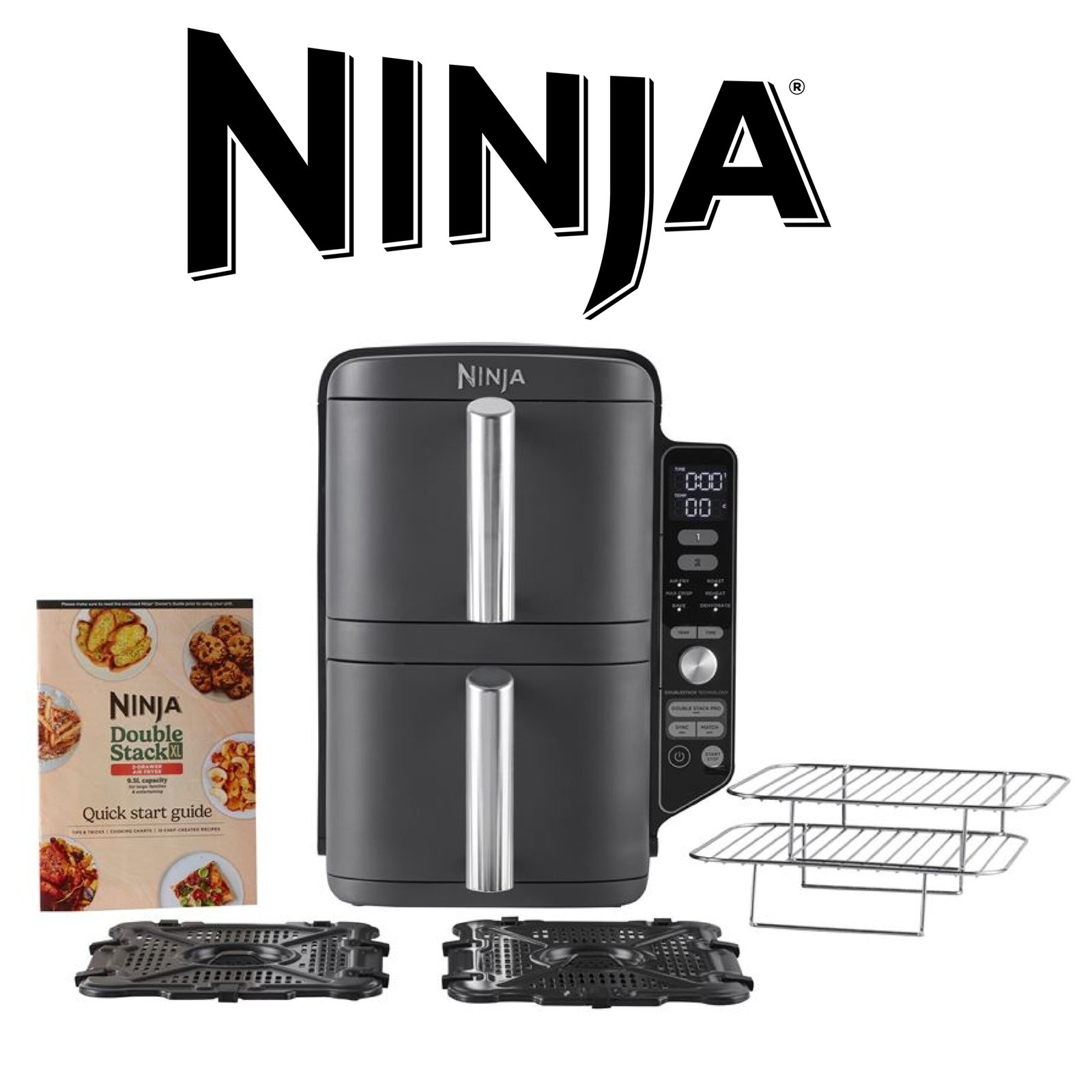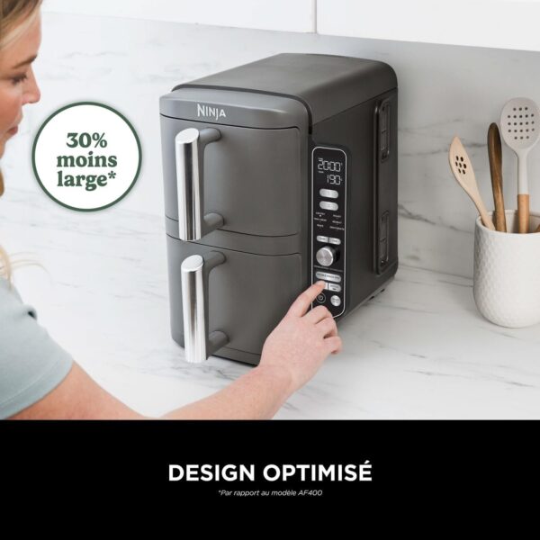 NINJA Double Stack XL Friteuse sans huile, friteuse verticale à 2 tiroirs, 4 niveaux cuisson, 2 tiroirs et 2 grilles, design compact, capacité de 9,5L, 6 fonctions de cuisson, 8 portions, gris SL400EU