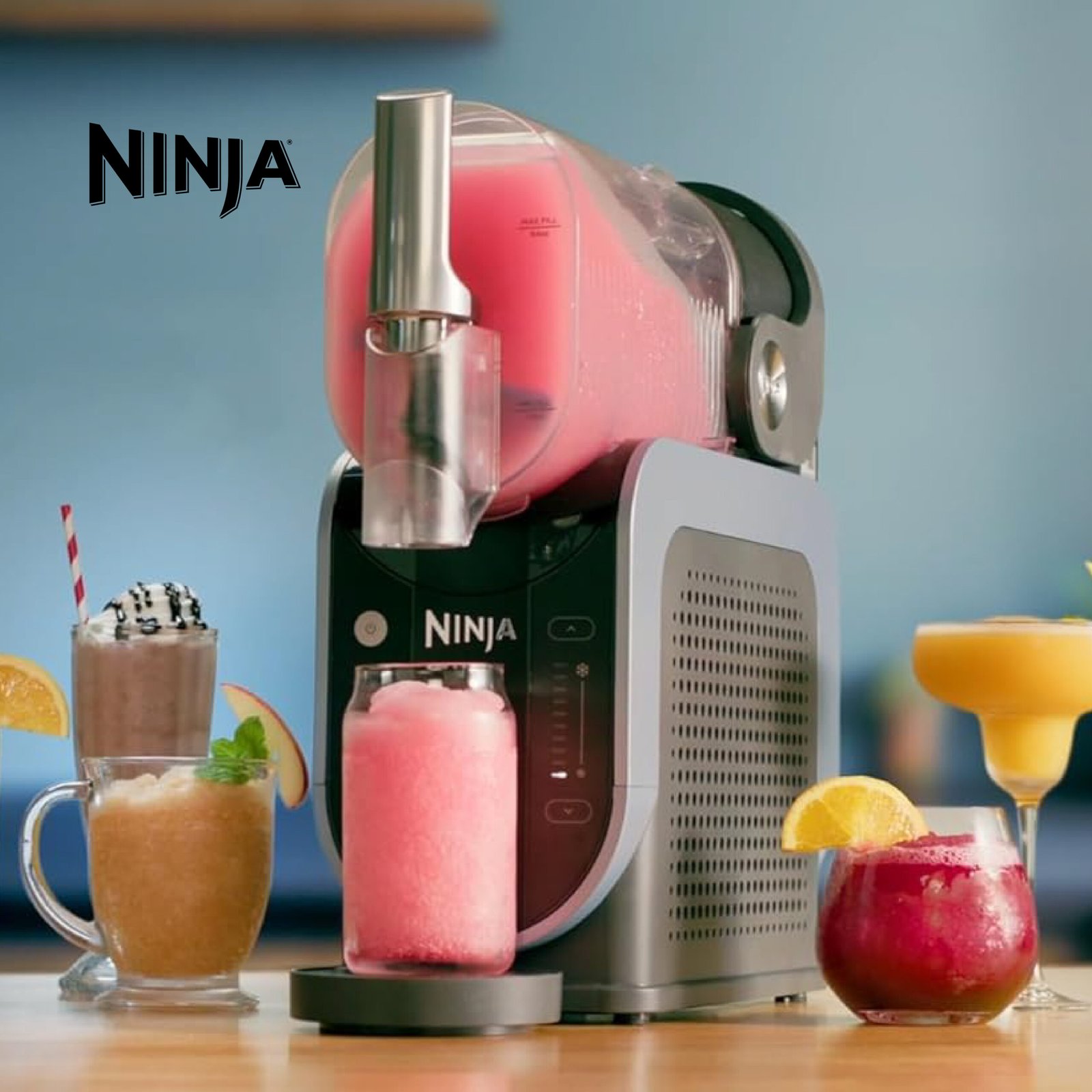 Ninja SLUSHi Machine à boissons glacées, granités, cocktails, frappés, milkshakes et jus glacés, sans glace ni préparation requises, Technologie WhisperChill, capacité 1,9 l, bleu et gris FS301EU