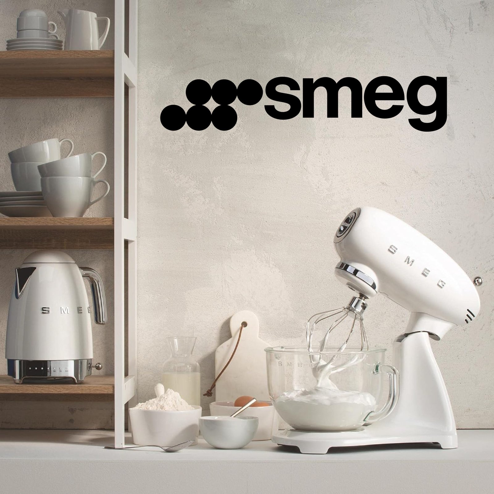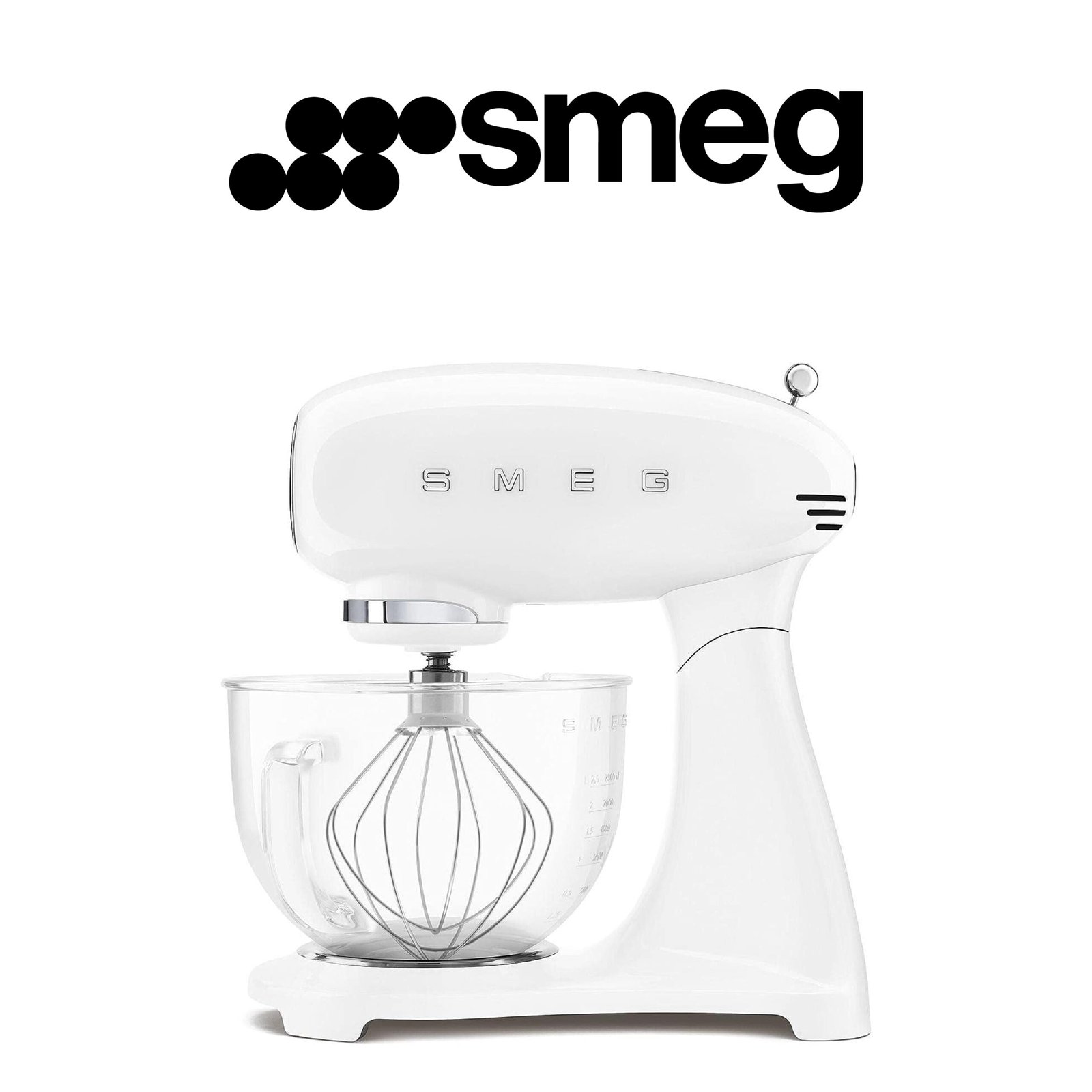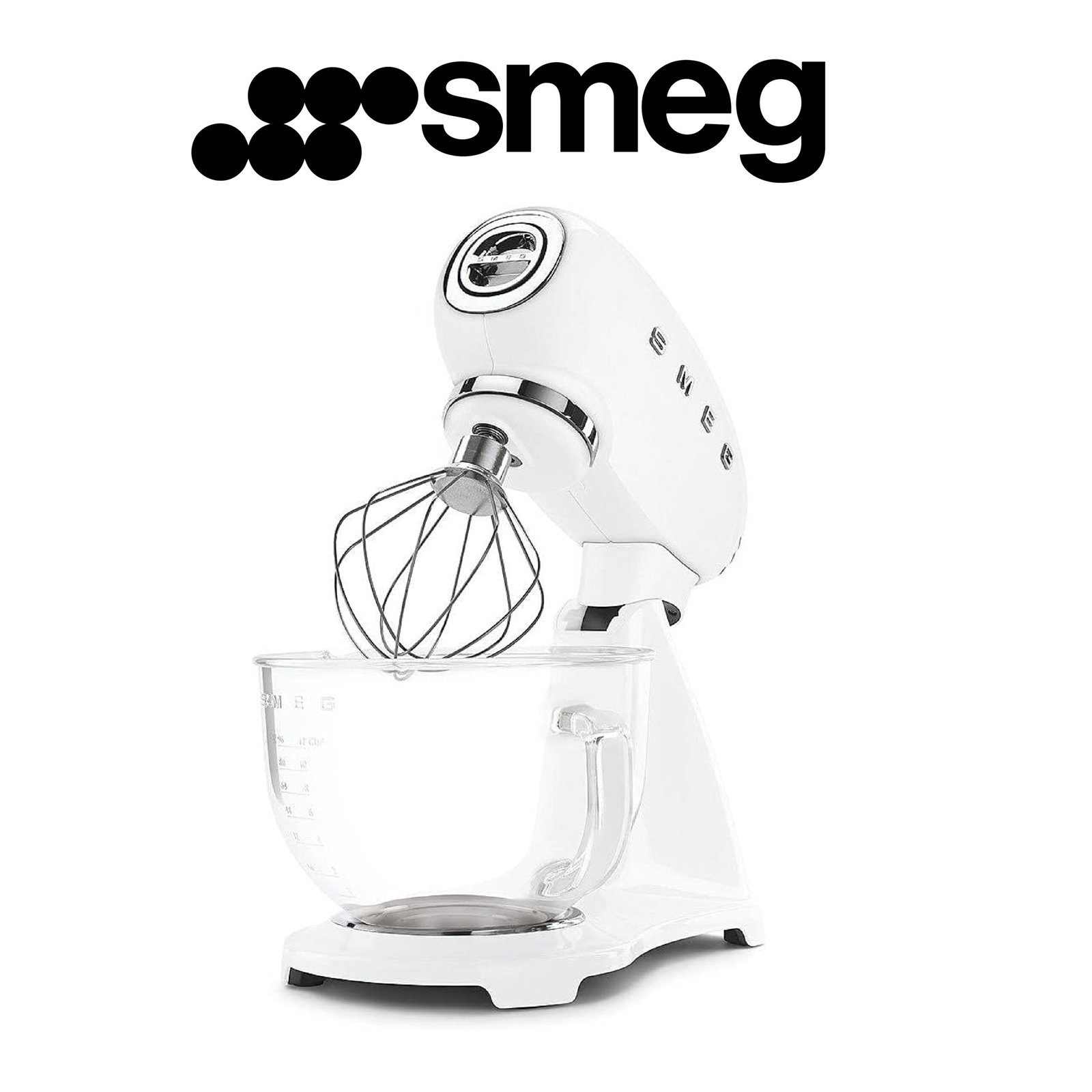 Smeg, Robot Pâtissier SMF13WHEU, 10 Niveaux de Vitesse, Mise en Marche Progressive, Bol en Verre de 4,8 L, Verrouillage Moteur de Sécurité, Accessoires Inclus, 800 W, Blanc