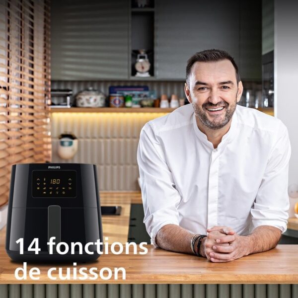 PHILIPS Air Fryer Série 3000 6.2L, air fryer 14 en 1, Technologie Rapid Air, jusqu’à 90% de matières grasses en moins, Digital, App HomeID (HD9270/90)