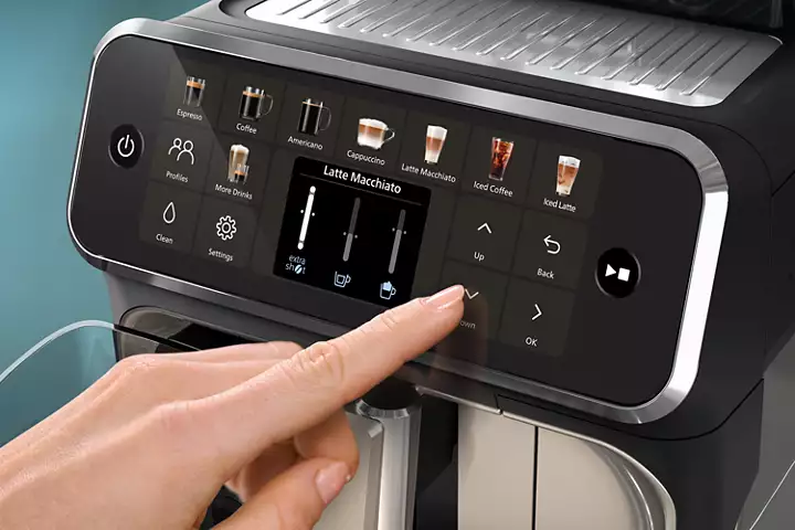 Philips Machine à Expresso Entièrement Automatique 5500 Series – 20 Boissons Chaudes et Glacées, Carafe à Lait LatteGo Facile à Nettoyer, SilentBrew 40% plus Silencieuse, QuickStart, Gris (EP5544/50)