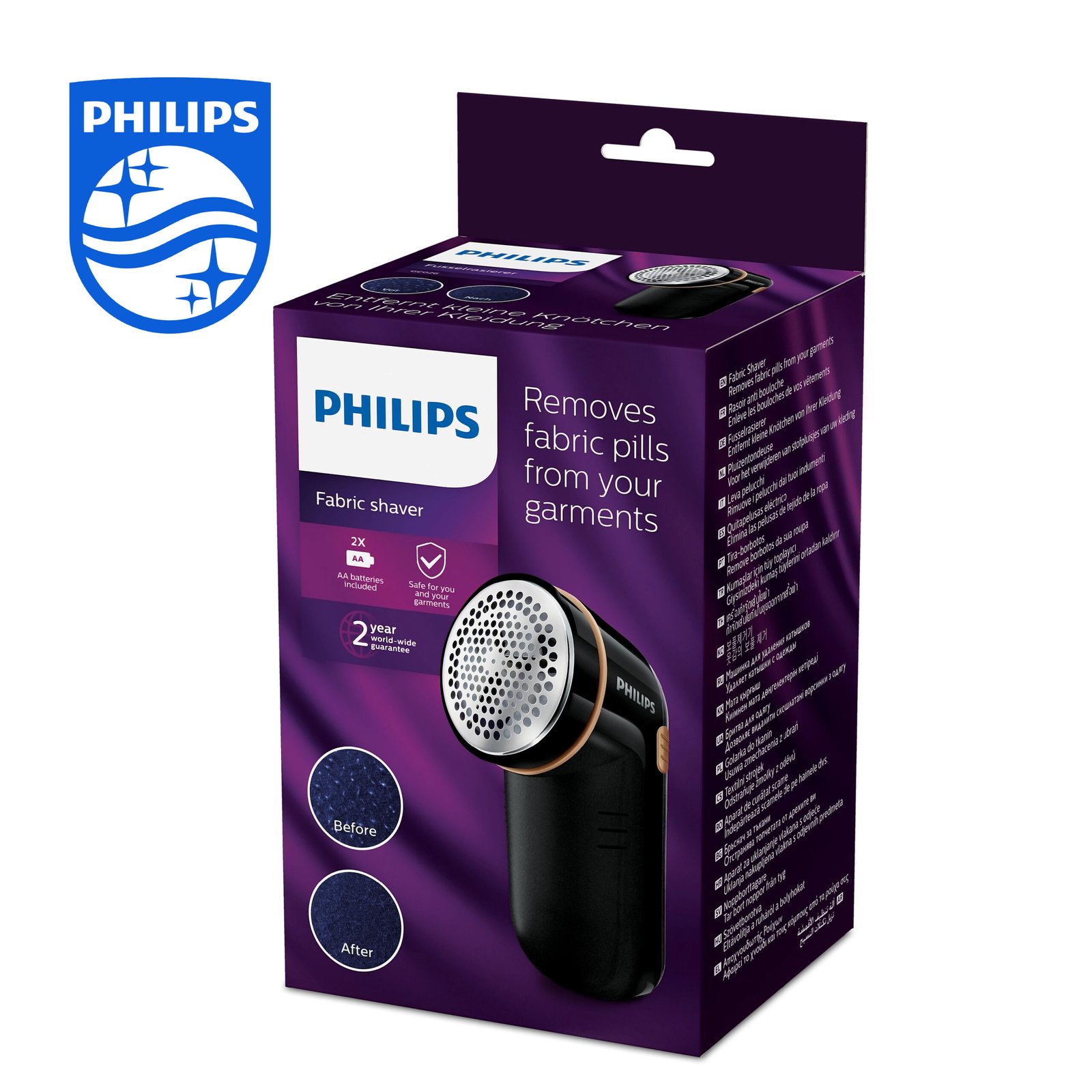Philips Rasoir Anti Bouloche – Élimination Rapide des Peluches GC026/80 (Black/Gold)