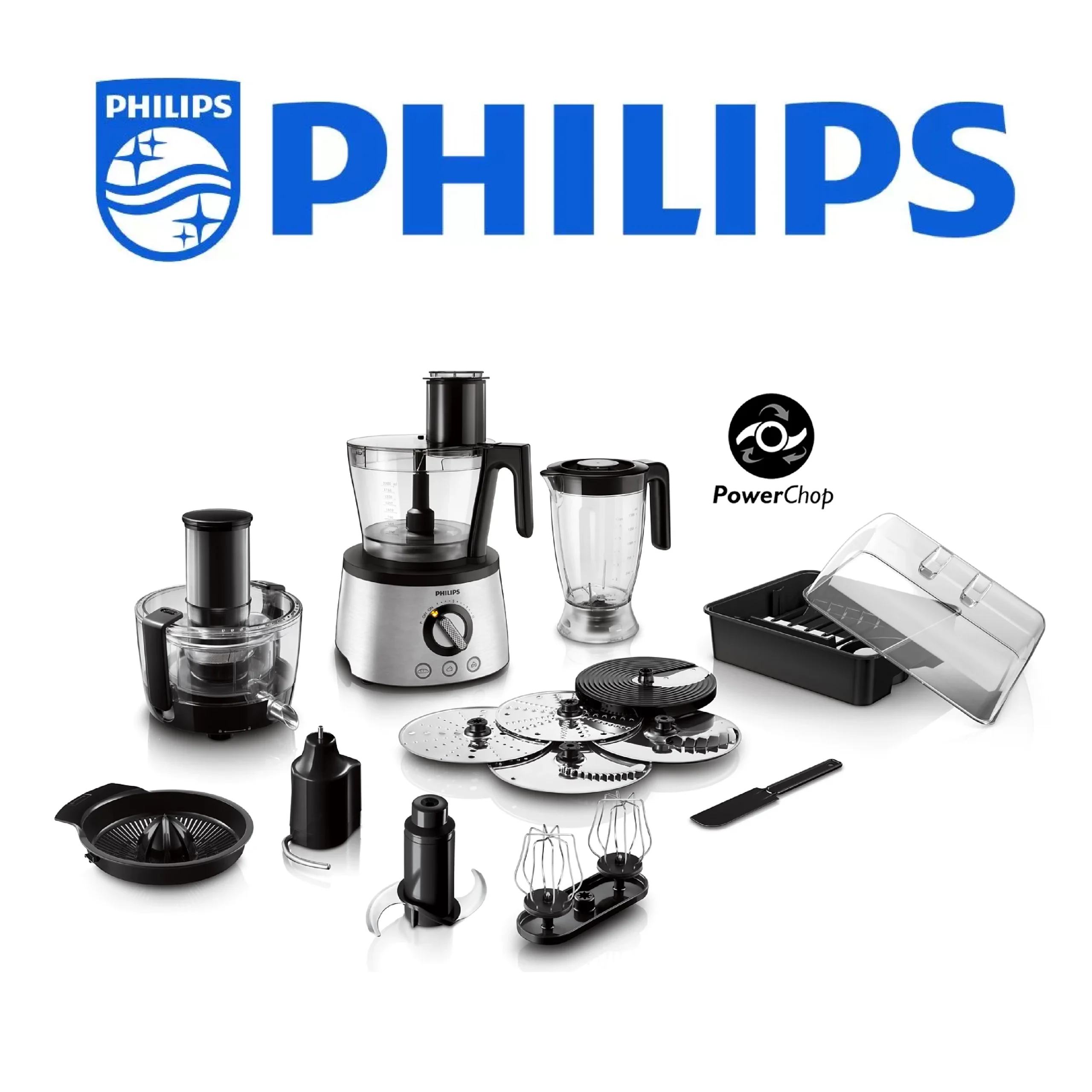 Philips Robot Multifonction Compact -1300W, 32+ Fonctions, Bol de 3,4L, Hachoir Puissant, Lame et Disques en Acier Inoxydable (HR7778/00)