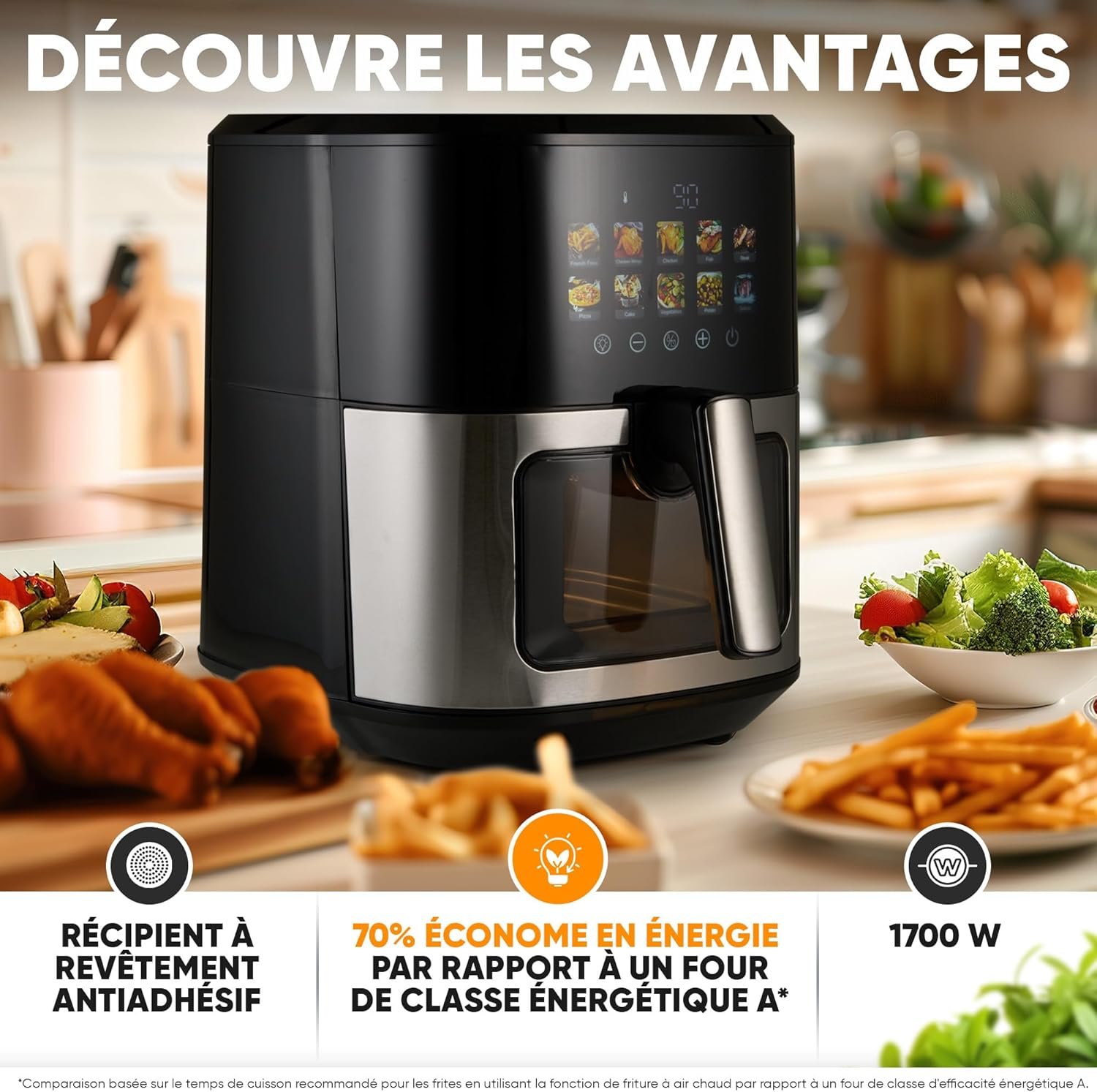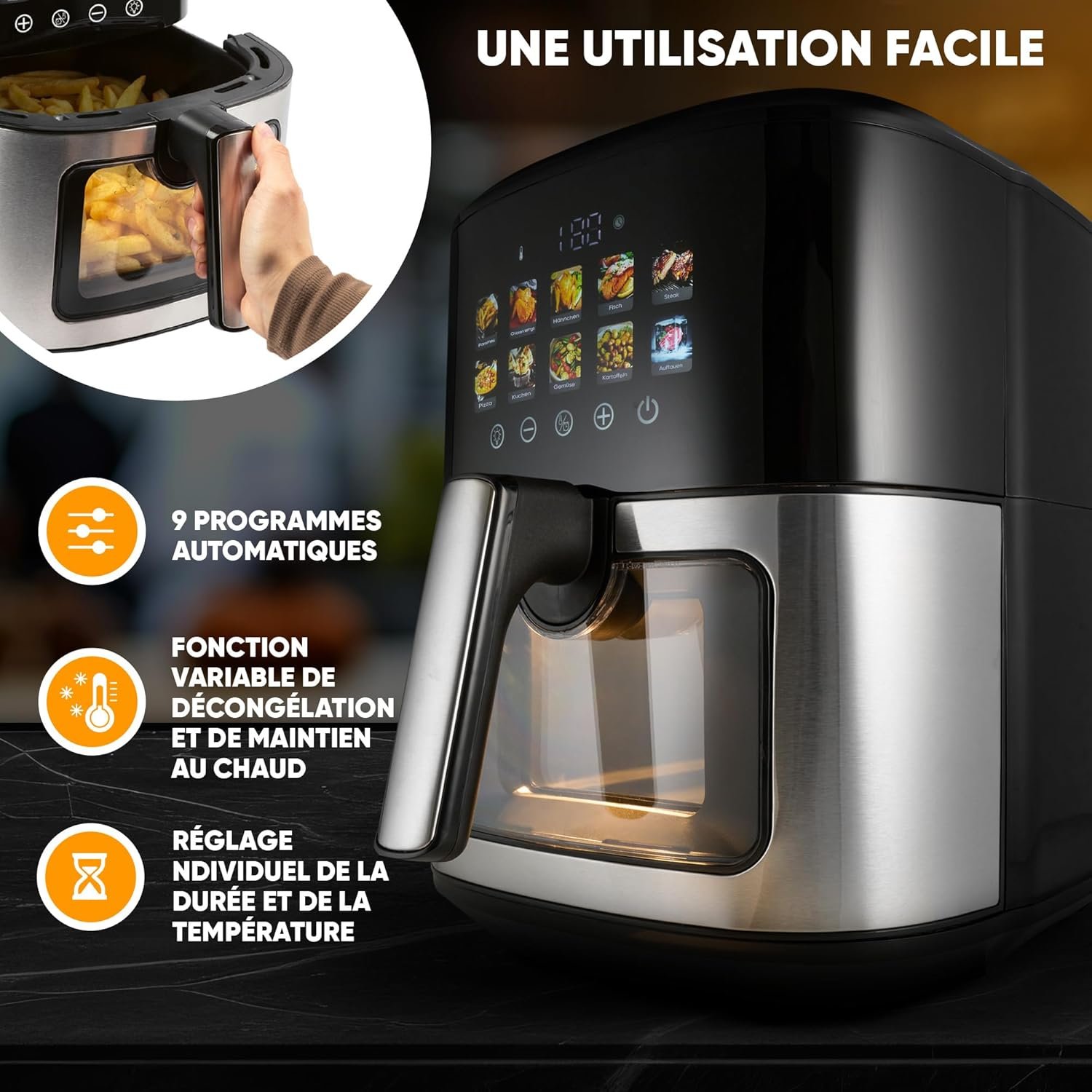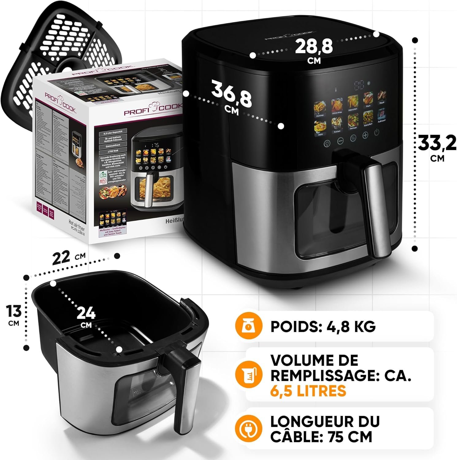 ProfiCook® Friteuse à air chaud, capacité 6,5 l, avec fenêtre isolée thermiquement, friteuse à air chaud sans huile et sans graisse, 1700 W, friteuse à air chaud pour une alimentation saine | Air