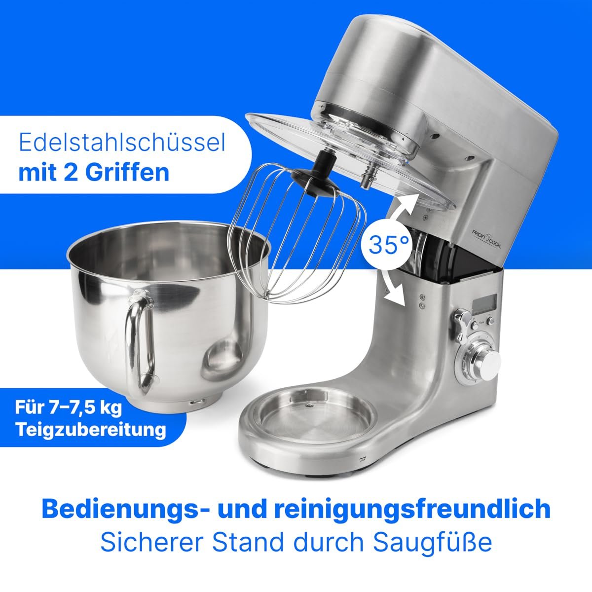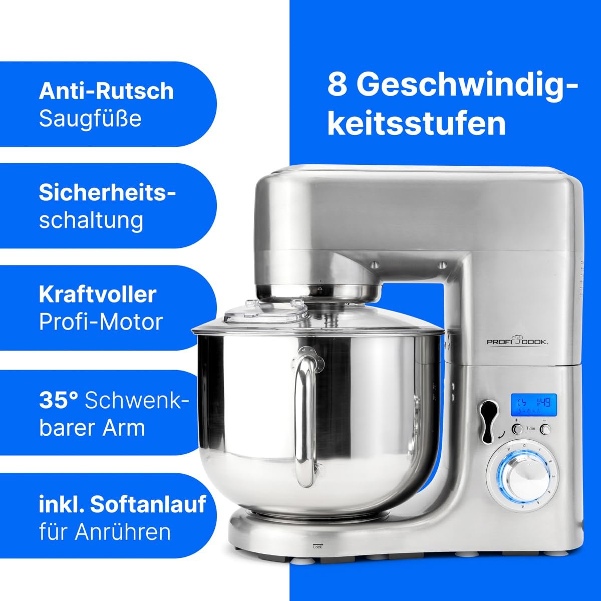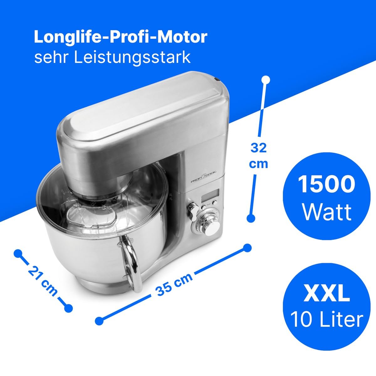 ProfiCook® Robot de cuisine XXXL | Capacité de 10 litres | 6 niveaux de puissance | Bol en acier inoxydable | Boîtier en aluminium | Écran LCD | 1500 watts | PC-KM 1096 | Acier inoxydable
