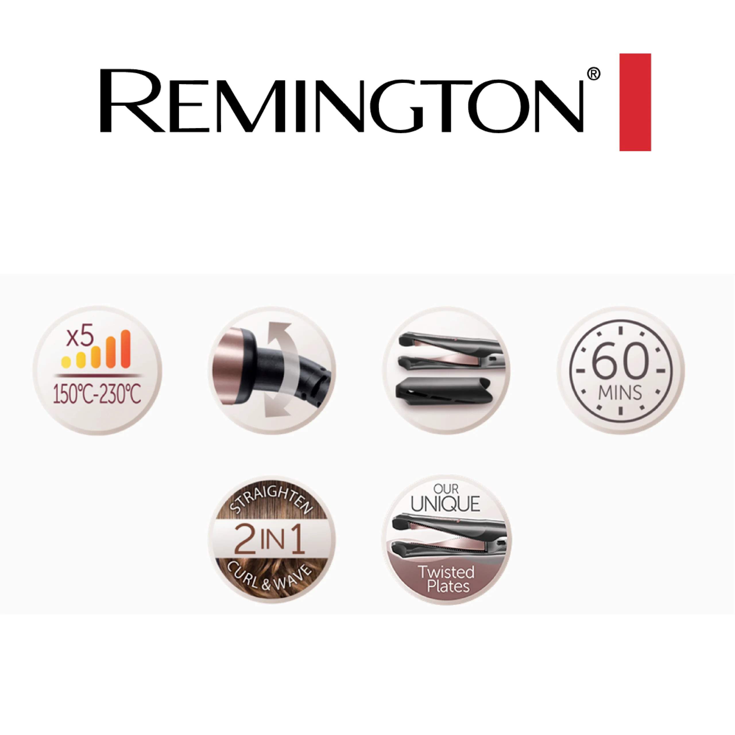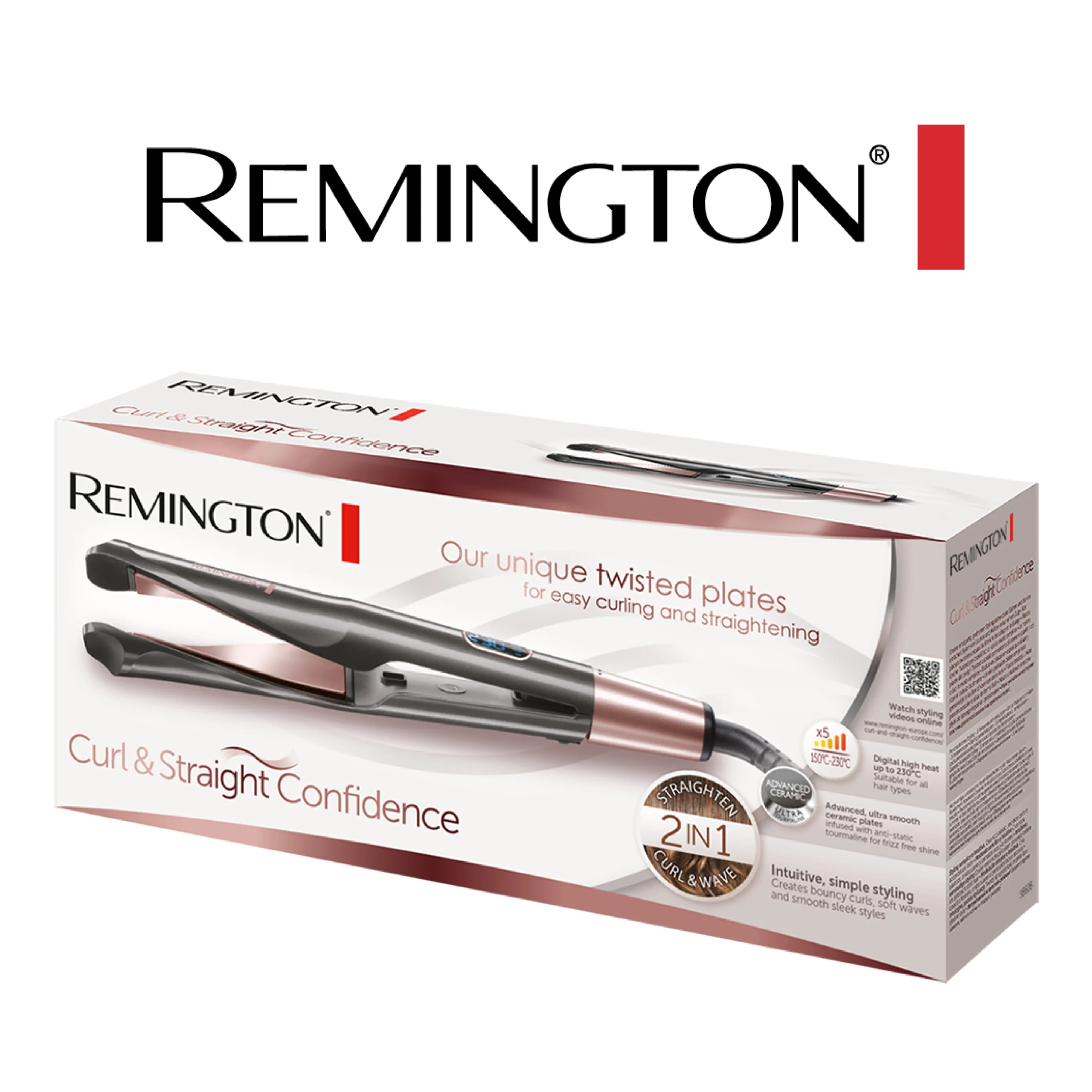 Remington Curl & Straight Confidence, 2-in-1 Hair Straightener & Curler, Ceramic coated plates infused with anti static for smooth glide, Digital display, 5 Temperatures 150°C-230°C, S6606
