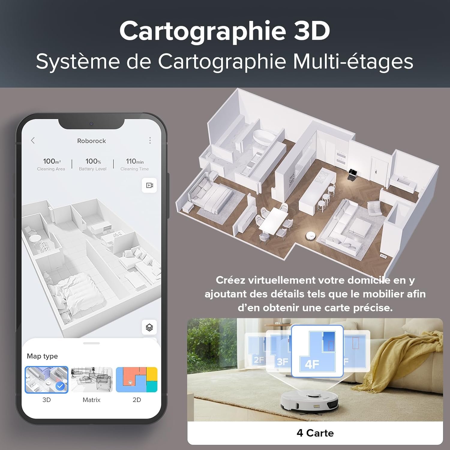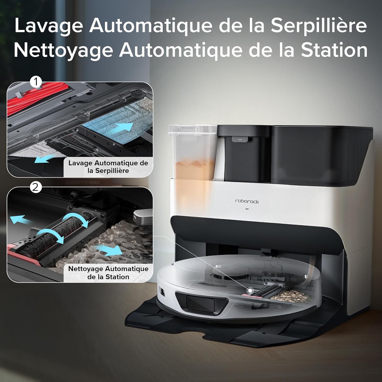 roborock S7 Max Ultra Robot Aspirateur Laveur avec Station 5500Pa, Lavage Séchage et Remplissage Automatique avec Évitement Actif d’obstacles/Commande Vocale/APP -Noir