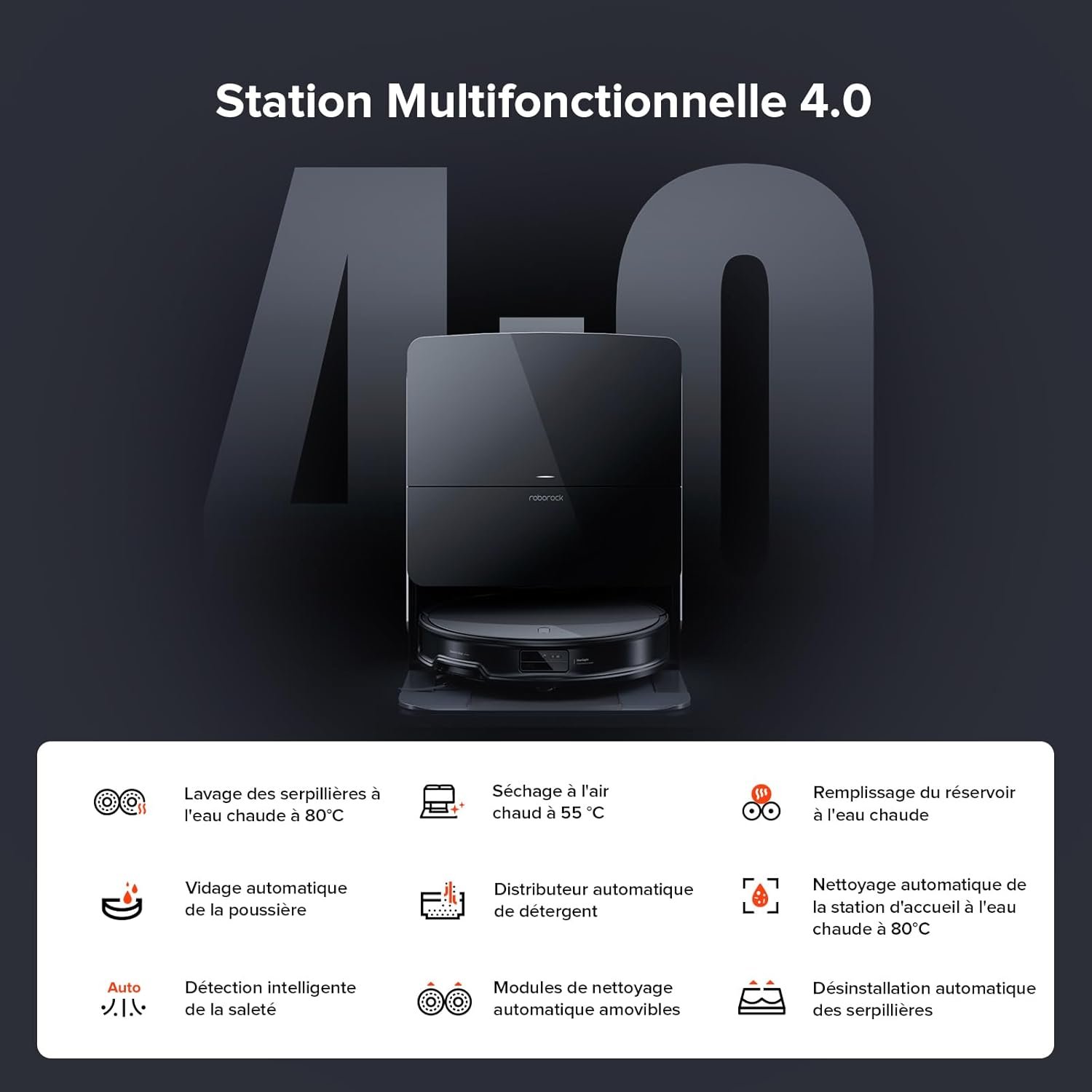 Roborock Saros 10R Robot Aspirateur, Brosse et Serpillère Relevables et Extensibles, Triple Système Anti-Enchevêtrement, Station Multifonctionnelle 4.0, Évitement Avancé des Obstacles, 7,98cm Mince