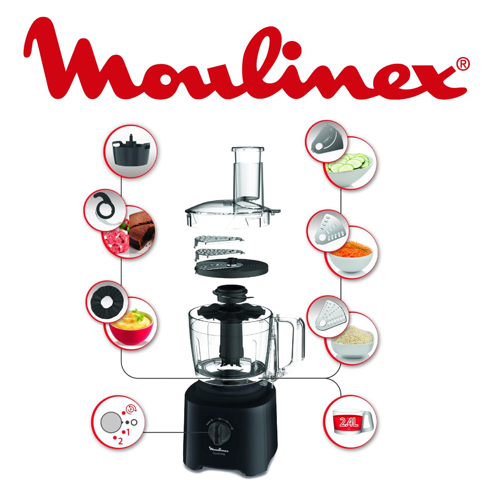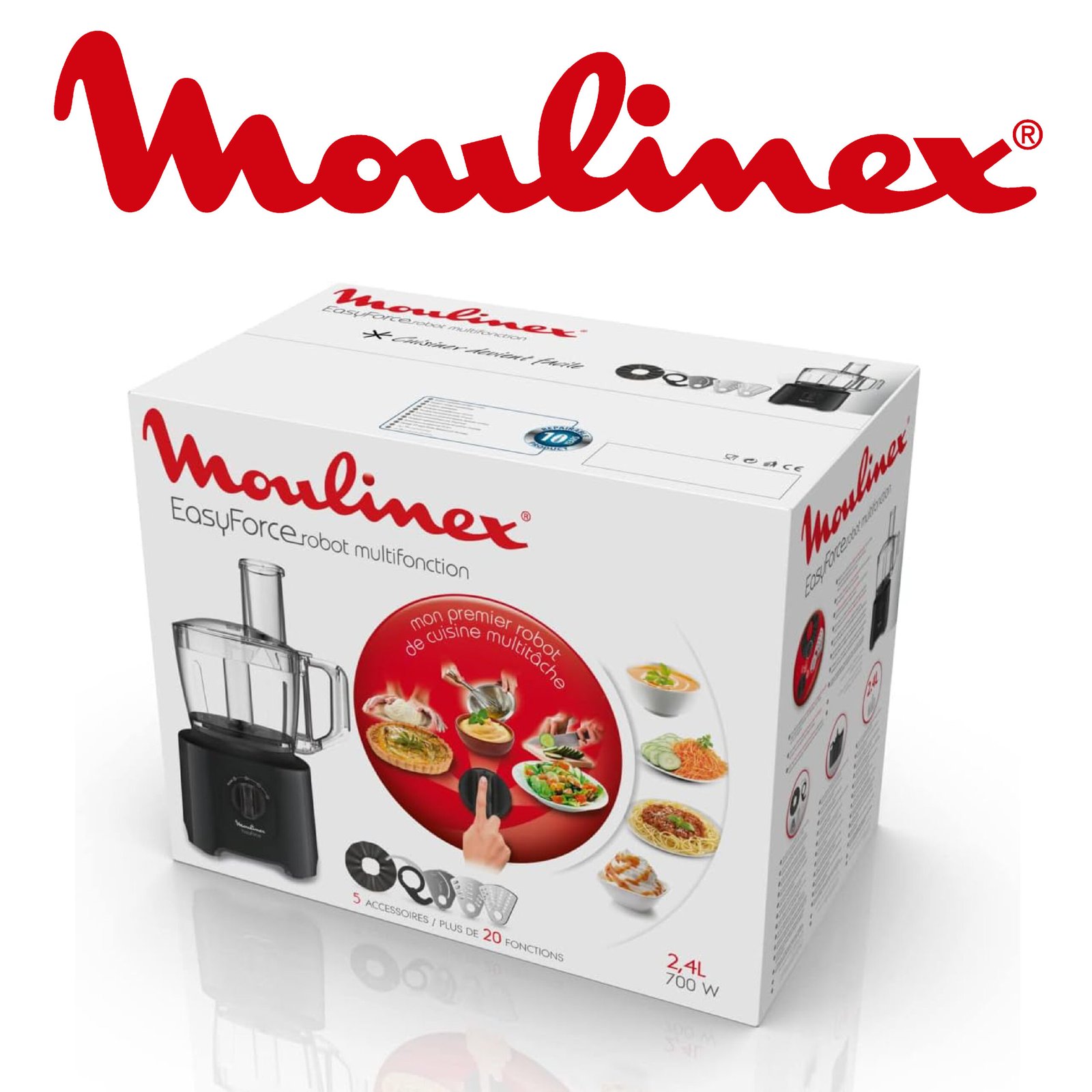 Moulinex Easy Force Robot multifonction, Puissance 800 W, Robot cuisine facile a utiliser, Plus de 20 fonctions, Mixer, pétrir, hacher, râper, émincer, Robot mixeur grande capacité FP245810