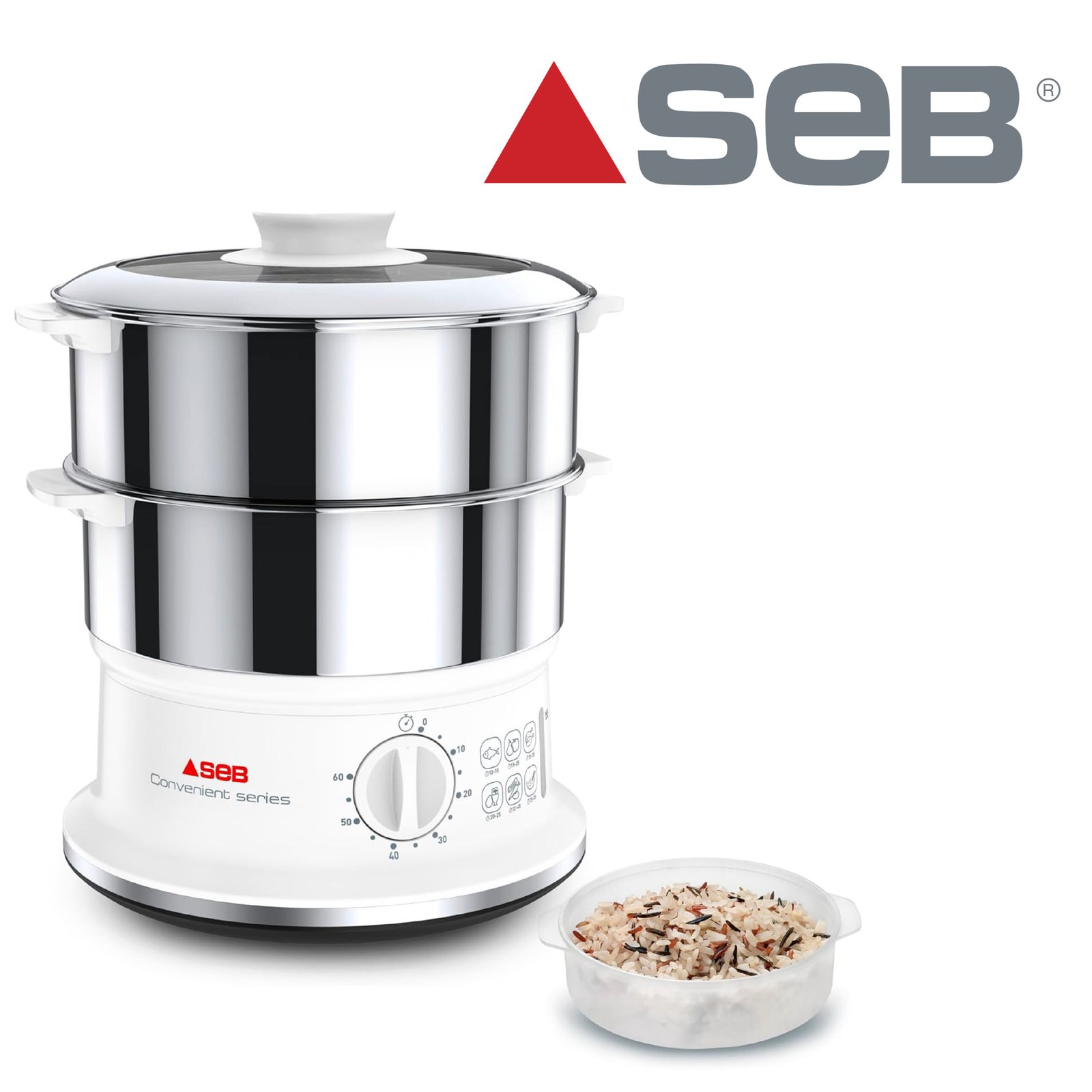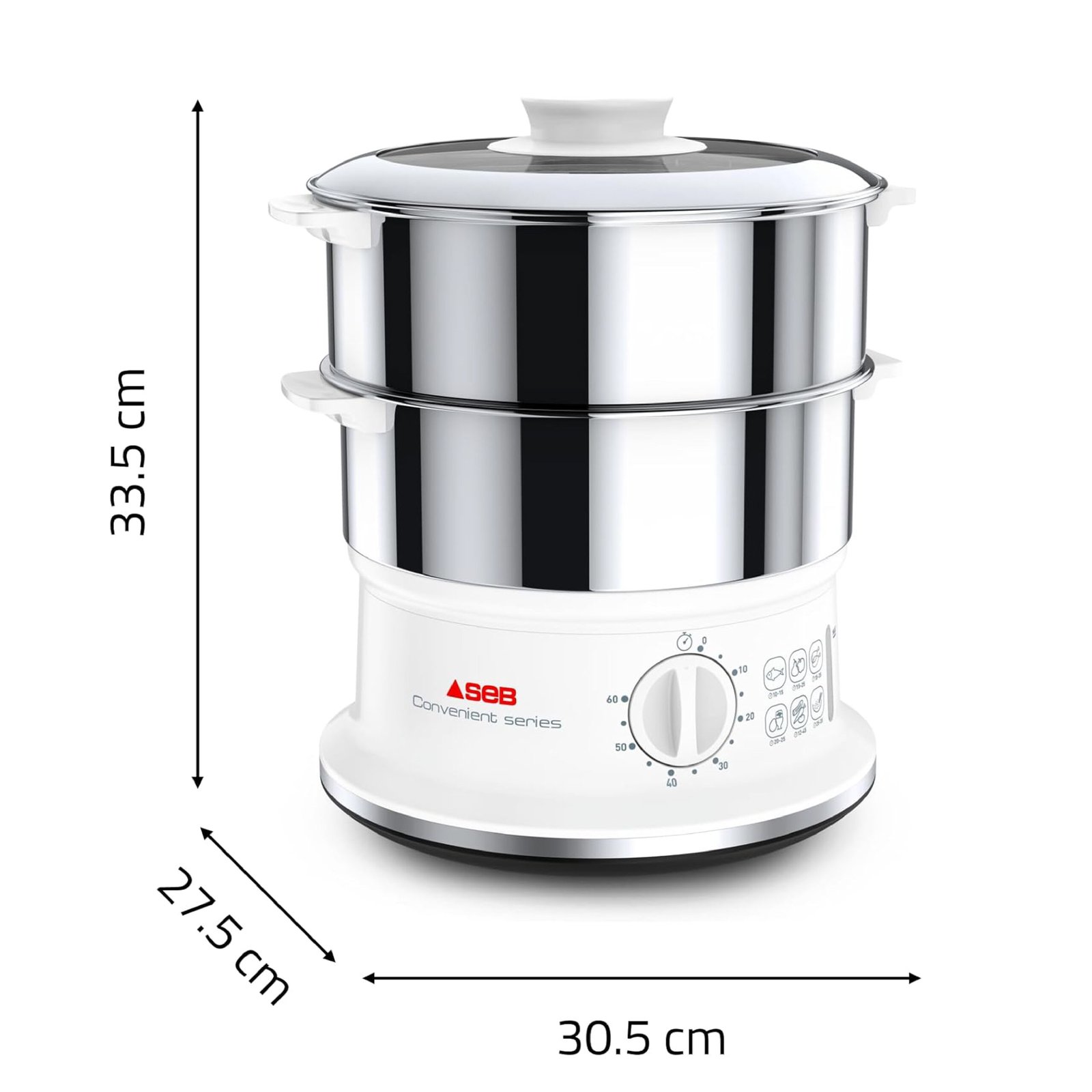 Seb Cuiseur Vapeur série Convenient 2 bols inox, Capacité bol 6 L, Cuisson vapeur, Cuit vapeur compact, Minuteur, Arrêt automatique VC145100, 2 Paniers