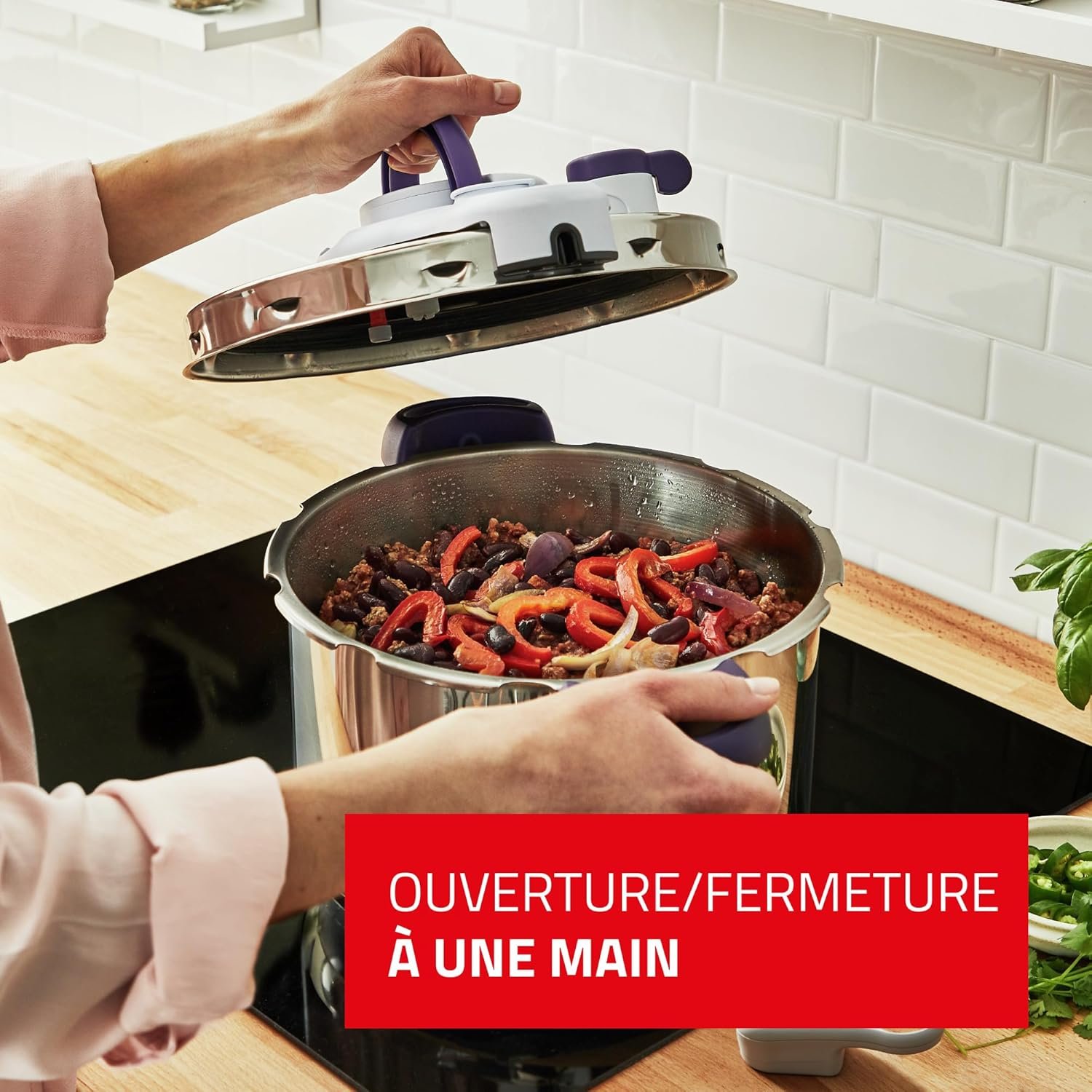 Seb Clipsominut’ Perfect Cocotte-minute 7,5 L, Autocuiseur induction, Facile à utiliser, Minuteur, Livre 100 recettes inclus, Fabriqué en France, Violet P4624800 x1