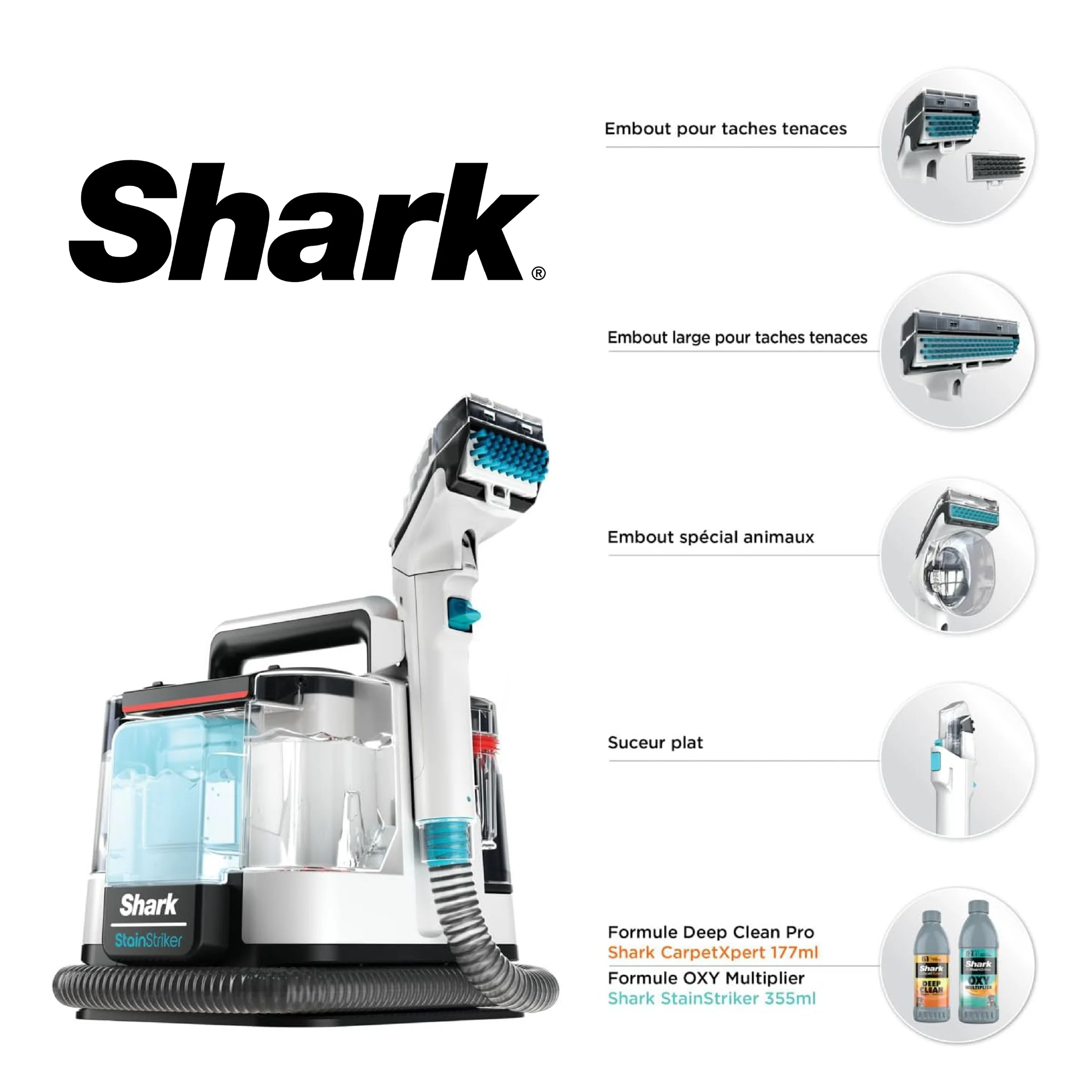 Shark StainStriker Nettoyeur de taches avec 5 outils dont accessoire pour animaux, suceur plat, tuyau, 2 Formules nettoyage sur mesure Élimine taches, odeurs, saleté. Léger et portable, 450W PX200EUT