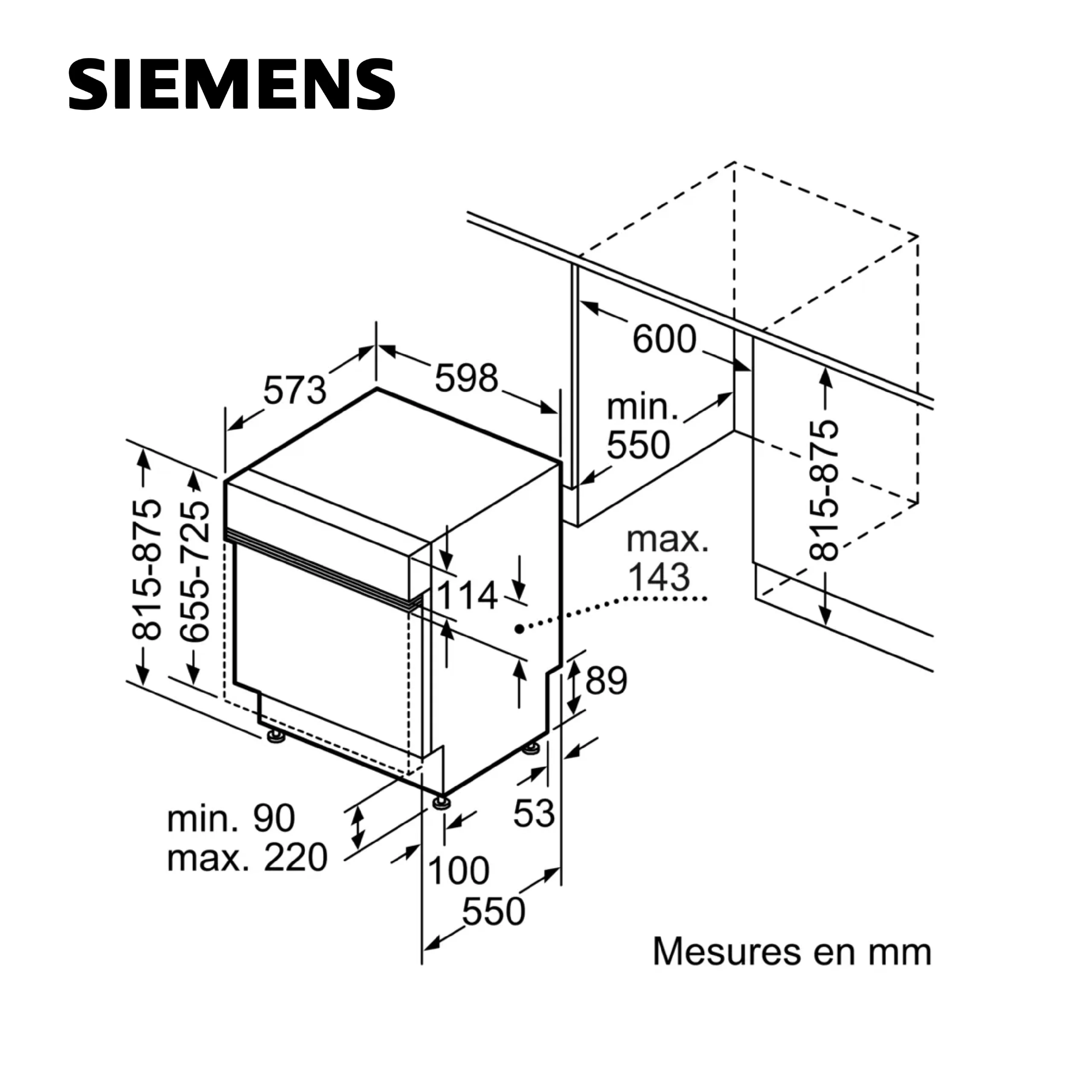 SIEMENS Lave vaisselle integrable 60 cm SN53ES27VE, IQ300, 14 couverts, 6 programmes, 44DB [Classe énergétique C]