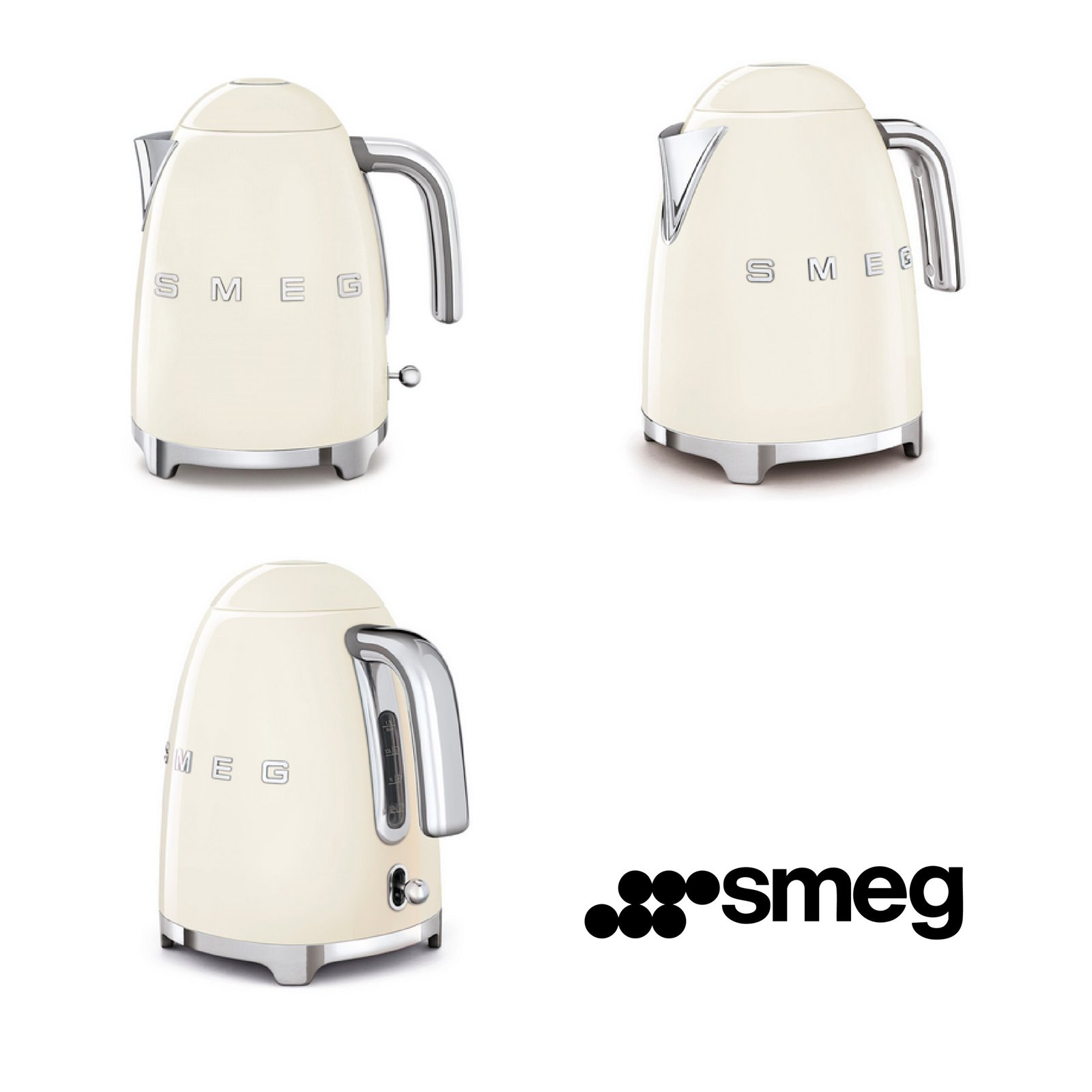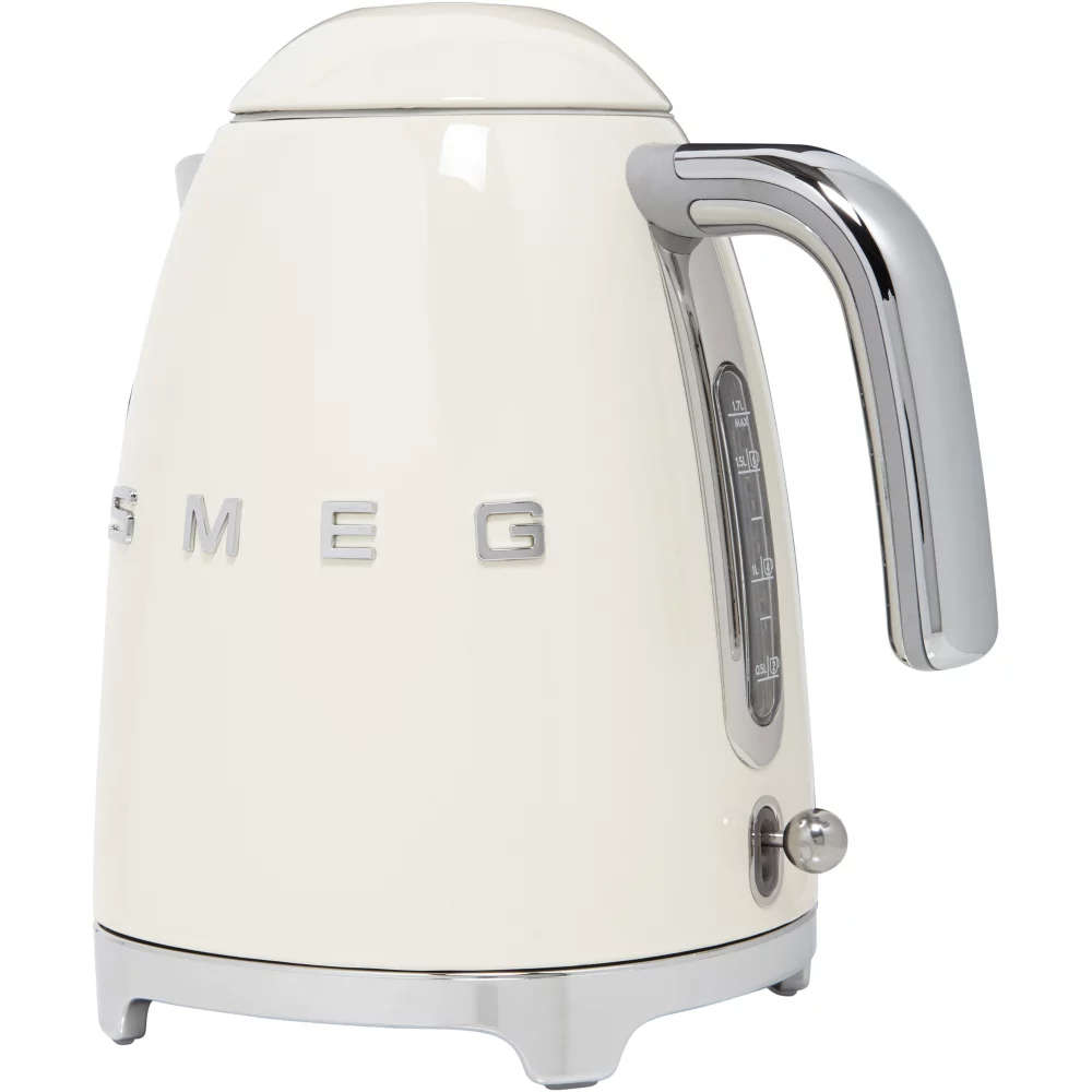 Smeg, Bouilloire Électrique KLF03CREU 1,7 L, Filtre Anticalcaire Lavable, Arrêt Automatique de Sécurité, Indicateur Niveau d’Eau, Base Antidérapante,Range Cordon Intégré, Puissance 2400W, Crème