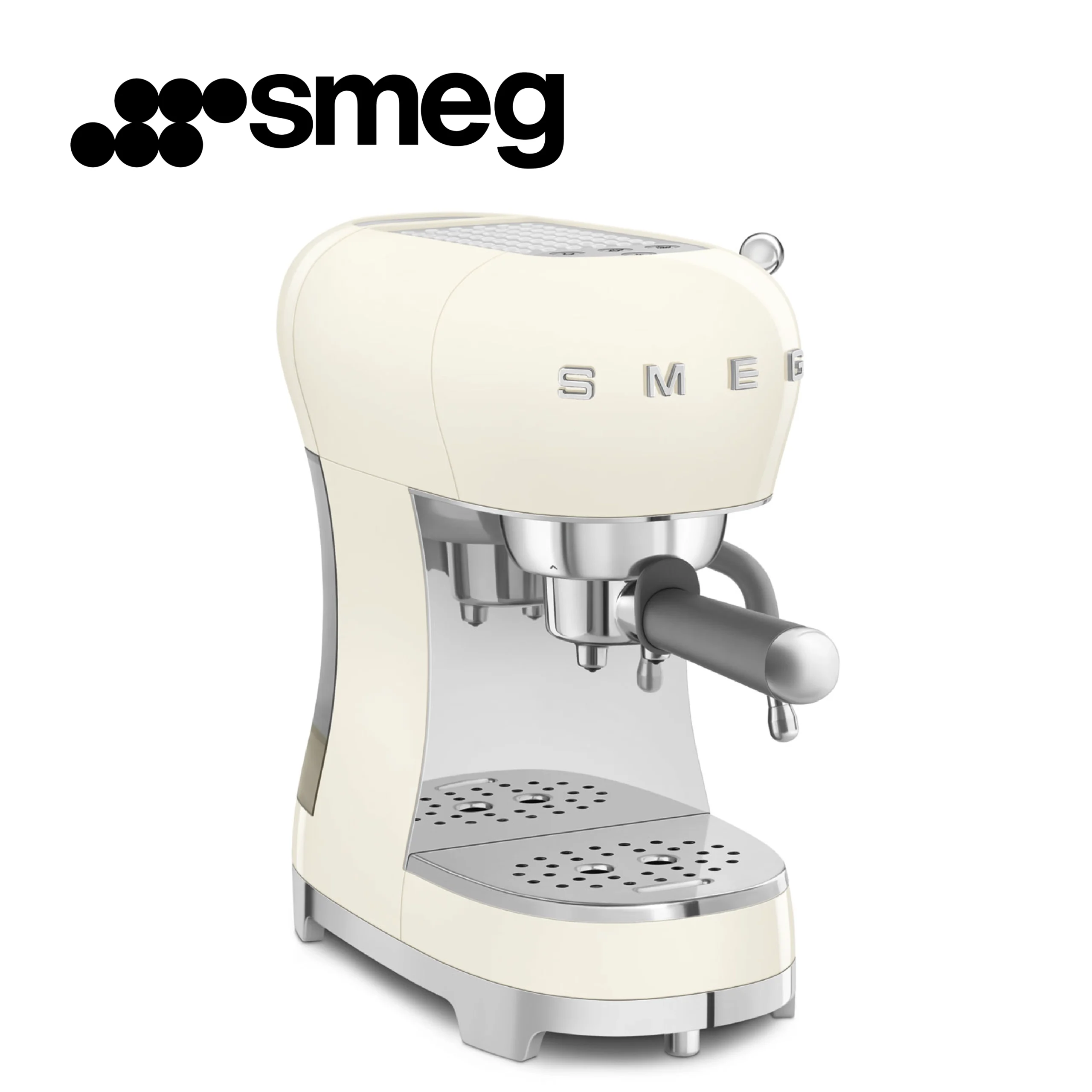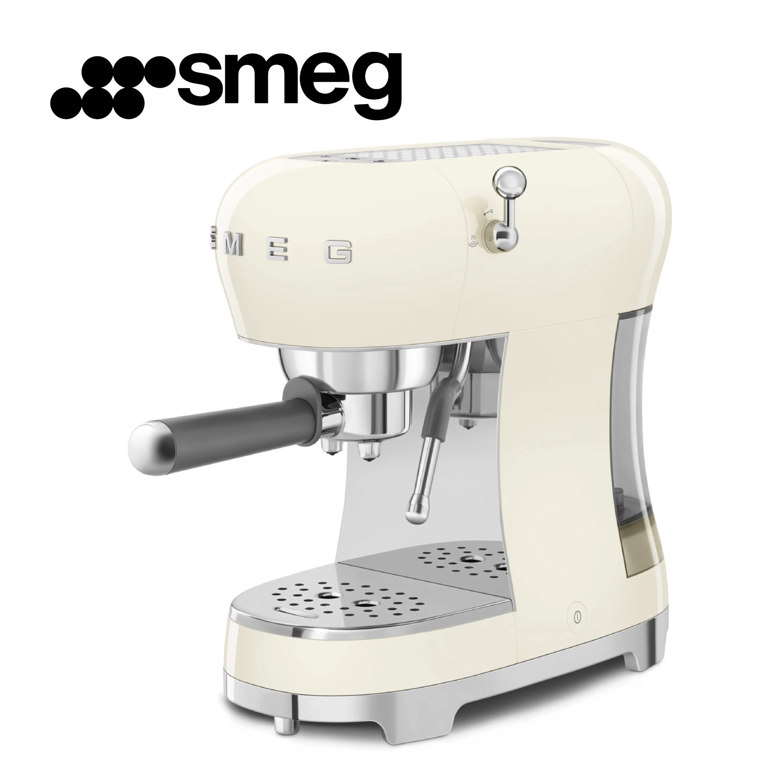 Smeg, Machine à Café Expresso Manuelle ECF02CREU, Système Thermoblock et Buse Vapeur, 4 Fonctions Expresso, Plateau Amovible, Porte Filtre, Réservoir d’Eau 1 L, Dimensions Compactes, 1350W, Crème