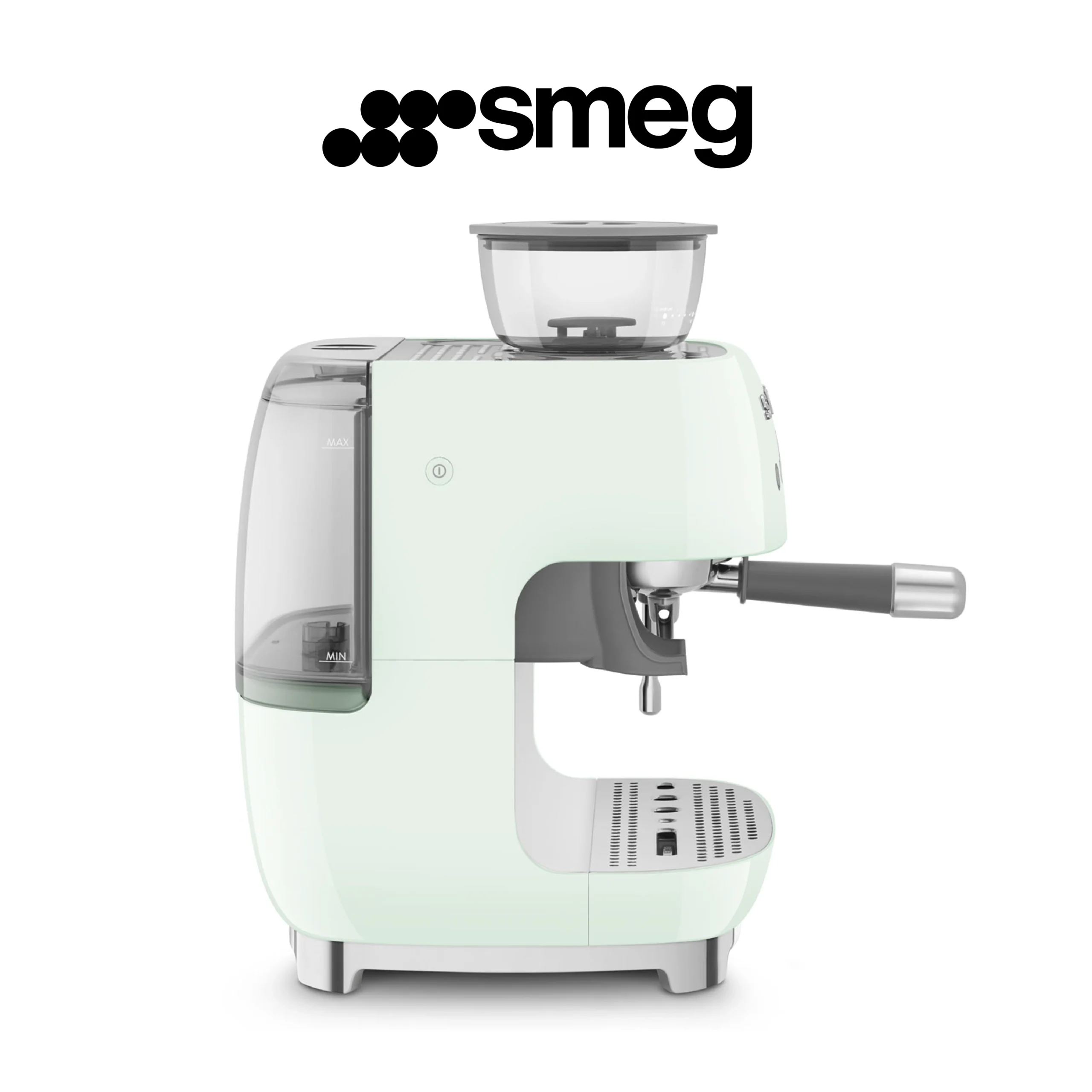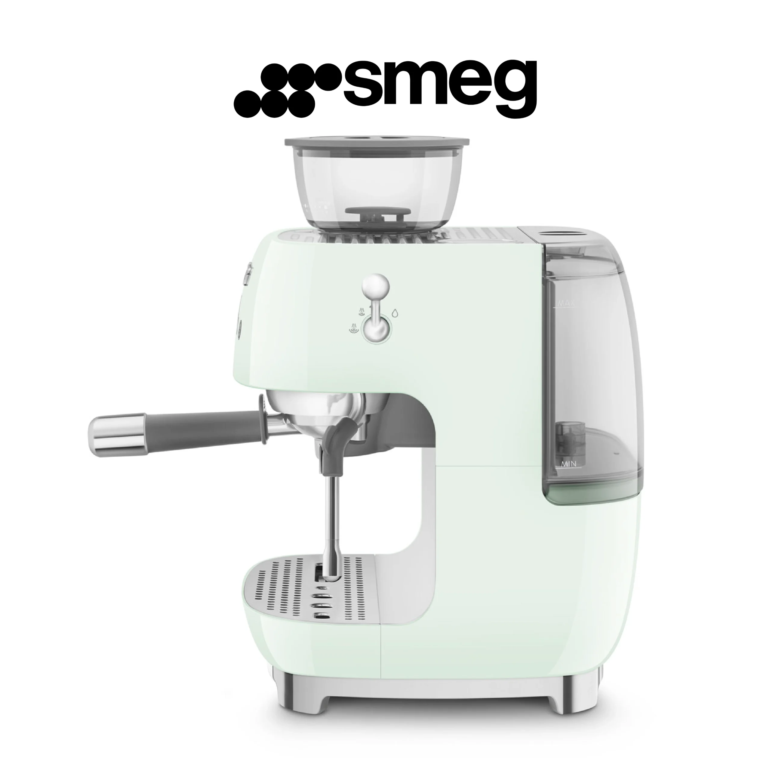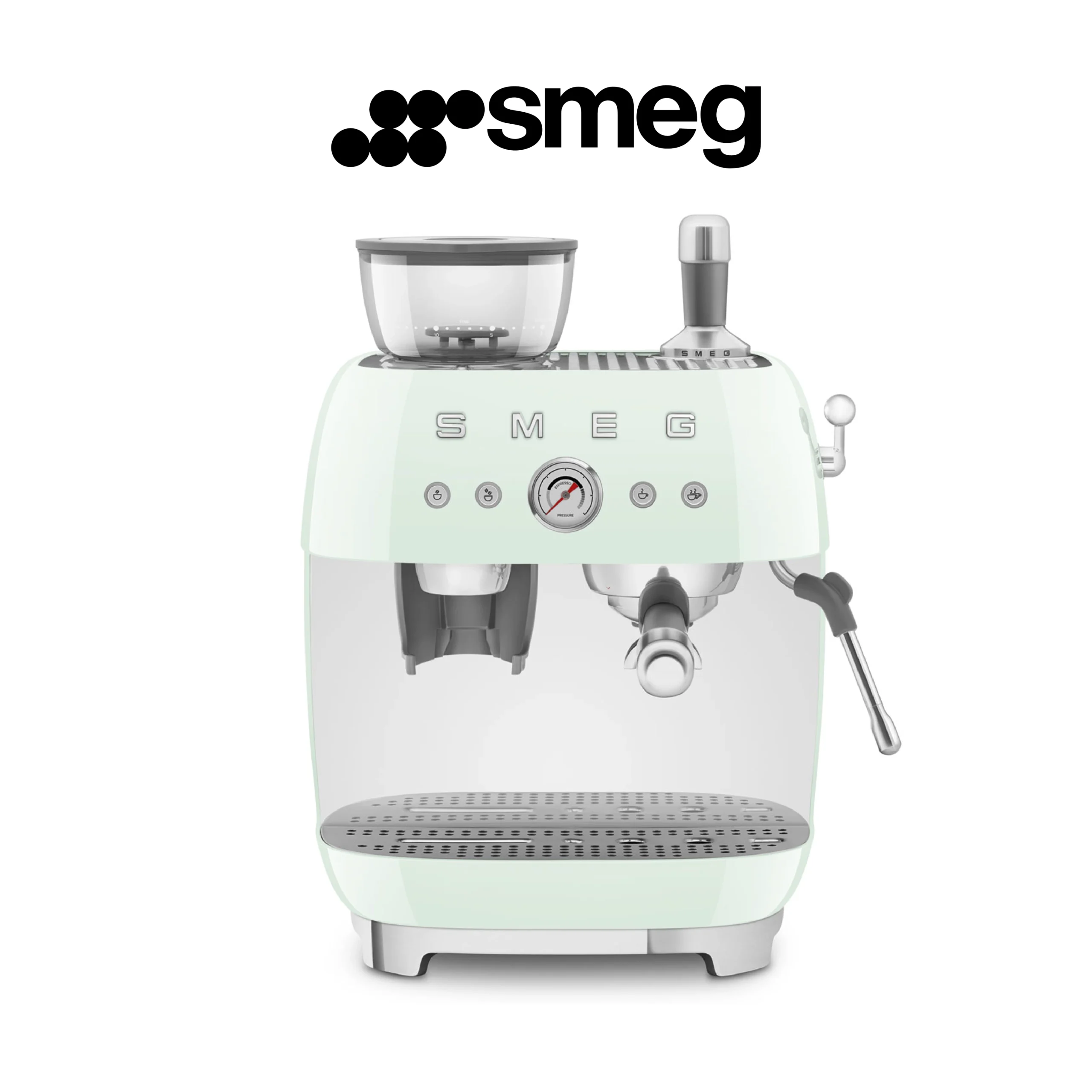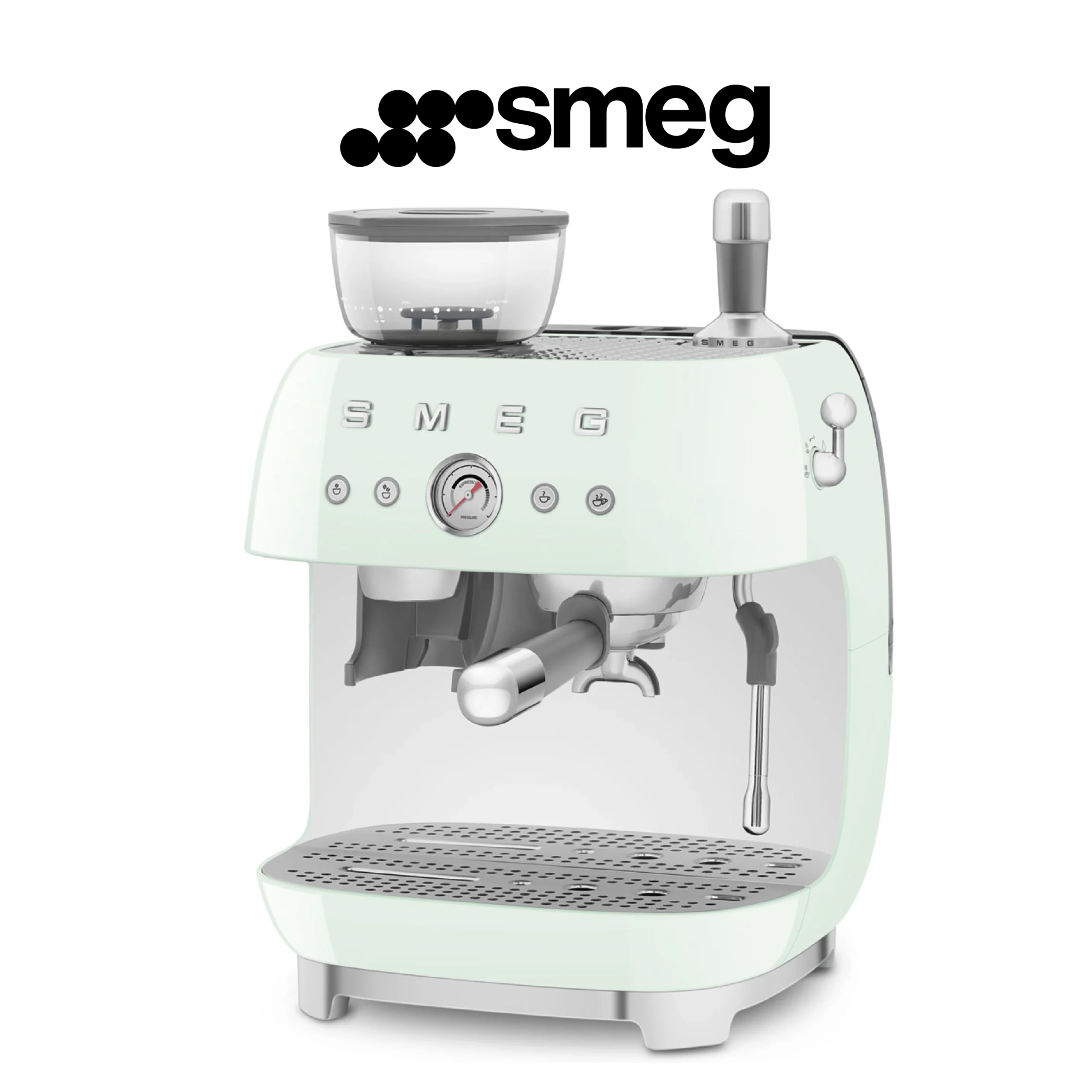 Smeg, Machine à Café Expresso Manuelle EGF03PGEU, avec Broyeur à Grain Intégré, Thermoblock, 4 Niveaux de Température, Buse Vapeur et Manomètre, Réservoir 1 L, Dimensions Compactes, 1350W, Vert d’eau