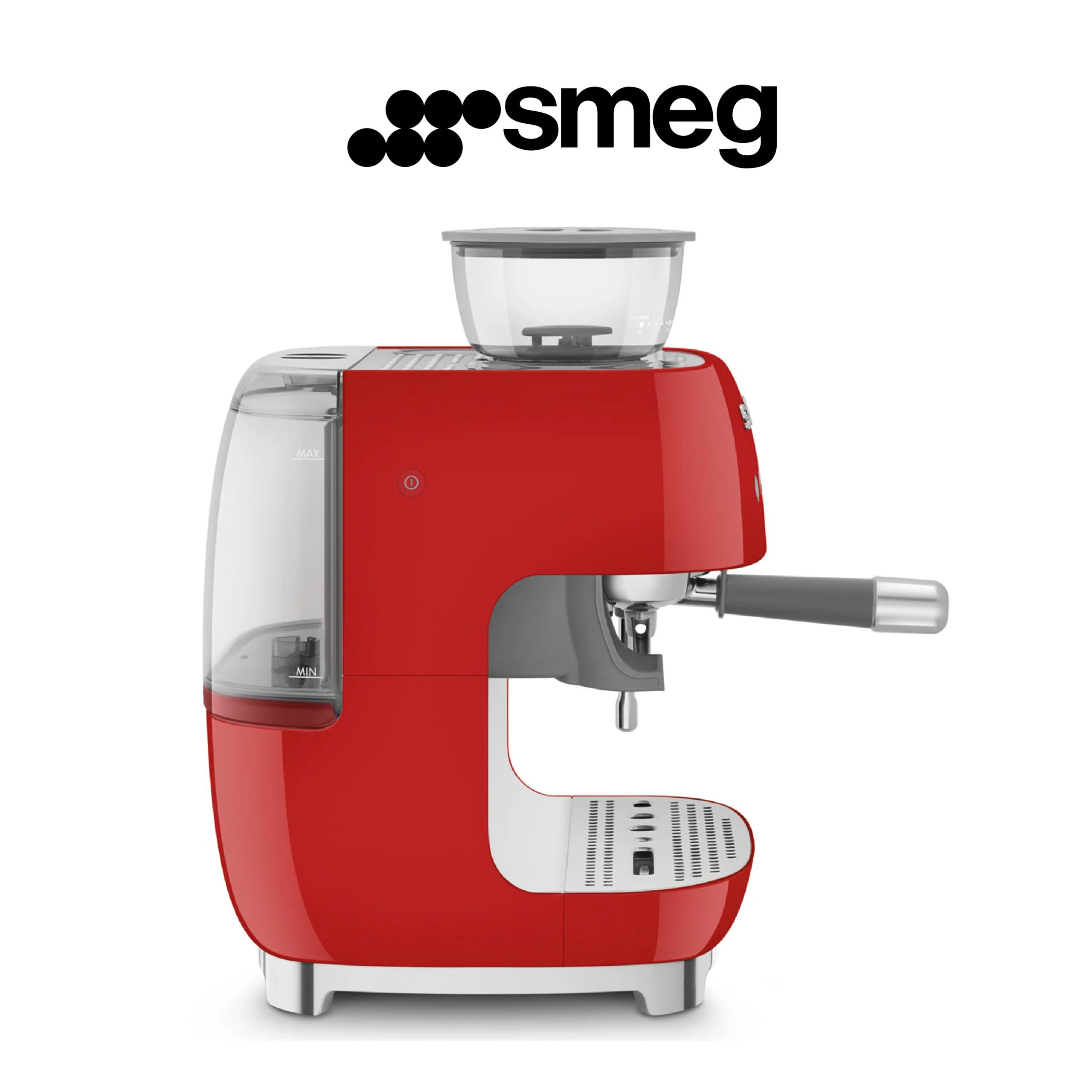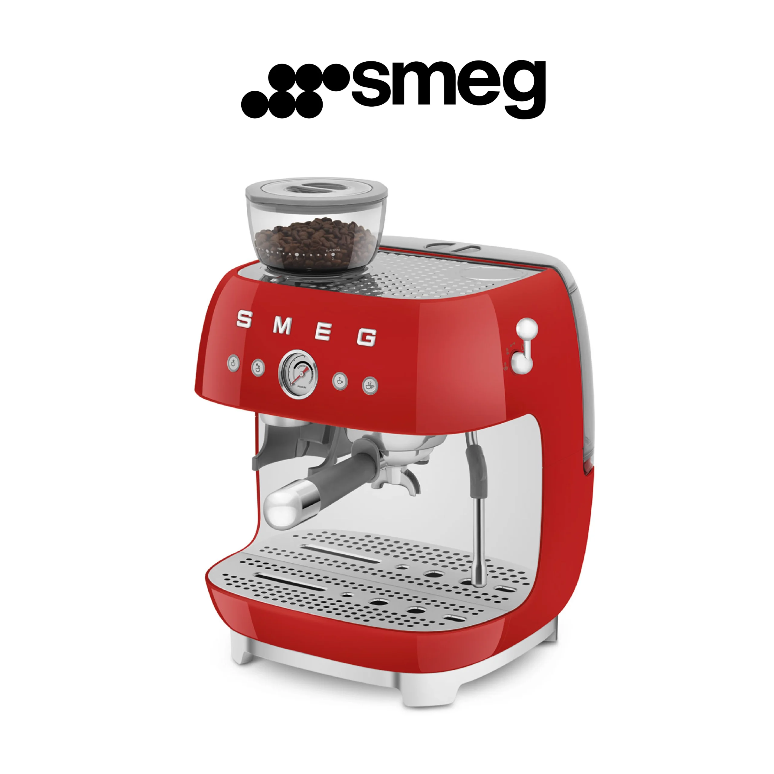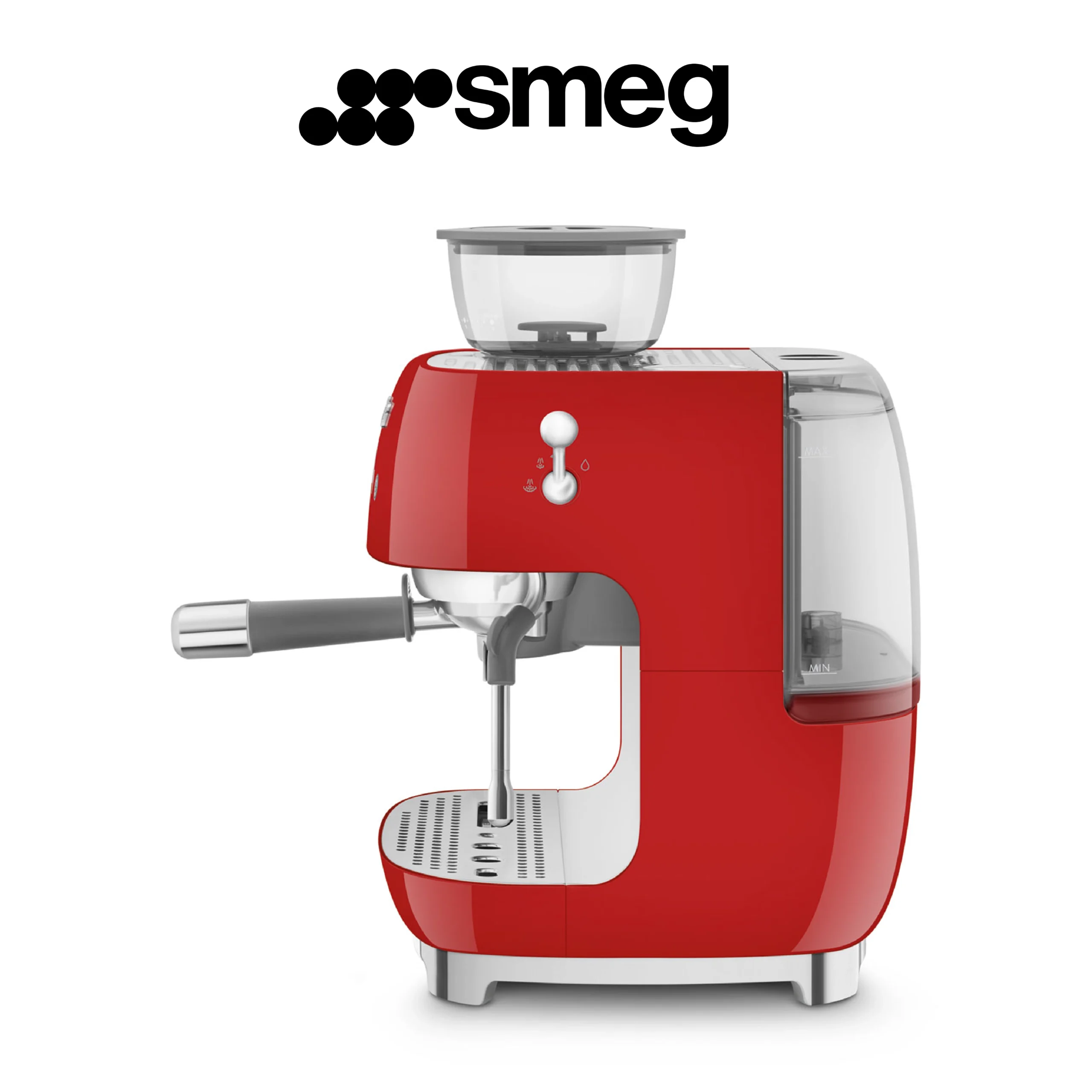 Smeg, Machine à Café Expresso Manuelle EGF03RDEU, avec Broyeur à Grain Intégré, Thermoblock, 4 Niveaux de Température, Buse Vapeur et Manomètre, Réservoir 1 L, Dimensions Compactes, 1350W, Rouge