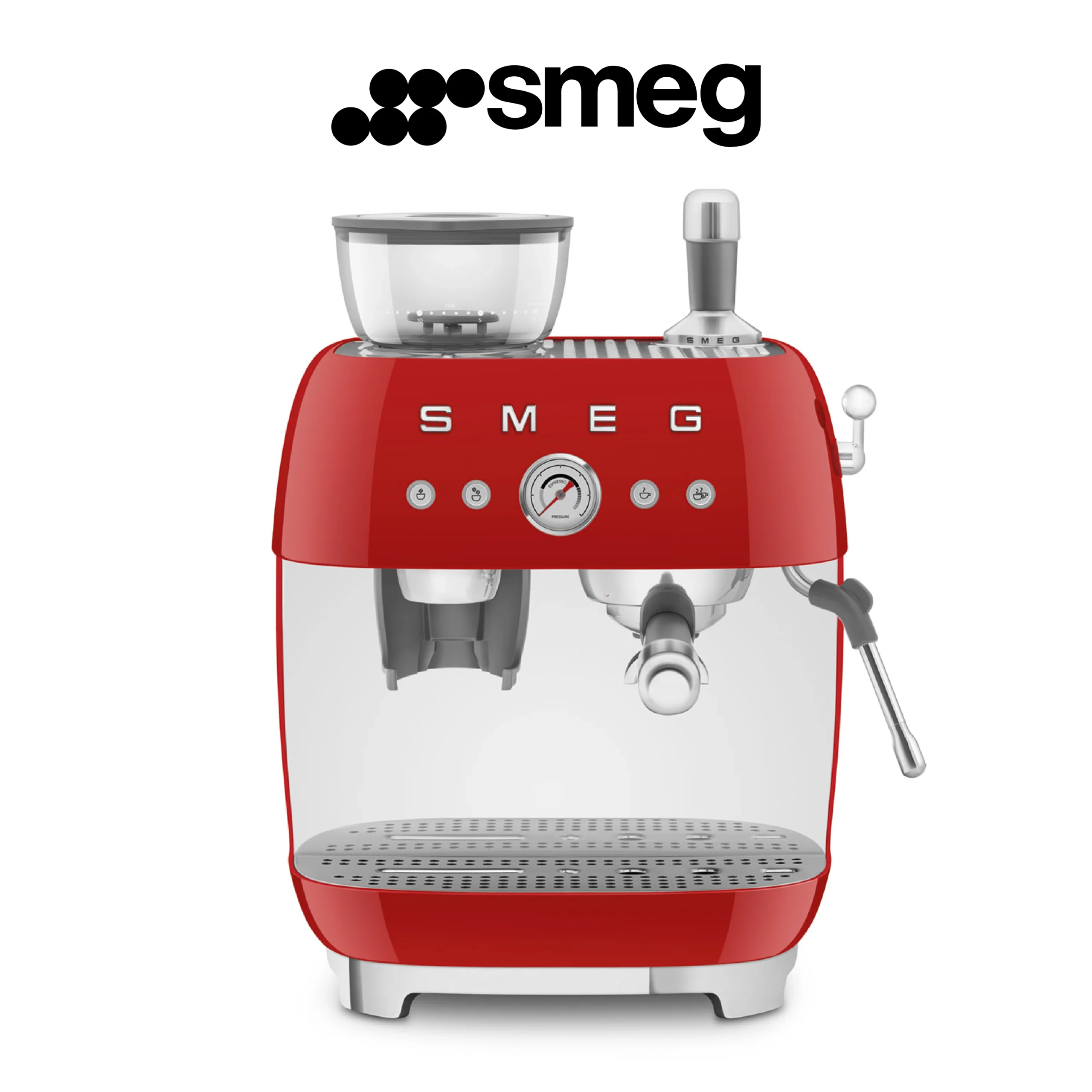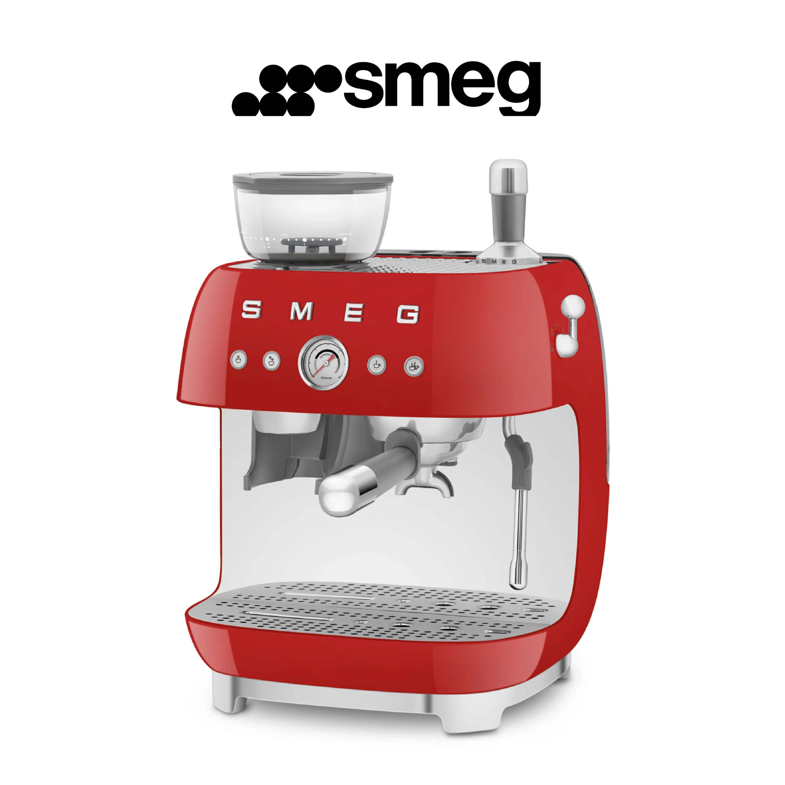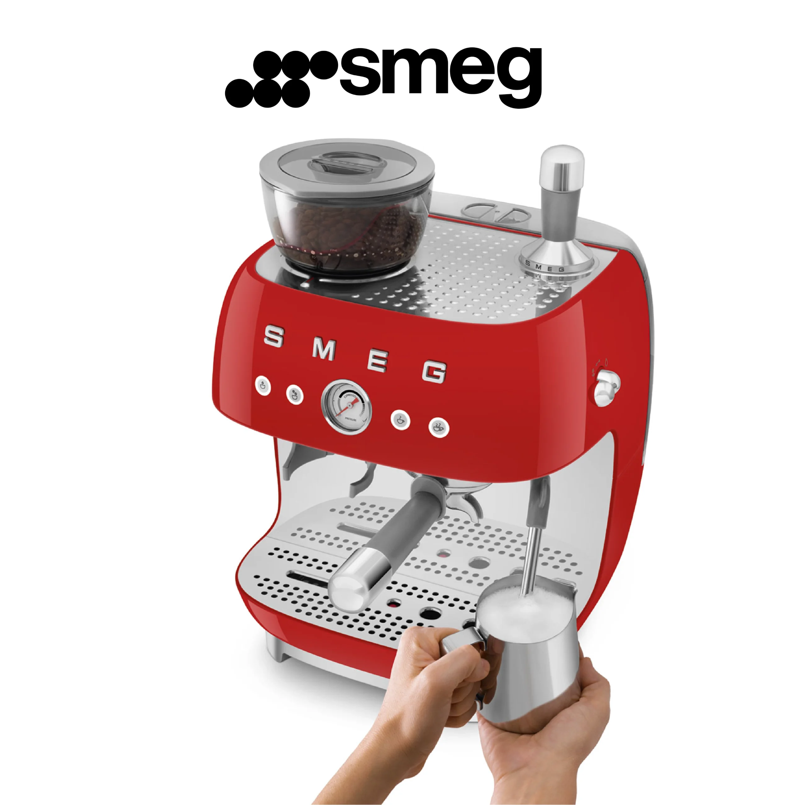 Smeg, Machine à Café Expresso Manuelle EGF03RDEU, avec Broyeur à Grain Intégré, Thermoblock, 4 Niveaux de Température, Buse Vapeur et Manomètre, Réservoir 1 L, Dimensions Compactes, 1350W, Rouge
