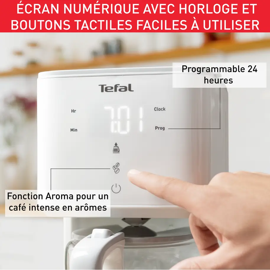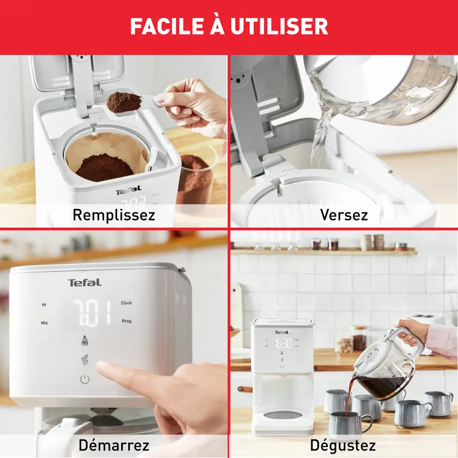 TEFAL Cafetière filtre SENSE Programmable, , écran numérique, 10-15 tasses, 1,25L, Auto-off 30 minutes CM693110
