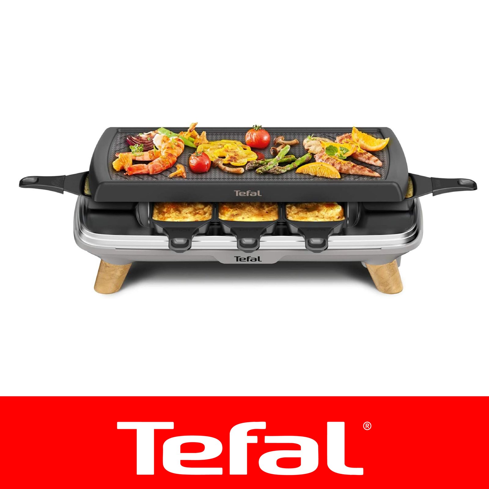 TEFAL Gourmet, Appareil à raclette gril et plancha, Antiadhésif, 8 personnes