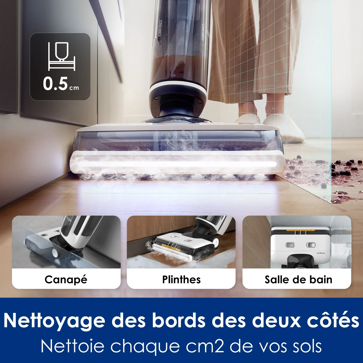 AspirateurTineco iFloor 3 Breeze Plus Aspirateur Laveur Sec Humide, Nettoyeur de Sol sans Fil et Serpillière Légère pour Nettoyer Les Sols Durs en Un Passage